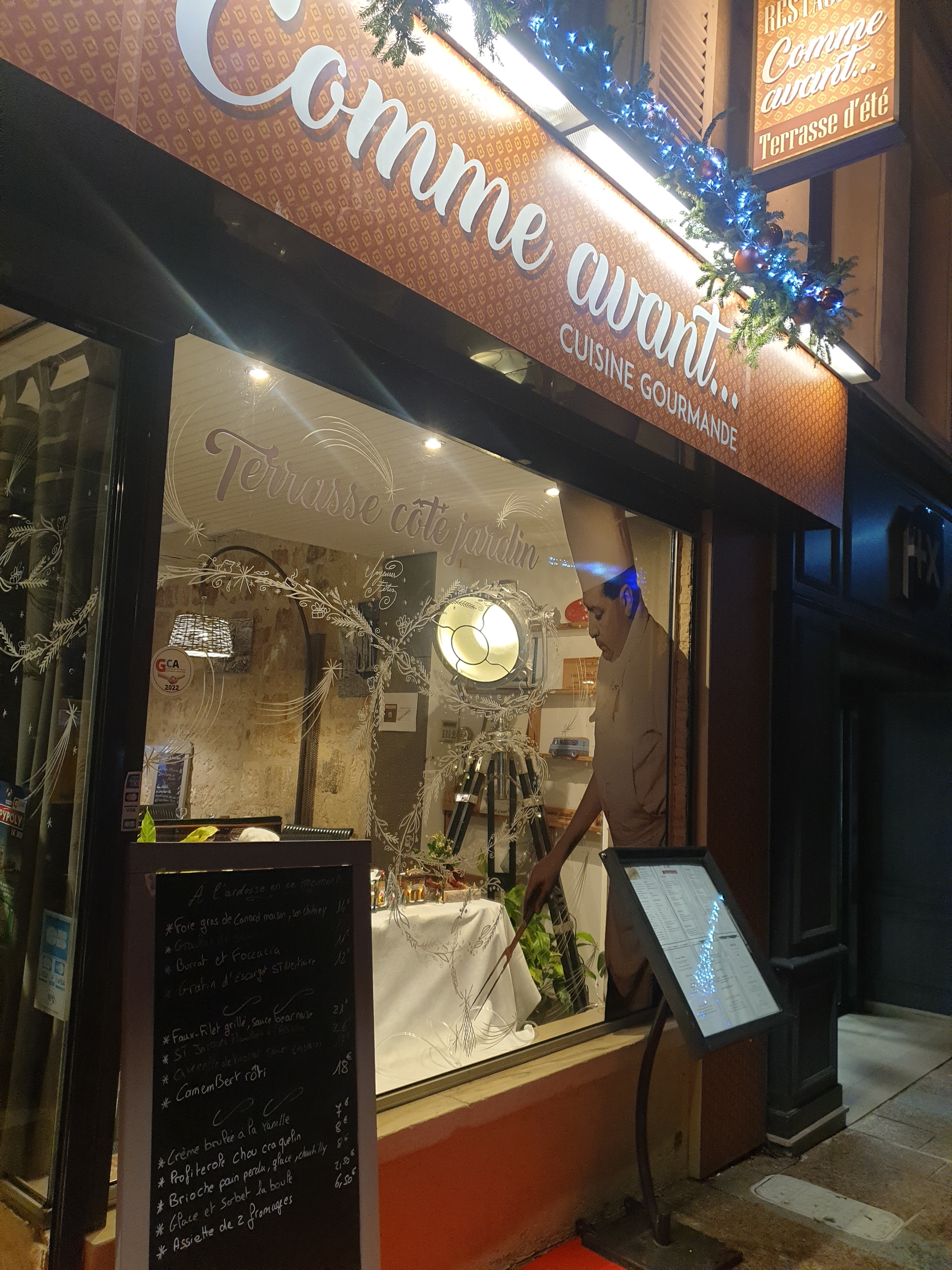 Bonjour Monsieur Lecerf, Je suis Arnaud du restaurant Comme Avant. J'ai bien compris que vous n'aviez pas apprécié votre visite chez moi. J'en suis navré. J'espère tout de même avoir l'occasion de vous montrer que notre table mérite votre attention. Notre ardoise évolue chaque semaine. Celle de la semaine dernière n'a pas trouvé grâce à vos yeux, je le conçois fort bien (affaire de goûts) Pour revenir sur votre allusion dans votre commentaire Google au restaurant voisin "grin de sel". J'ai ouvert et baptisé ainsi "La Fleur de Sel" en 2006. Cet établissement a été mien jusqu'en 2012. Alors il est possible que vous sentiez une "inspiration" dans le style de cuisine. J'espère très sincèrement vous revoir, et discuter Cuisine avec vous. Plutôt qu'au travers de l'internet😊 Il en va de soi que je saurai faire le geste adéquat lors de votre Visite. Au plaisir de vous recevoir, Arnaud De Noni Restaurant COMME AVANT