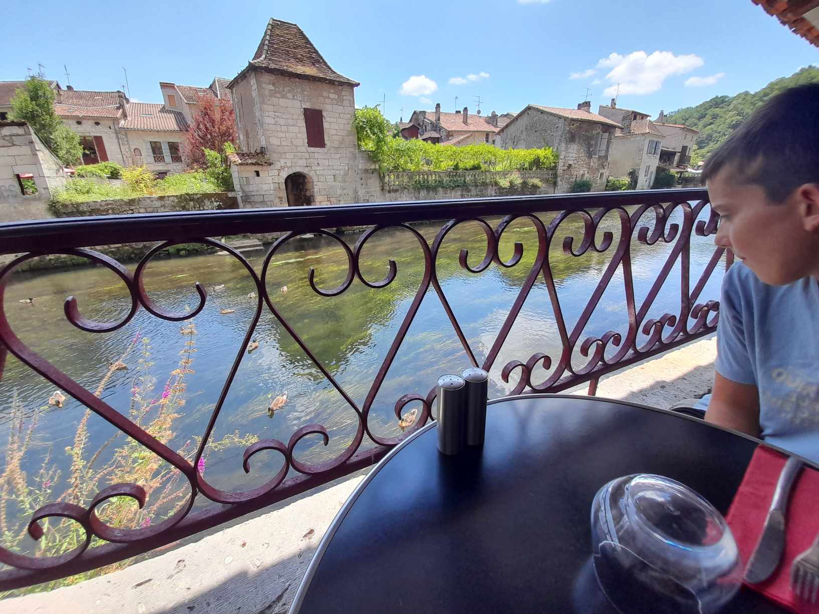 Posté le 23/08/2019 à 08:59"Arrivée 12h15 (avec réservation), départ 14h15. 45 minutes d'attente pour les repas enfants ( 8€ pour un jambon purée, arrivée froide, décevant). Nous avons dû patienter encore 20 minutes pour avoir nos plats ( 3 salades et 2 viandes). Dommage que le service ait été si long, car les plats sont bons et vue sur la Dronne."