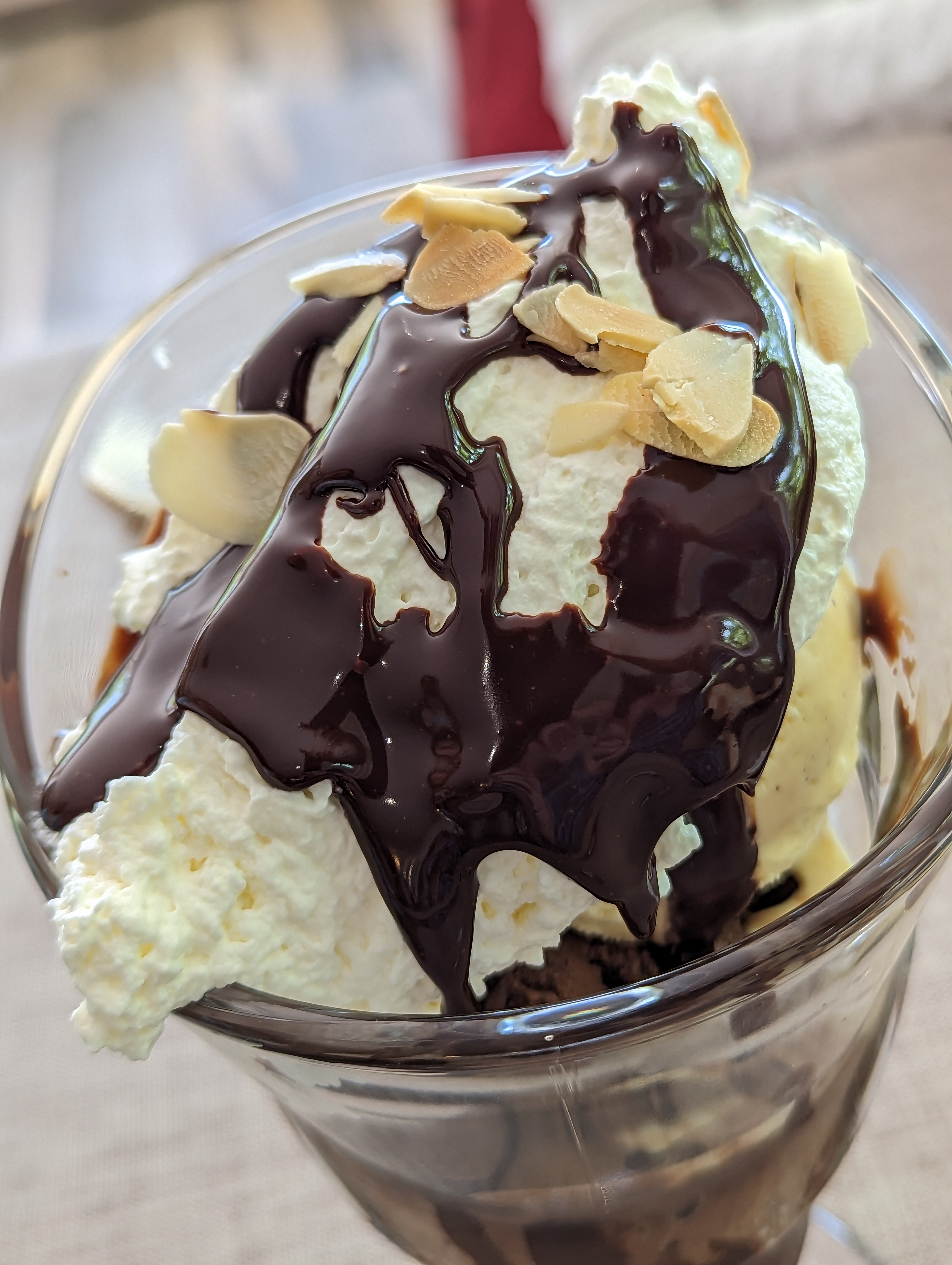 Cadre sympa comme le personnel. Trop d attente entre les plats . J ai pris une panna cota qui était liquide et même pas froide . Ma fille à pris une boule de glace qui a son arrivée était à moitié fondue. Décevant