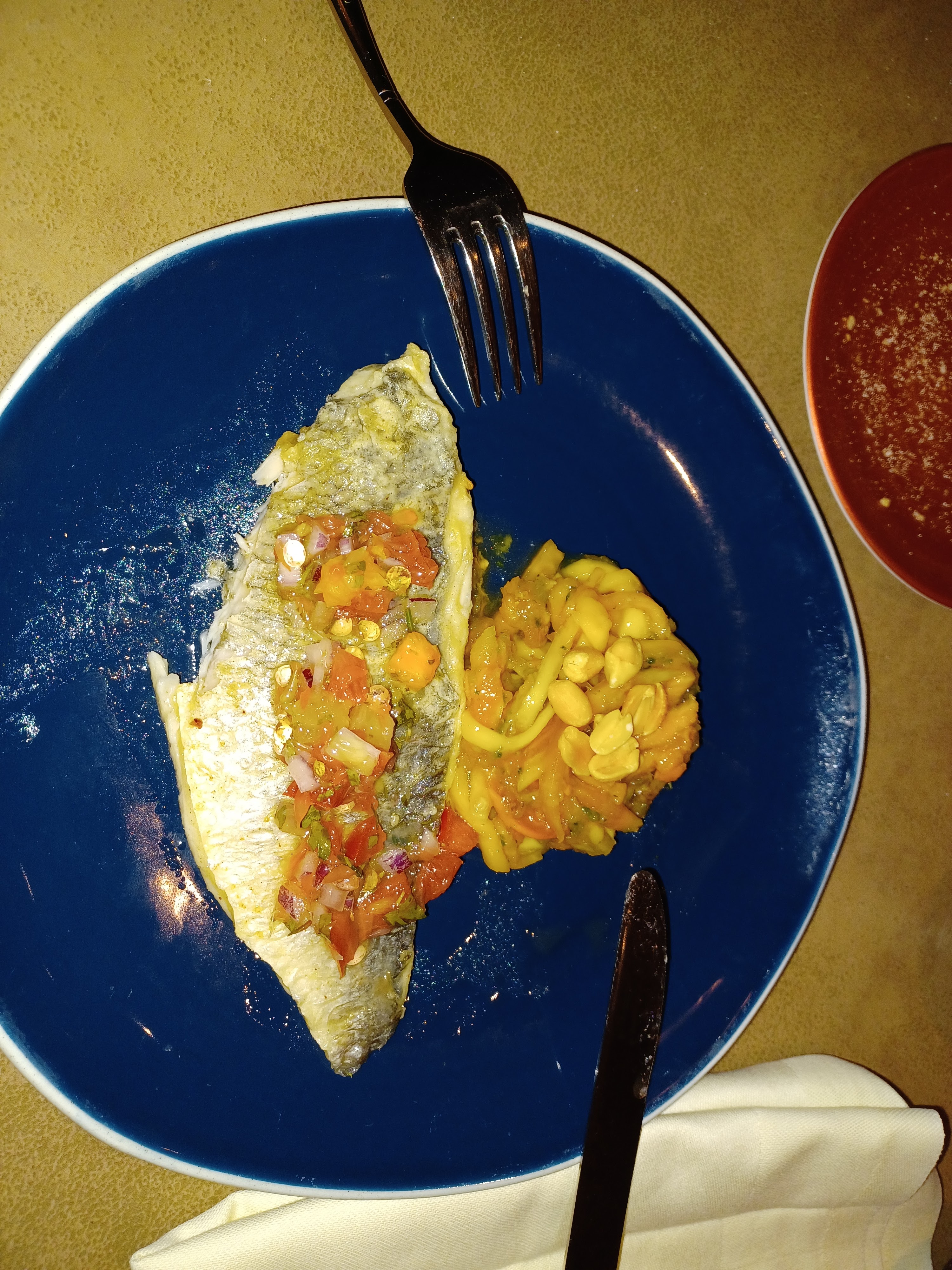 Catastrophiquement mauvais, préparé dans la journée et réchauffé au micro-ondes, accessoires froids, sauce collée dans l'assiette, poisson sec ———- etc... service peu professionnel et indifférent. Ce qui était génial est maintenant de second ordre
