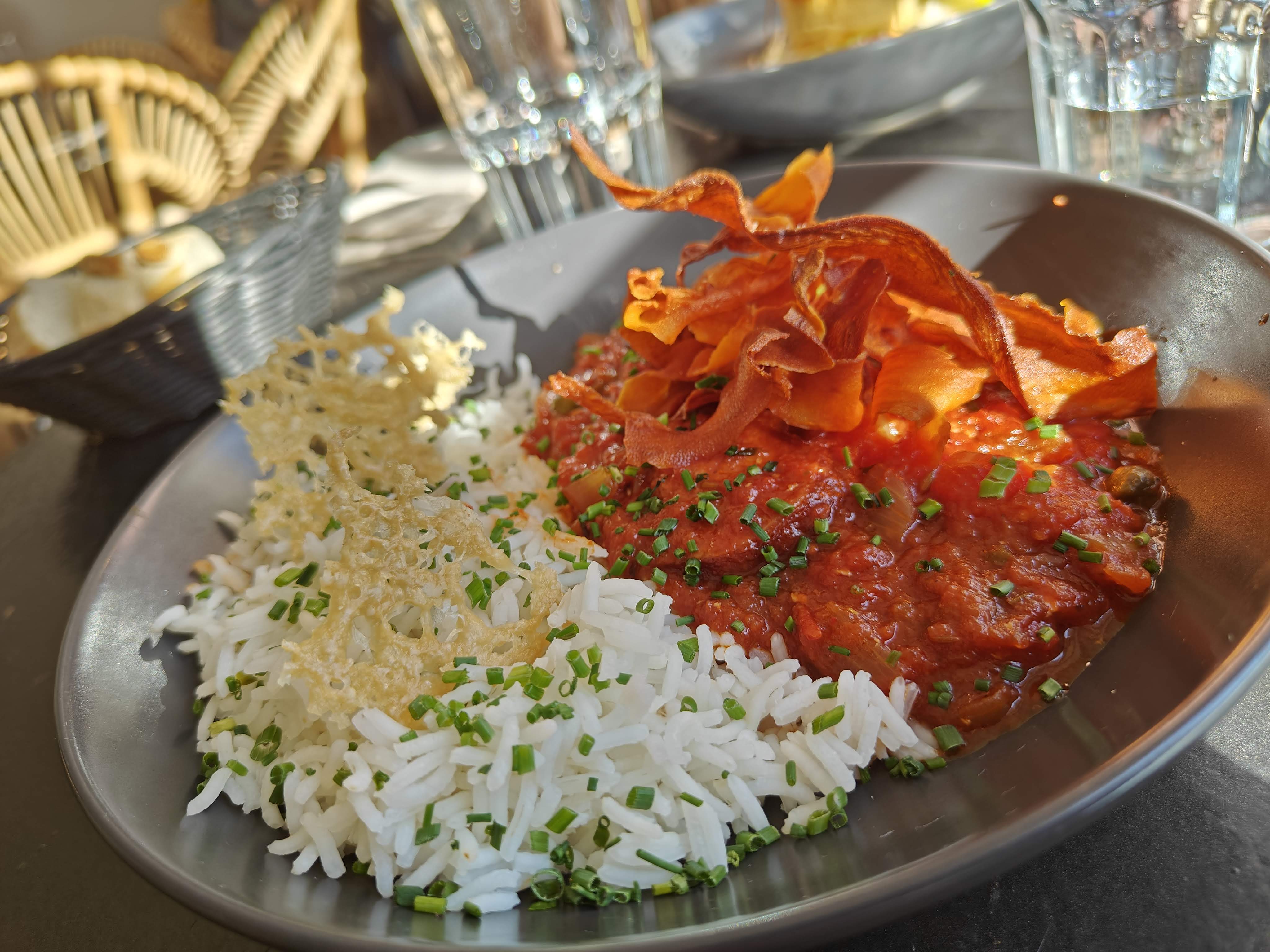 Posté le 30/10/2023 à 23:00"En option aujourd'hui, une gardiane de taureau :un bon goût mais un peu ferme (le restaurateur ne choisit pas le morceau à cuisiner) et sauce acidulée...une très bonne note pour le service.Réservez si vous ne voulez pas être dans le patio."