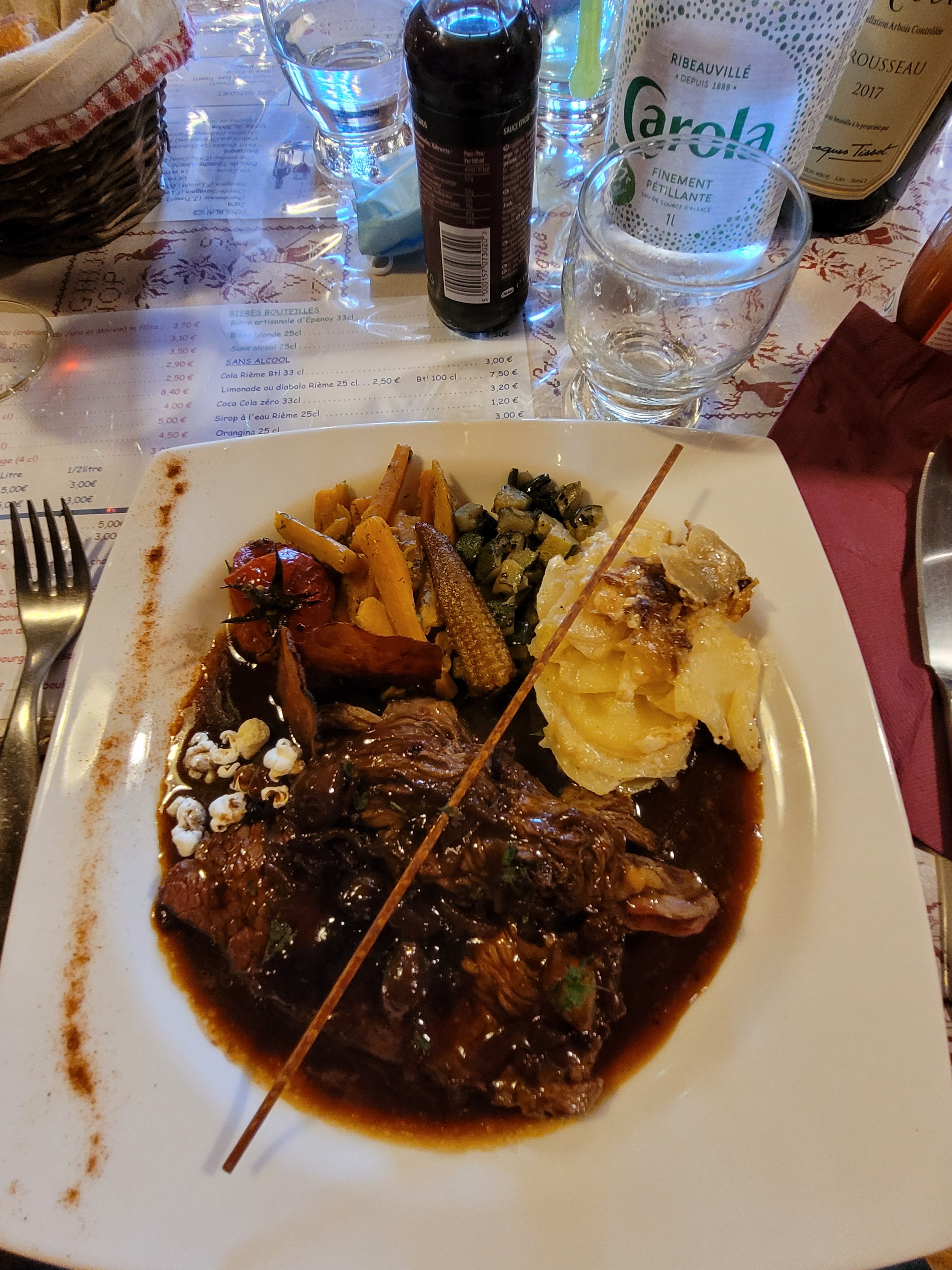 De passage, sans avoir réservé pour déjeuner, nous avons été très bien reçus par une patronne souriante. Les plats étaient succulents. Jambonneau confit au miel et thym pour moi, poisson pour mon mari, le tout accompagné de légumes. Ouf, ce n'était pas des frites !!! Très bonne crème brûlée en dessert.