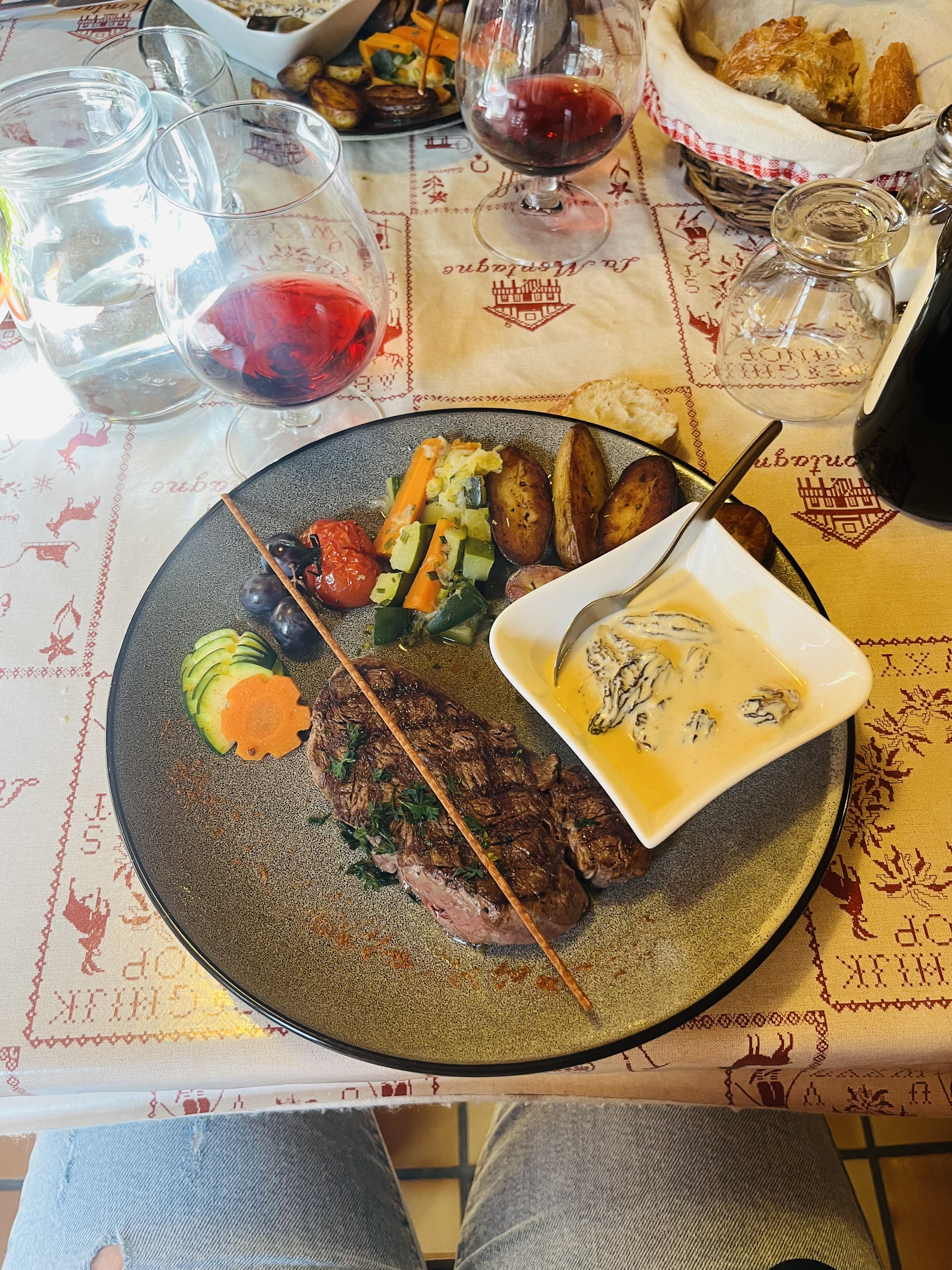 Accueil très sympathique, ambiance conviviale. Grillade succulente ainsi que sa garniture.Nous avons apprécié de pouvoir goûter le vin avant de le choisir.
