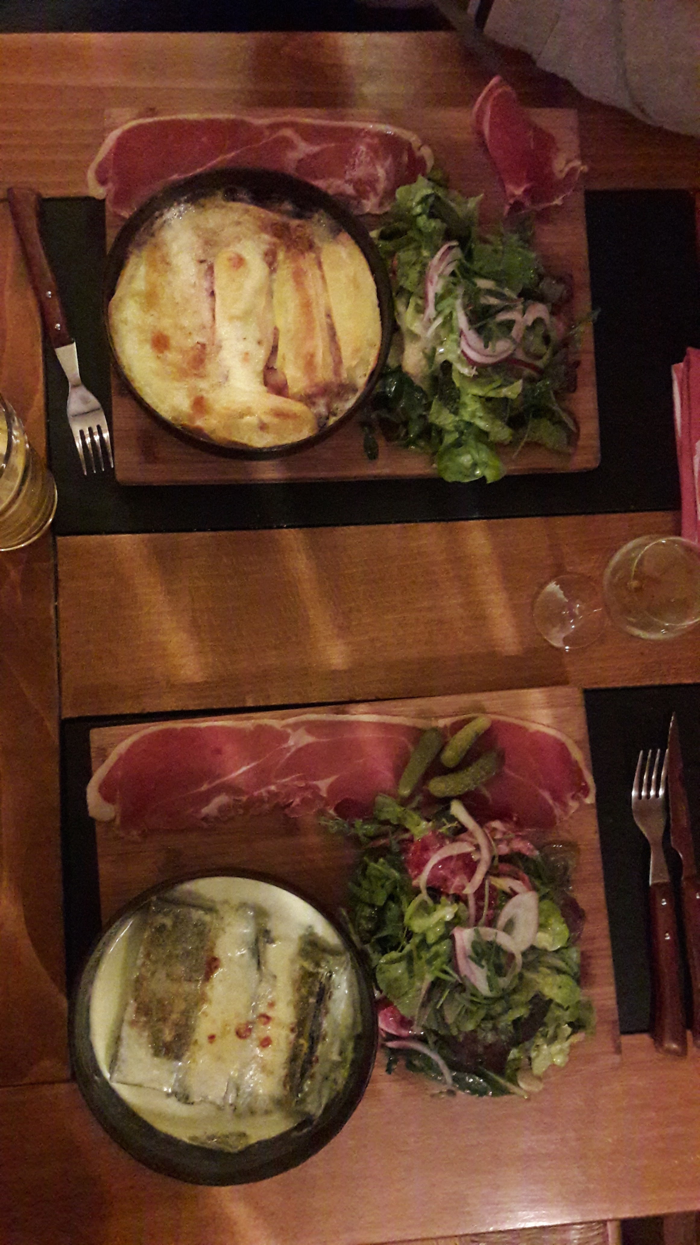 Posté le 04/11/2024 à 14:56"Tartiflette avec un goût de gratin dauphinois... Quid est elle préparé avec les restes de gratins proposés en accompagnement. Décevant."