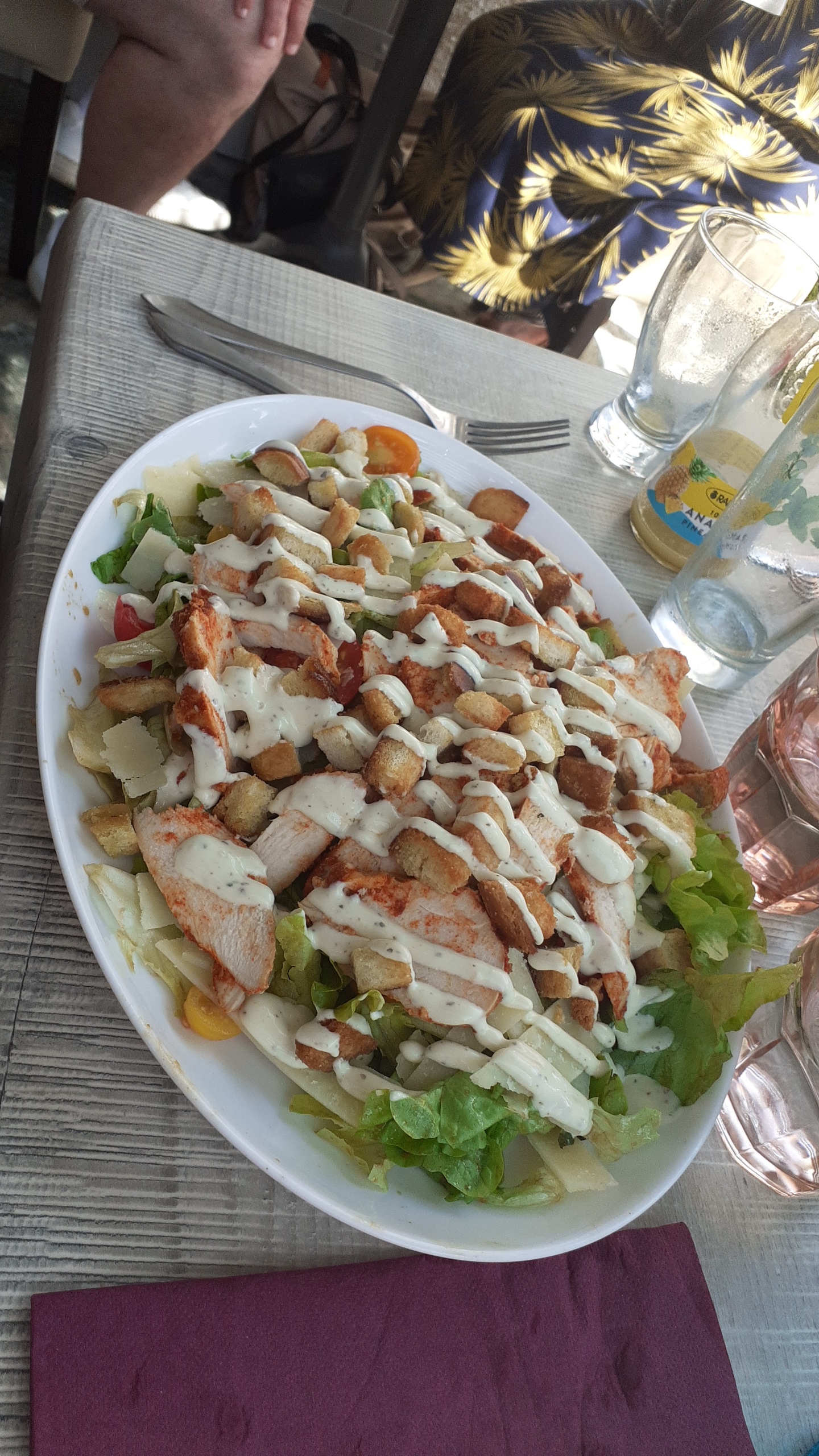 Réservation à 13h30 un jour en semaine et en pleine saison pour 2 sans problème. Le cadre est très cosy et, comble du luxe une petite brume vous rafraîchit toutes les 3 minutes...un pur bonheur. Les.plats sont copieux et le service incroyable : précis et avec le sourire s'il vous plaît ! A tester sans hésitation !