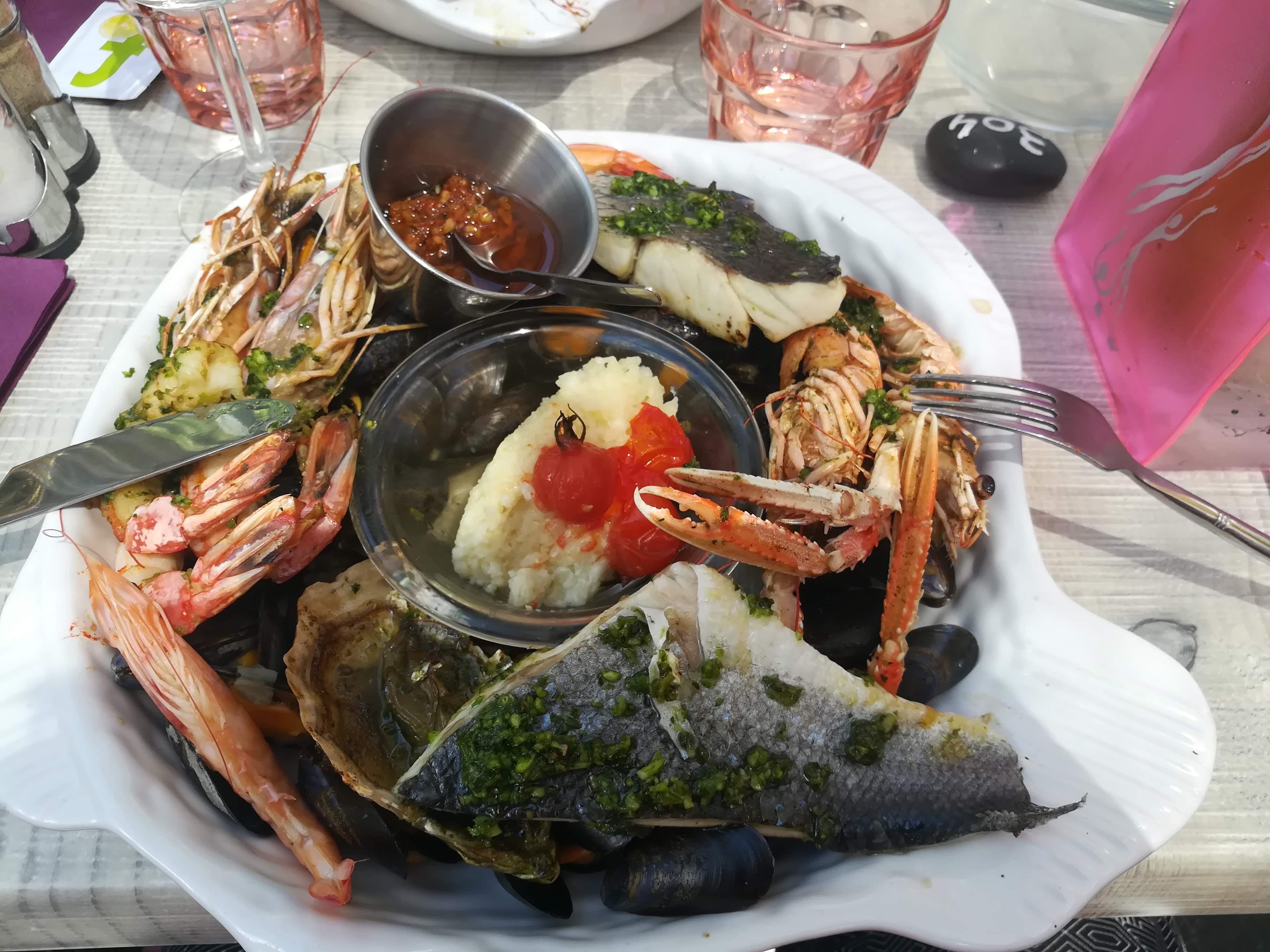 Très bons plats : parillada de la mer et trilogie d'agneau