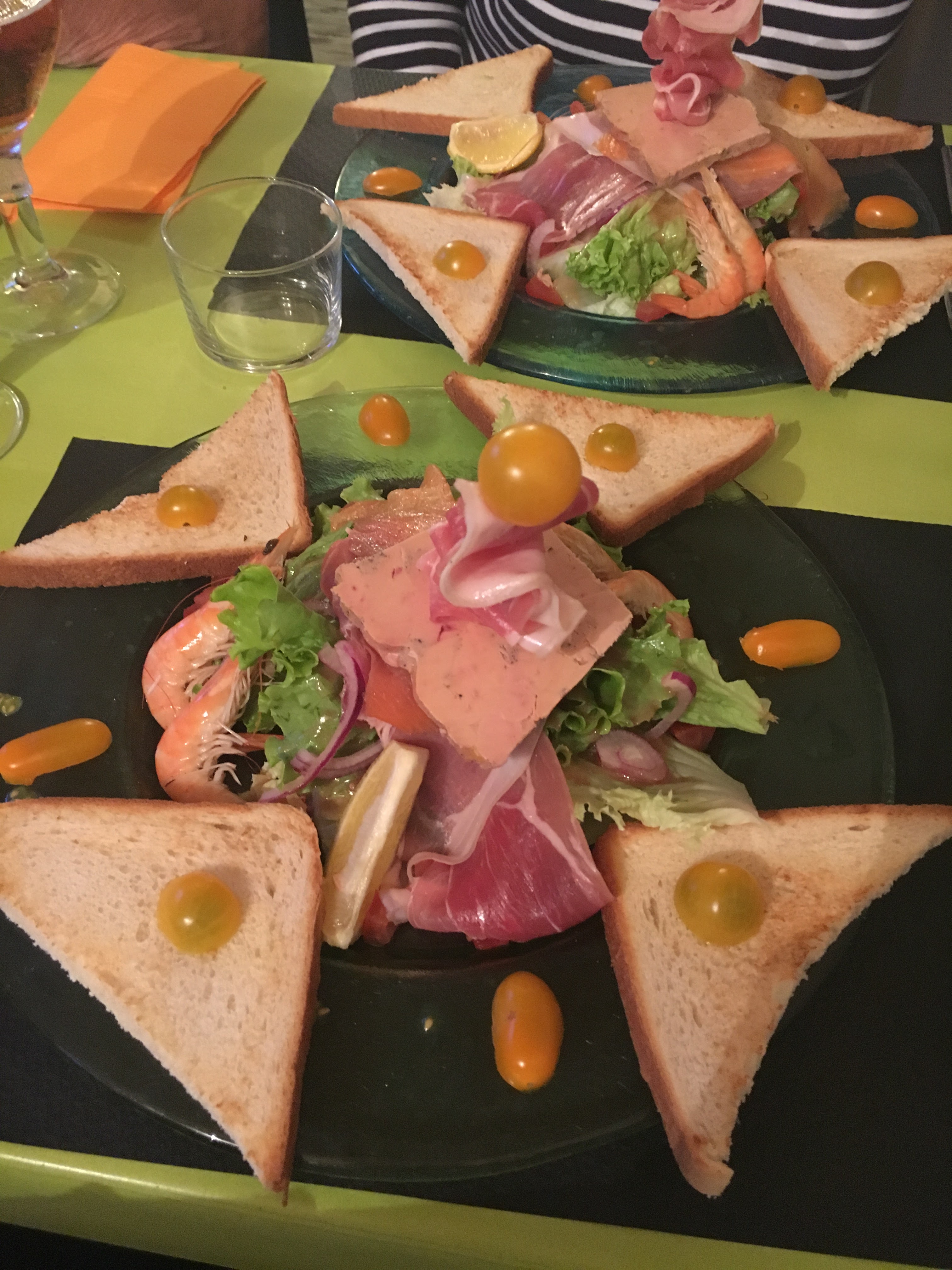 Délicieuse expérience culinaire de l'entrée (foie gras extra servi avec un granité de figues) au dessert (le café gourmand est juste parfait 😋), de nombreux choix de plats (linguines aux gambas flambées au Cognac). Un vrai régal, un service de qualité et super sympathique, une adresse à ne pas manquer si vous allez visiter le somptueux village de Talmont 😊💕