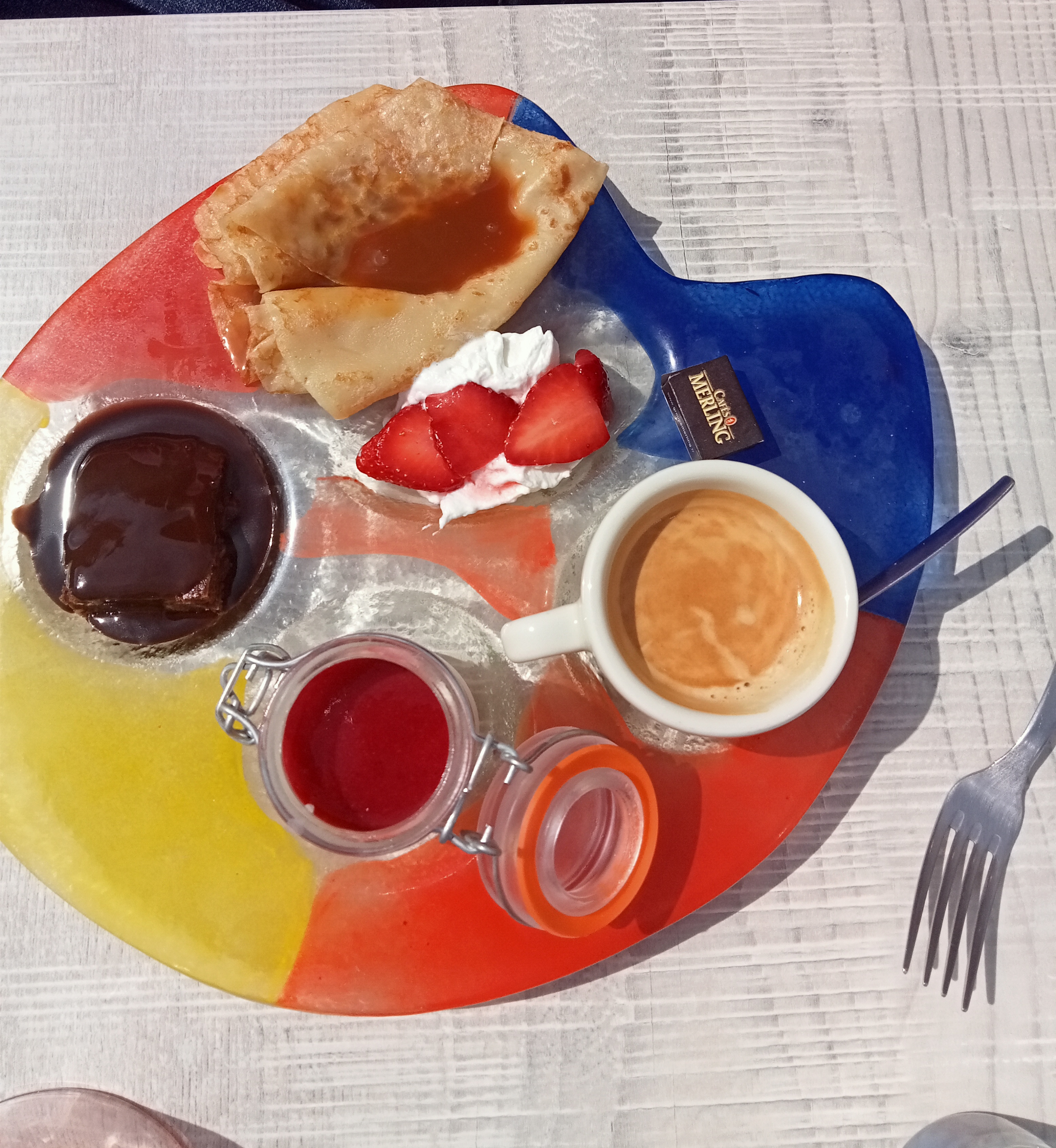 Restaurant très agréable, terrasse brumisée lors des grosses chaleur, personnel des plus souriants et avenants, tout est fait pour nous satisfaire ! Grosse affluence pour cet après midi, nous avons été servis rapidement, crêpes avec petit arrière goût de fleur d'oranger juste excellentes, merci pour ce moment de plaisir ☺️