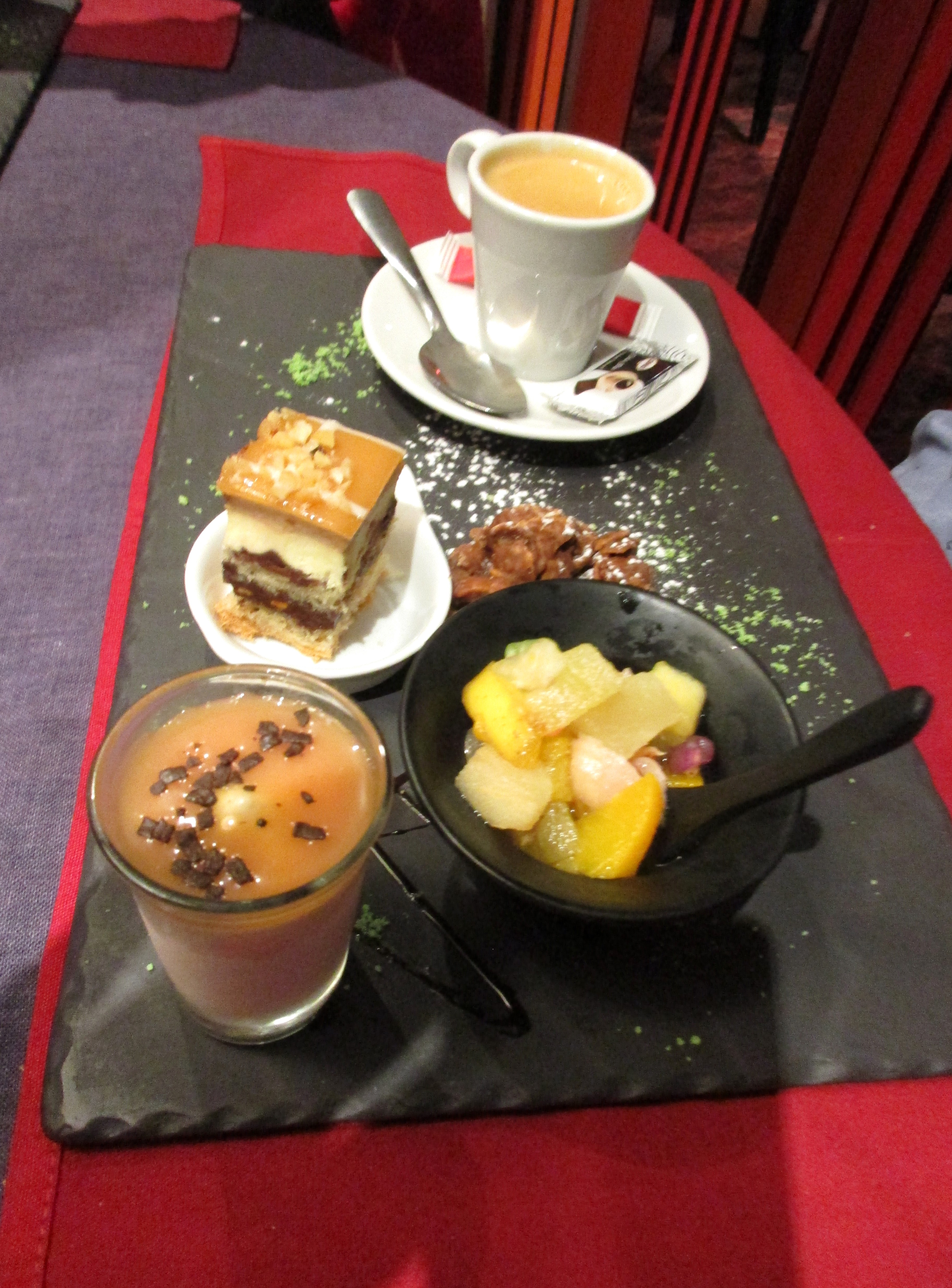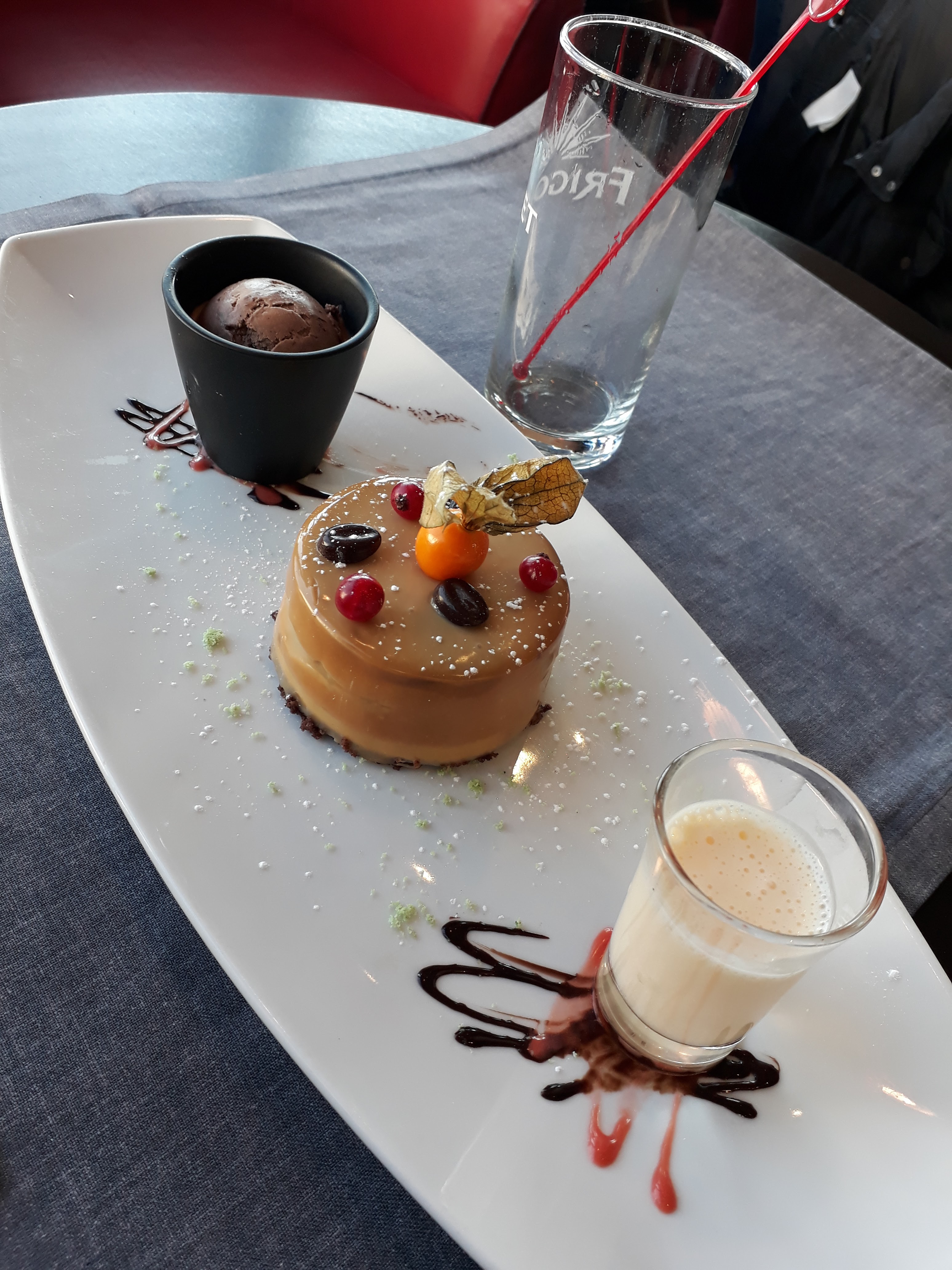 Service bon, bonne cuisson des viandes mais accompagnement décevant ! Dessert croquant Chocolat sans saveur, certainement pas maison !