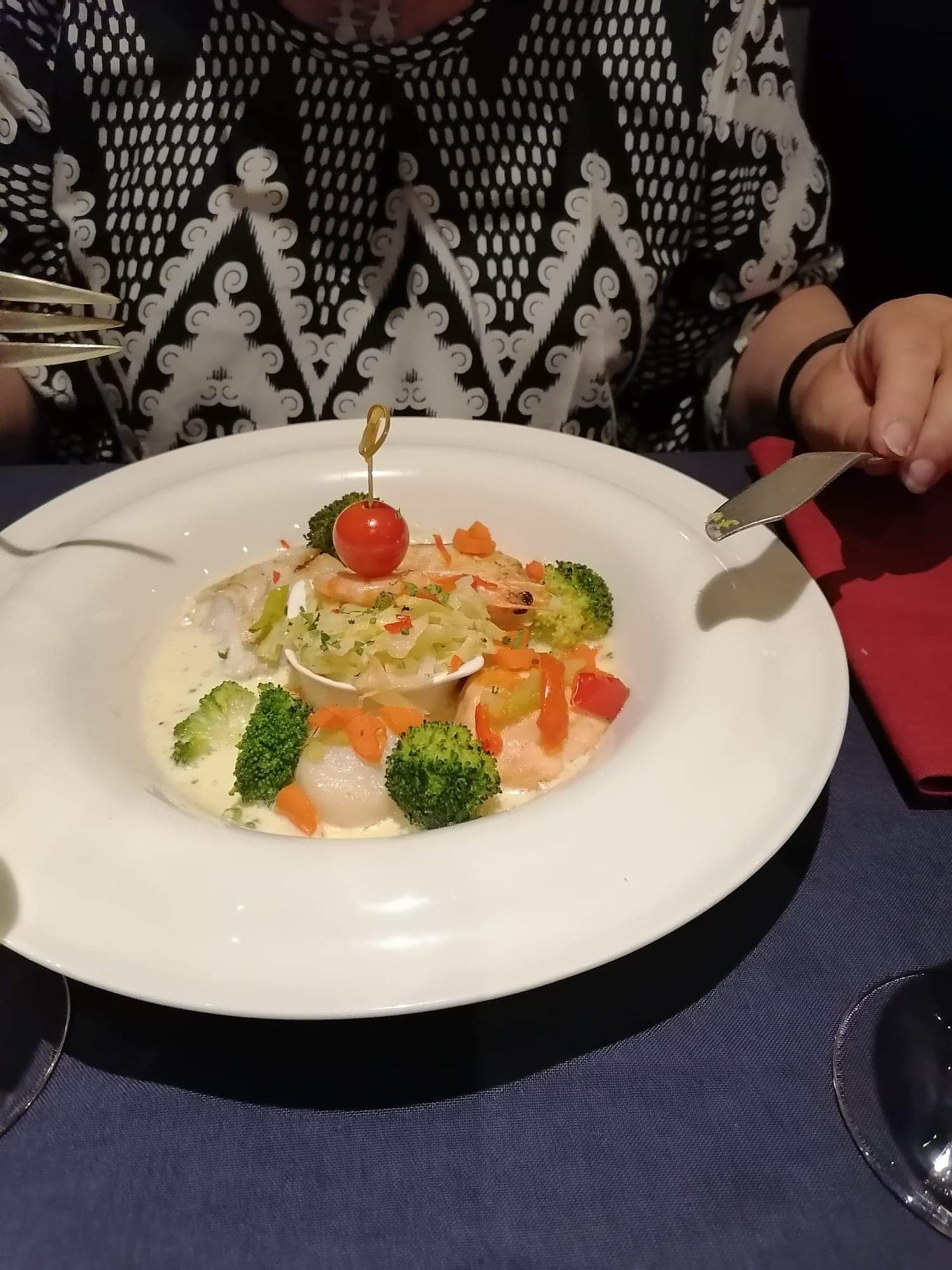 Beaucoup d'attente (il y avait beaucoup de monde) mais repas très bon, très joli restaurant et personel très gentil - J'ai adoré le coktail Royal blue-