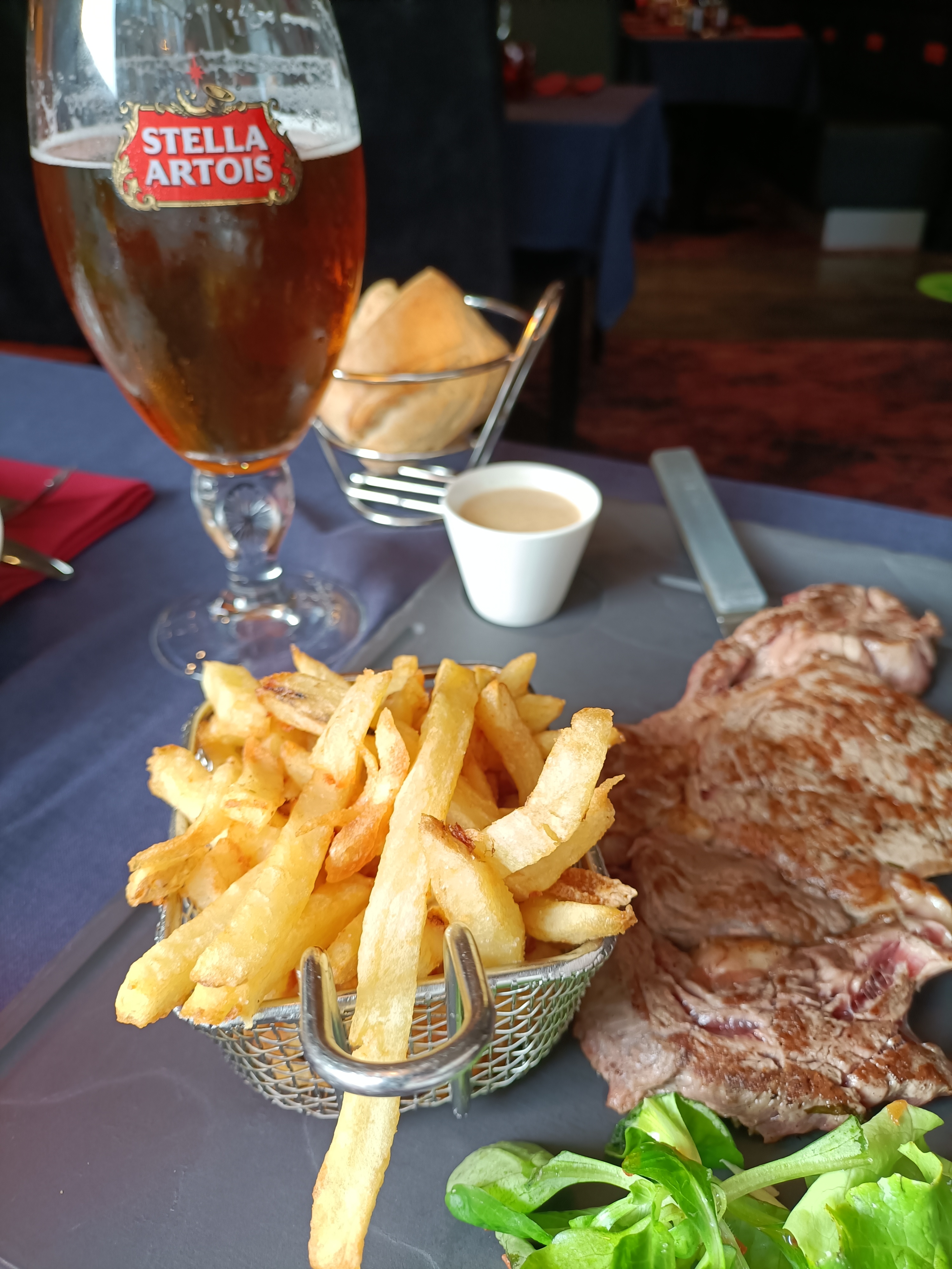 Malgré un service au top, et une très bonne entrecôte, je retire 2 étoiles pour les frites qui était surgelée ce que je trouve un peu décevant dans se genre d’enseigne avec un plat a presque 23€ …