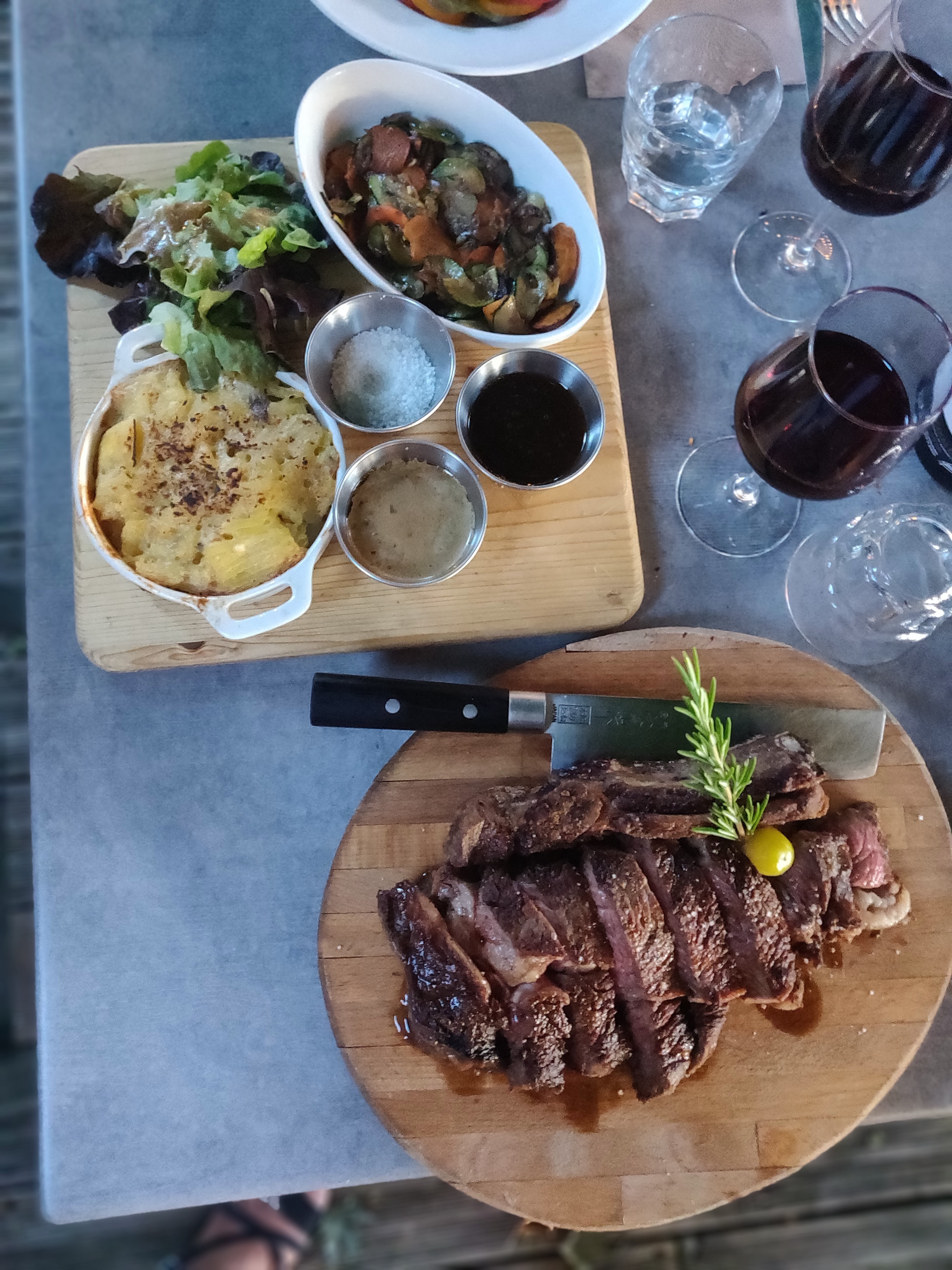 Un samedi soir, une grande table de 9, on c est TOUS régalés, autant les côtés de bœuf, que le poisson ou les tartares on été dévorés. Petites assiettes apero à partager très sympa! Une soirée en terrasse extérieure très bien décoré, et sans moustiques ! Un groupe de musique était là pour l ambiance. Vraiment une excellente soirée. On reviendra avec plaisir en famille cette fois-ci, j espère très vite