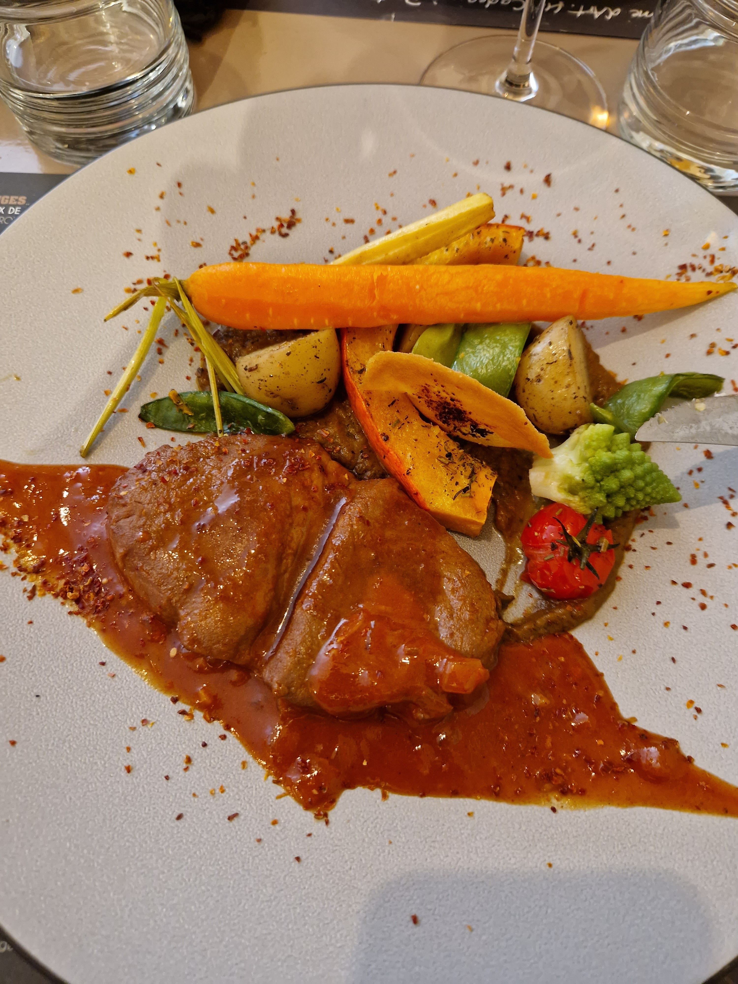 Deuxième repas dans ce restaurant et rien ne manque a notre premiere visite tout est maîtrisé de l'accueil a l'adition Un service organisé et plaisant,des plats juste comme on les aimes, jolis a l'oeil doux au nez et bon en bouche. Une farandole de légumes accompagne le plat et ils sont goûteux. Le vin très bien aussi. Nous reviendrons avec plaisir.