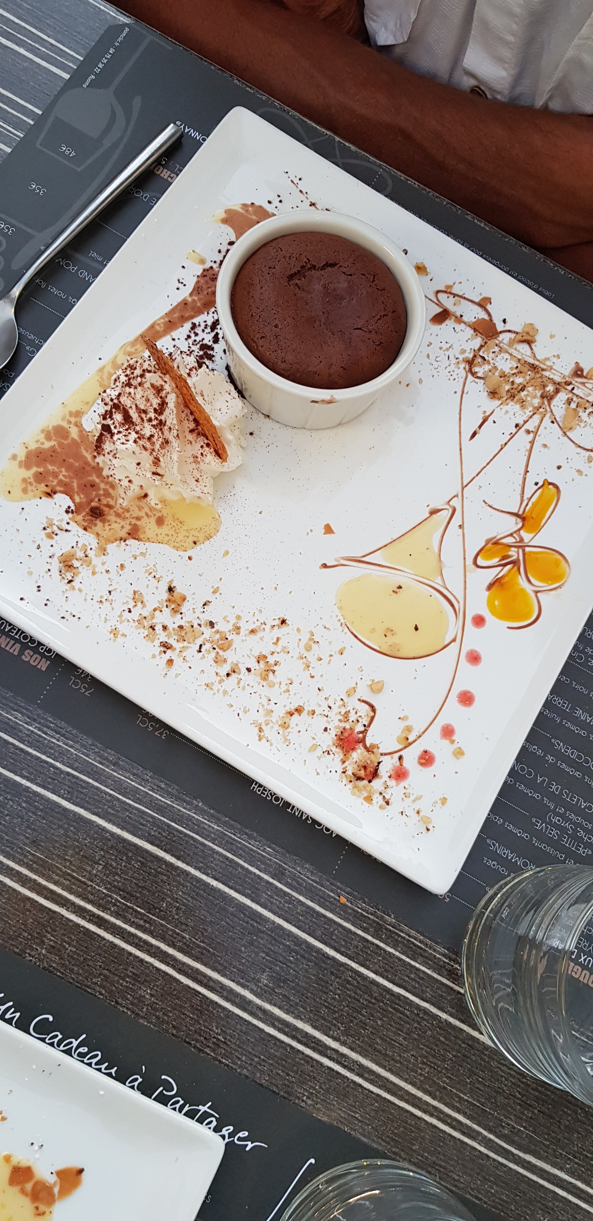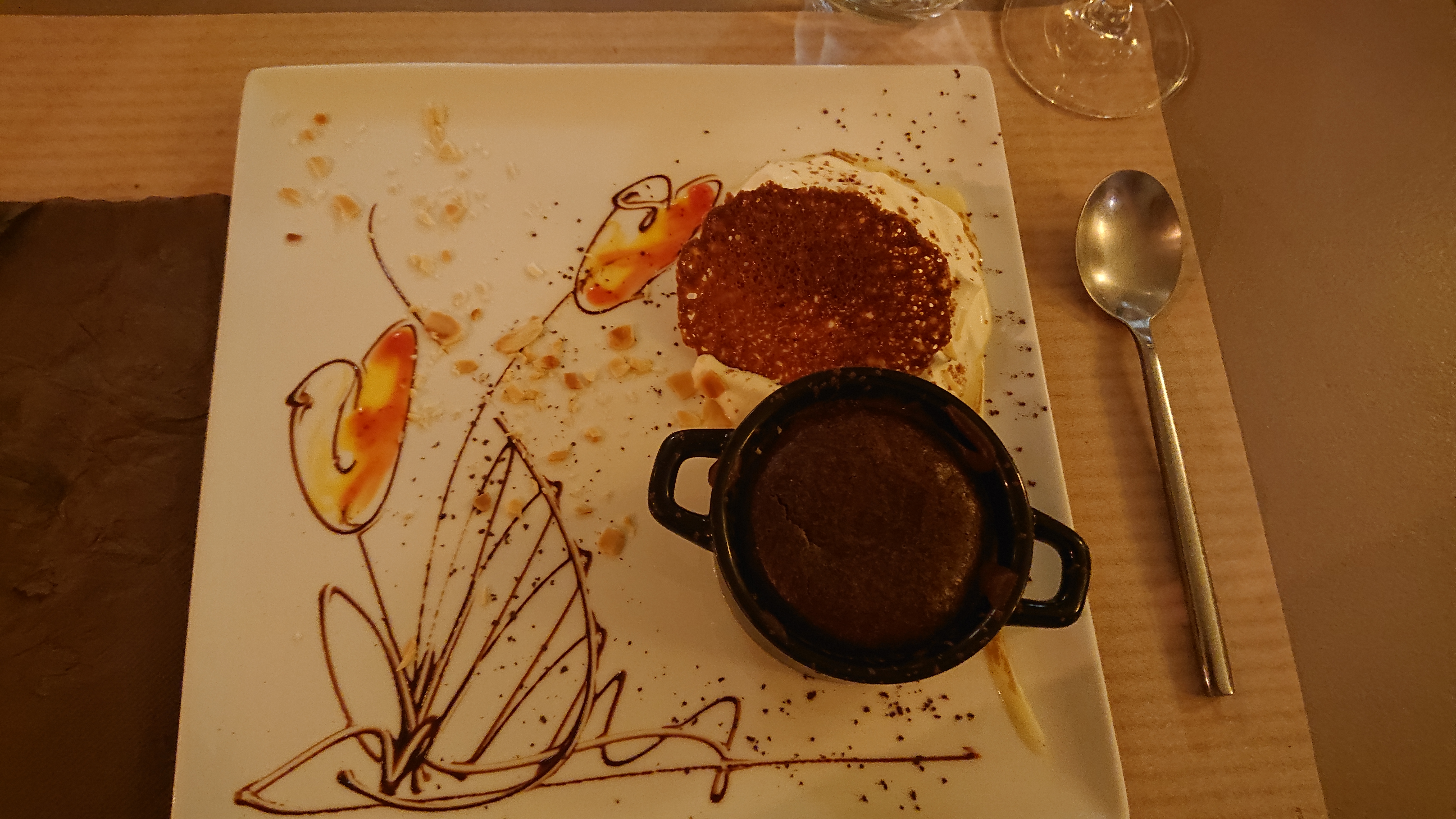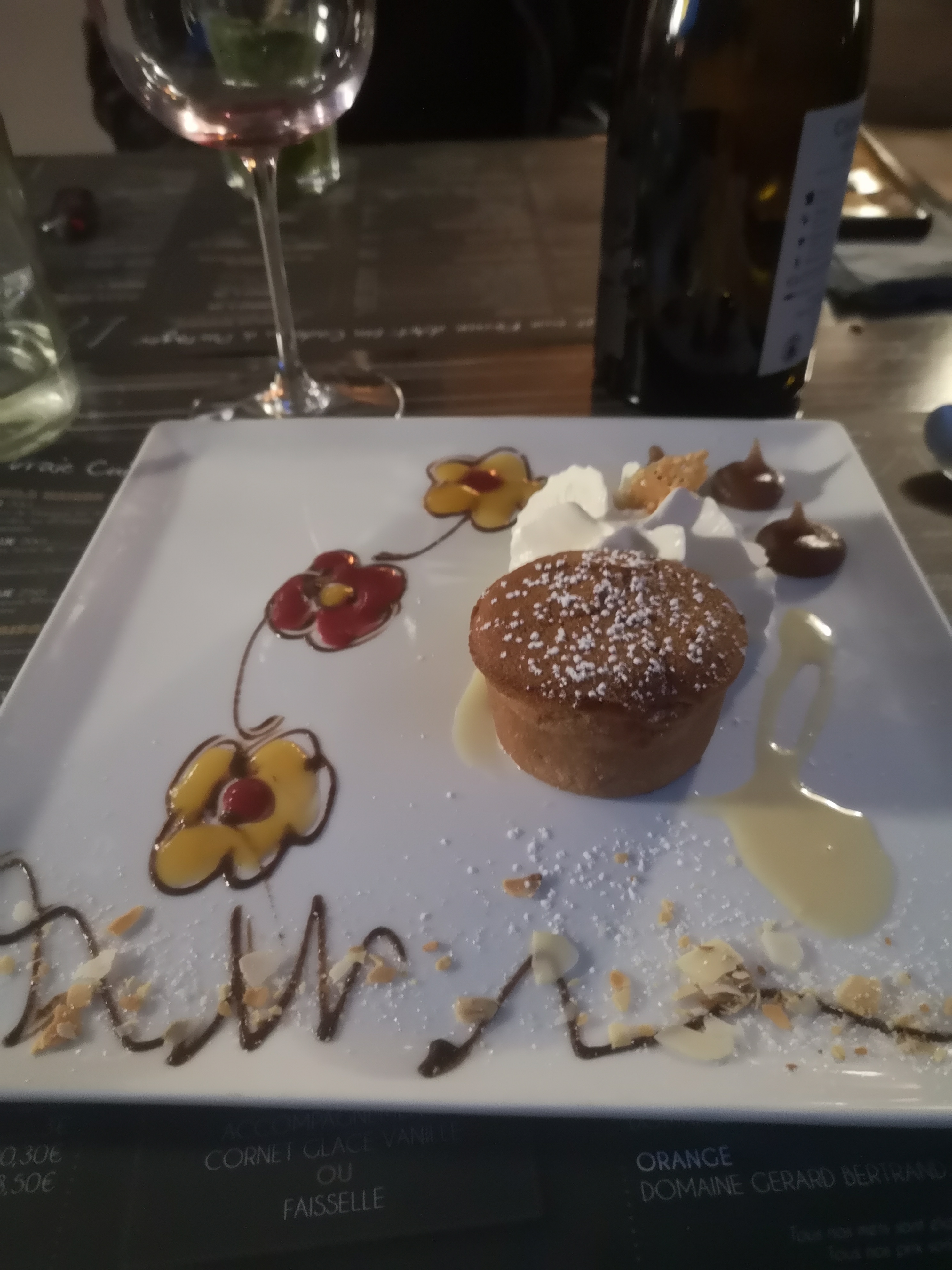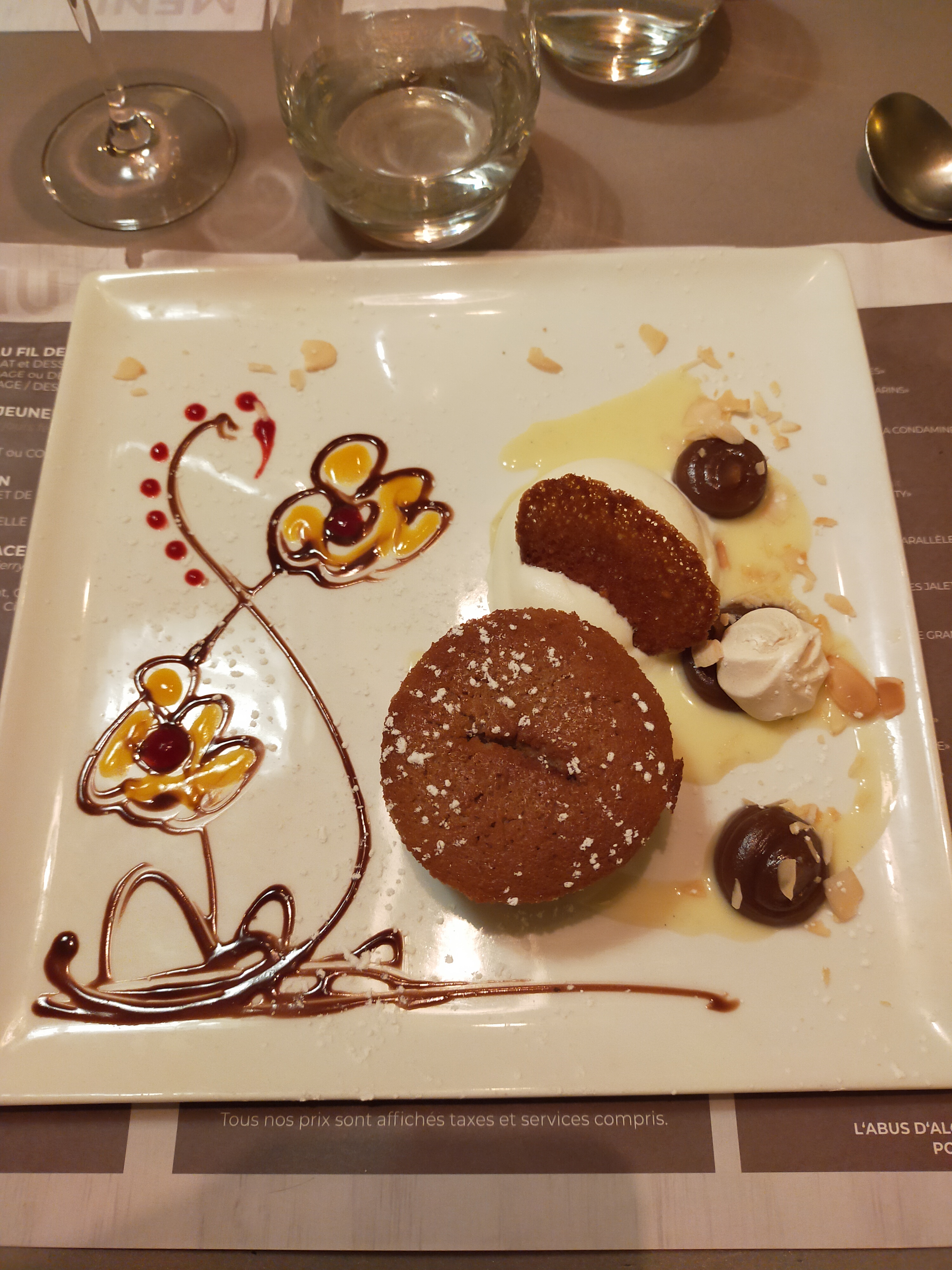Cadre agréable. Personnel au top. Prix: Apero+Entree+plat+dessert+digestifs=45€/personne. Les deserts sont très bien présentés et délicieux