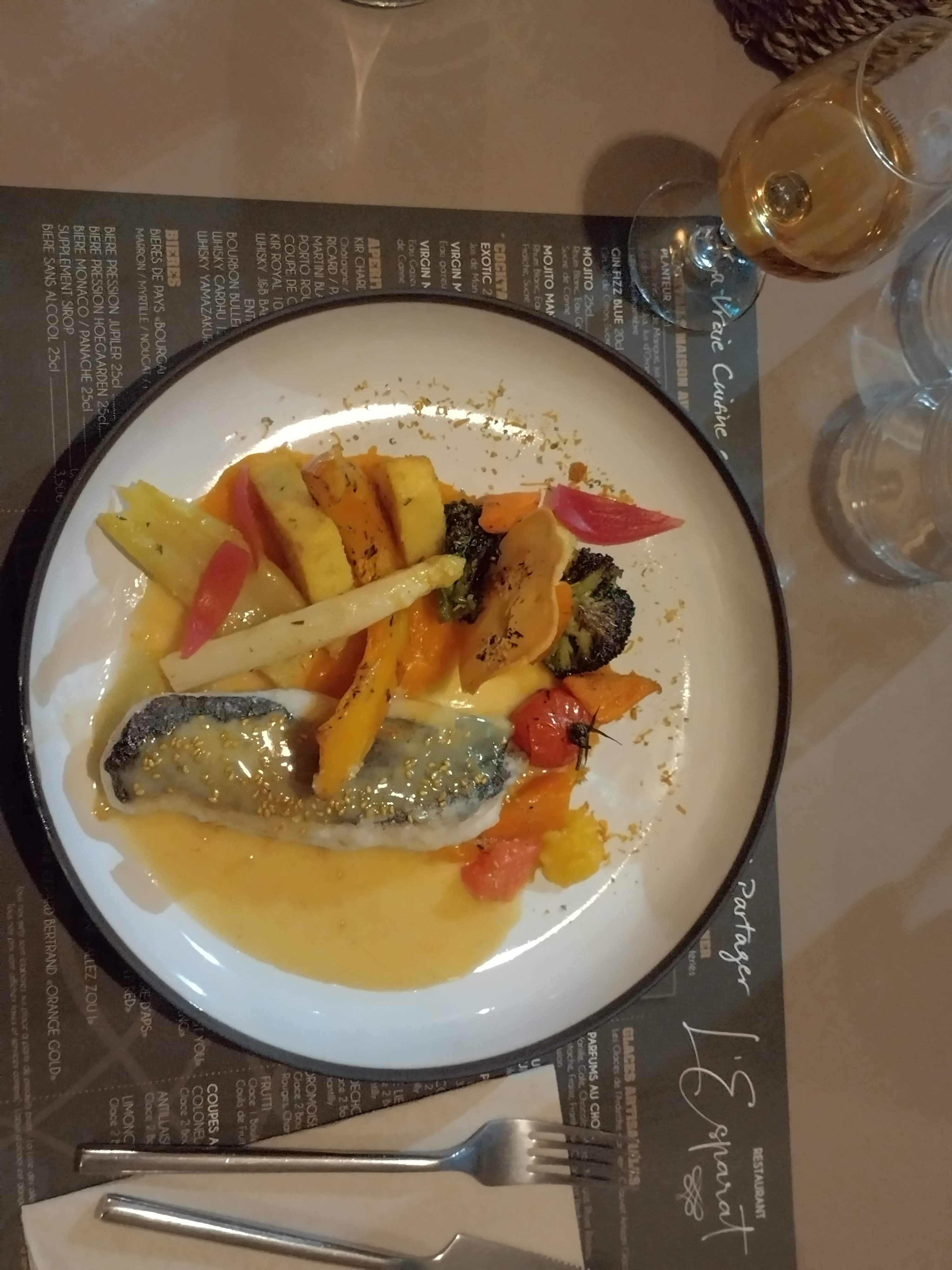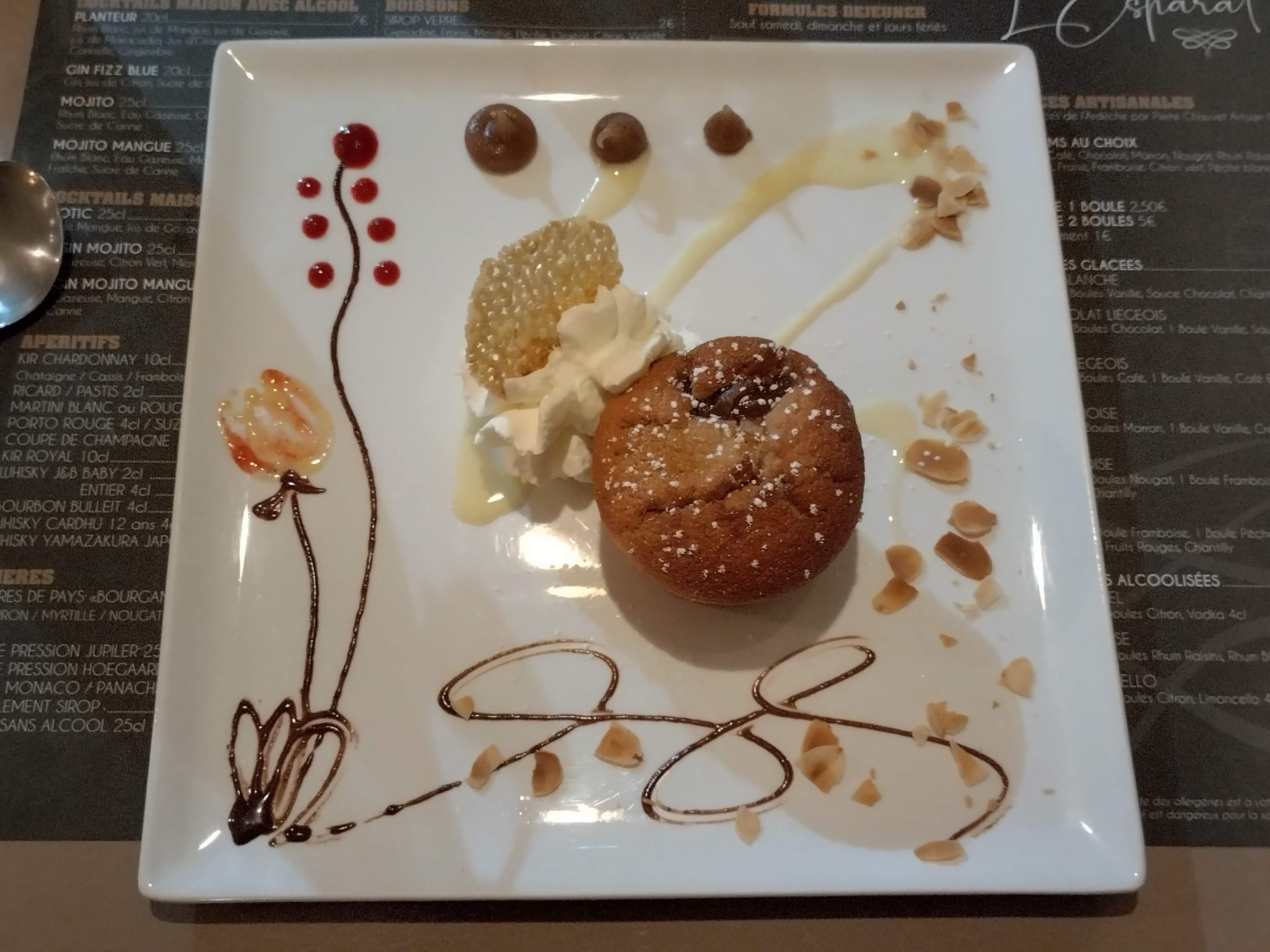 De l'accueil au dessert en passant par les plats, ce fut un régal ! Plats très goûteux , bcp de saveurs avec une présentation soignée, pour un prix plus qu abordable! ( 30 euros pour l'entrée plat dessert ) Et cerise sur le gâteau, surprise du chef pour le dessert qui nous a décoré joliment nos assiettes et une spéciale avec une bougie pour notre anniversaire de mariage ! Nous avons été très touchés par ce gentil geste . Si vous visitez ce beau village de Vogüe allez manger à l esparat c'est un très bon choix !