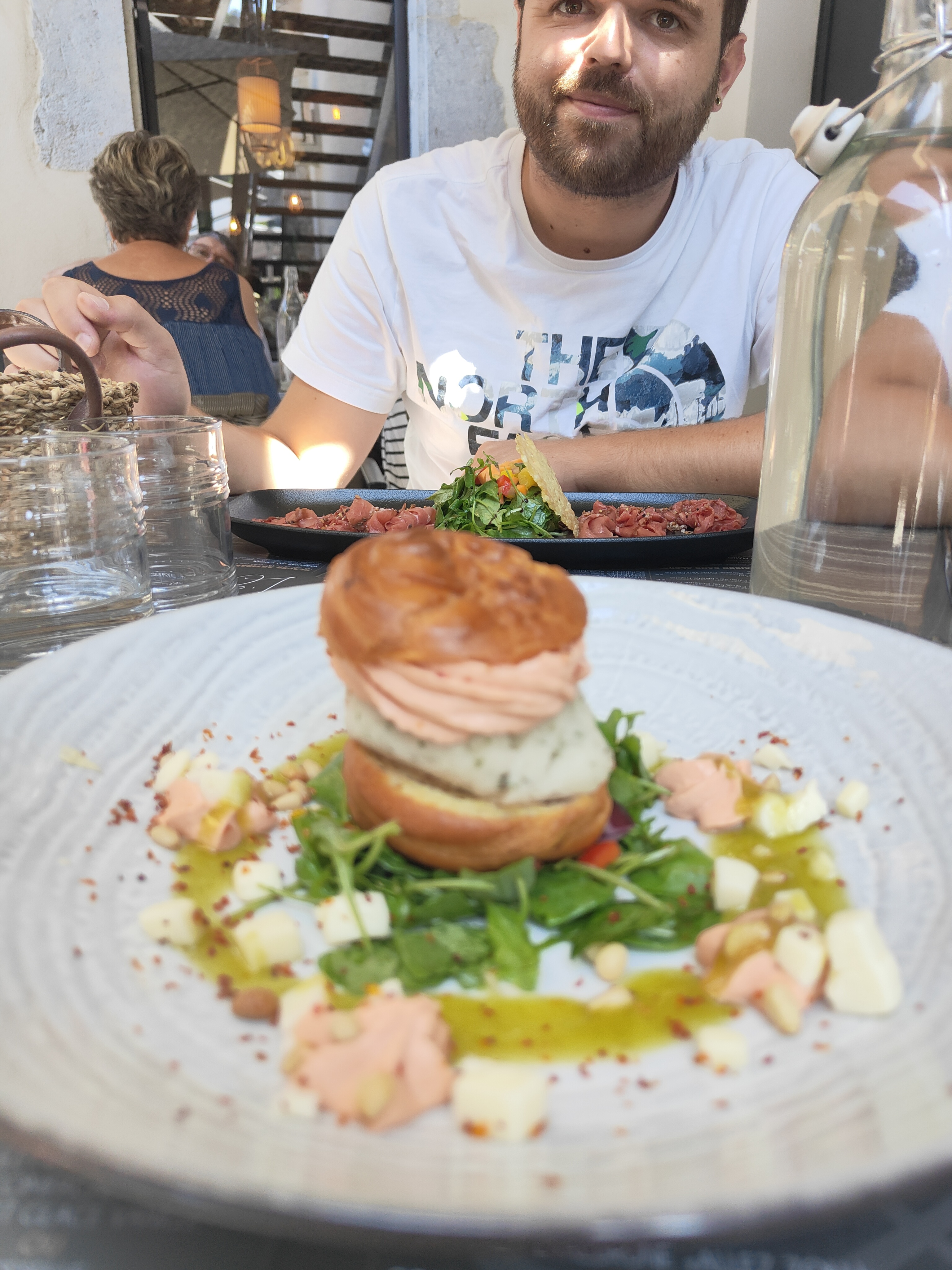 Restaurant dans le petit village de Vogüé très mignon, personnel agréable. Plats bien présentés et très bons. Nous avons pris en entrée le poulpe et le céviché de daurade puis en plat le tataki de bœuf qui était très copieux et bien assaisonné ainsi que le thon mi cuit, légèrement trop cuit mais savoureux. Bel endroit pour débuter les vacances, on recommande !