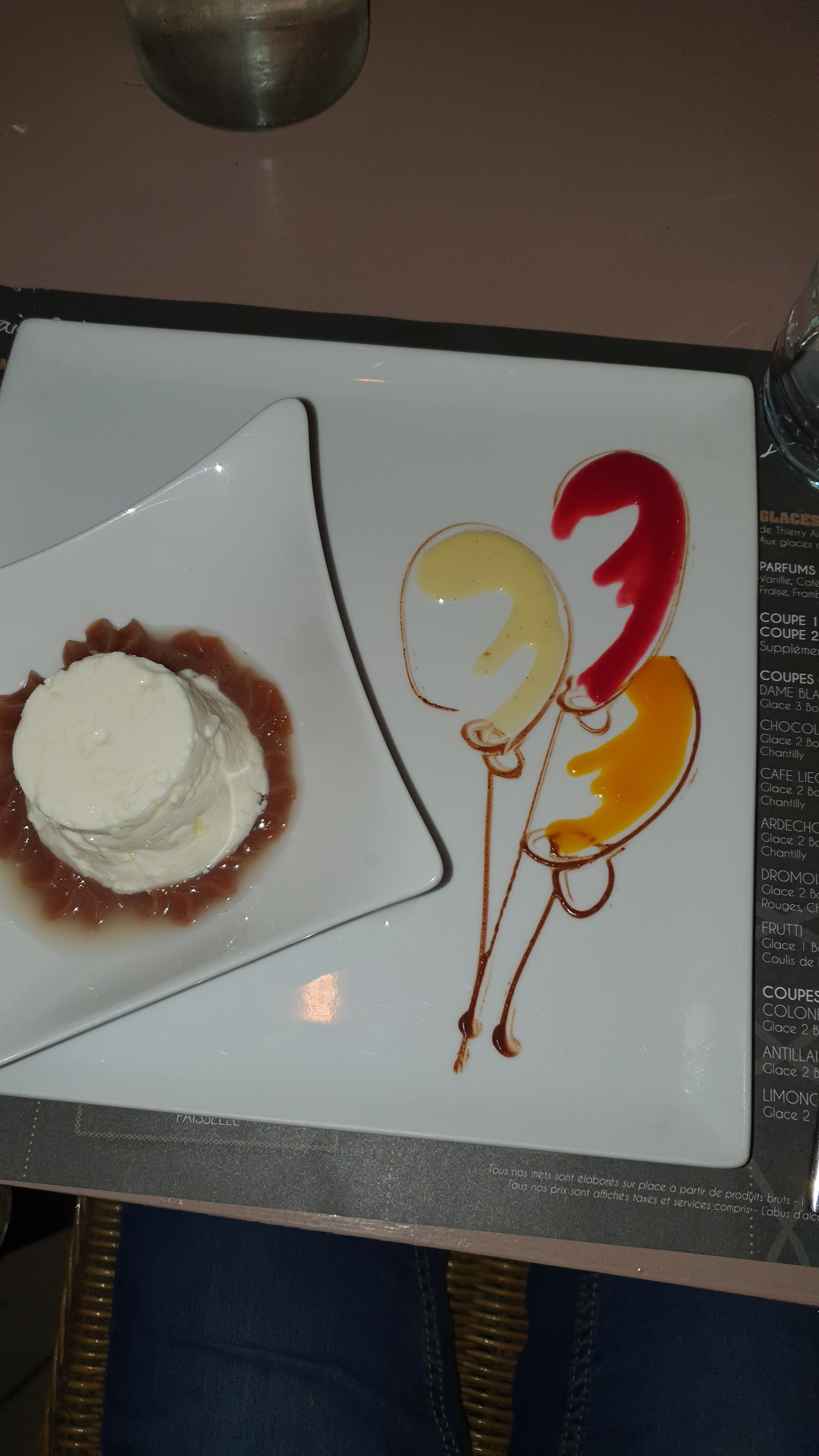 Vacances a voguë :découverte superbe. C'était un menu pour le 14juillet pas déçu. C'était un régal. Un service au top et un accueil au top..