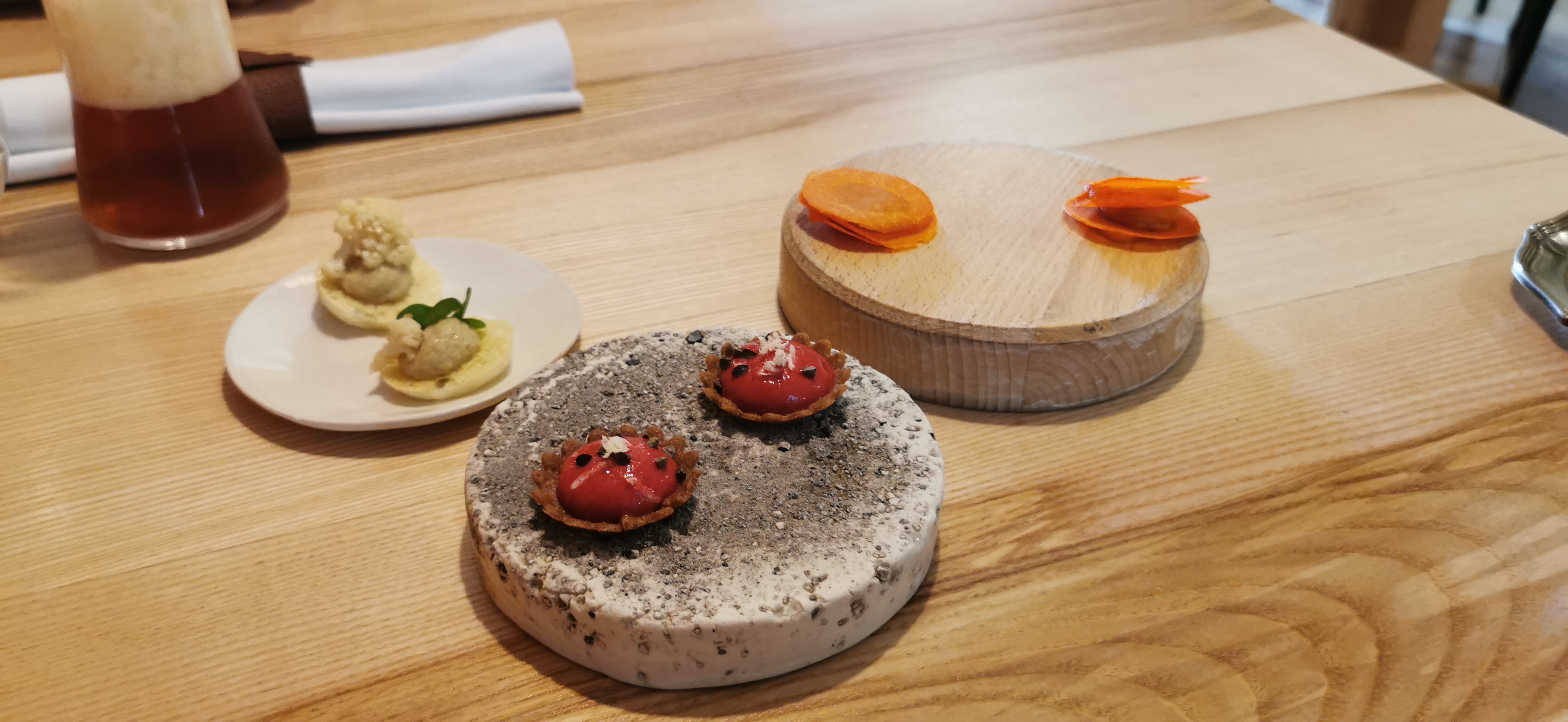 Beau restaurant avec une cuisine de produits locaux, originale et raffinée. Une belle expérience. On vous demande vos intolérances et ce que vous n'aimez pas, et après. Surprise! C'est sympa de ne pas savoir ce qui arrive dans votre assiette. Nous avons passé un bon moment malgré le service parfois un peu guindé.