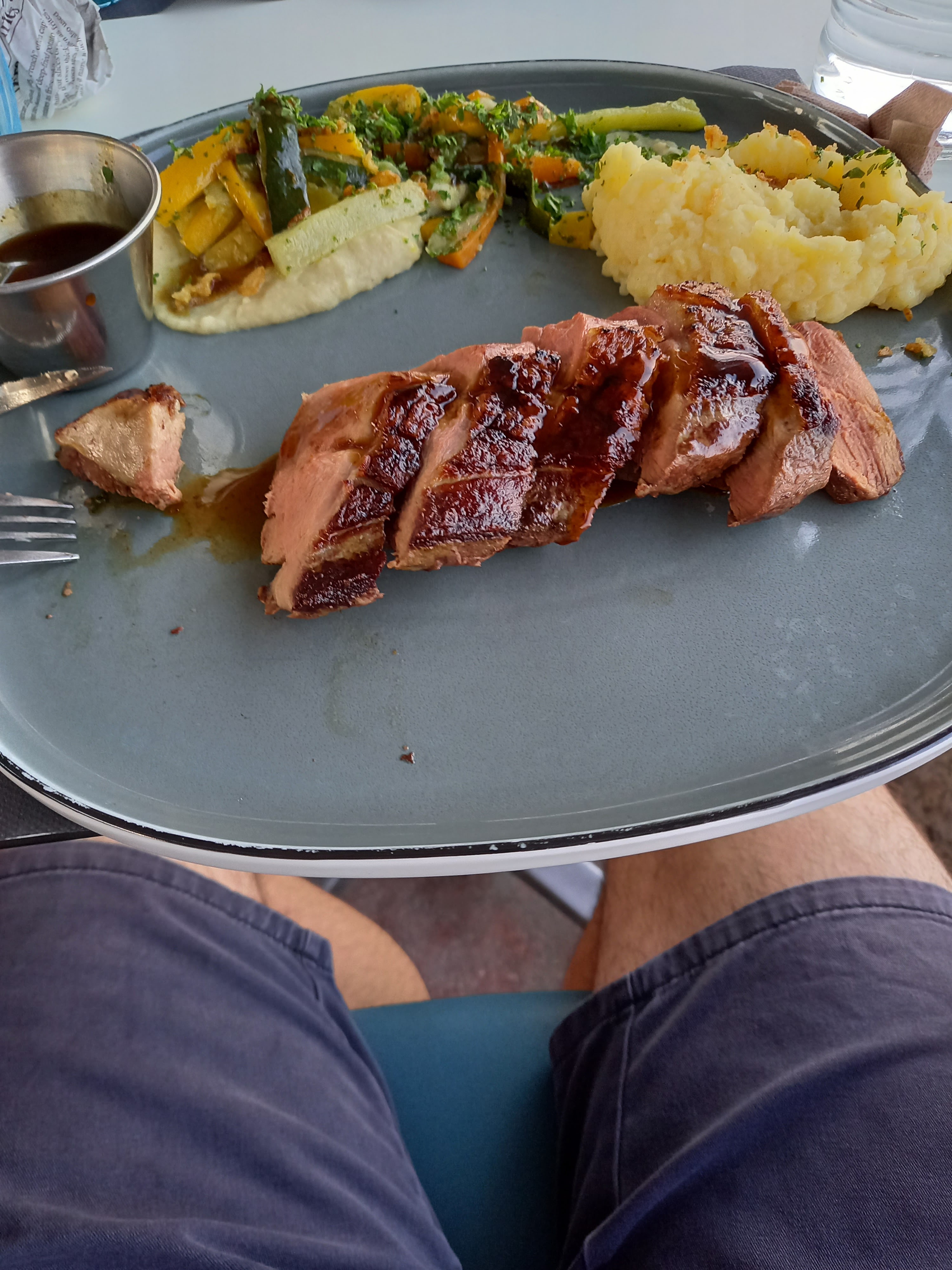 Je suis obligé de mettre la note de 3/5, juste parce que sur le menu est marqué souris d’agneau avec accompagnement de frite + légumes, et j’ai due réclamer mes frites, qui m’on été facturé 5€ en plus du plat, c’est désolant car la souris était bonne.