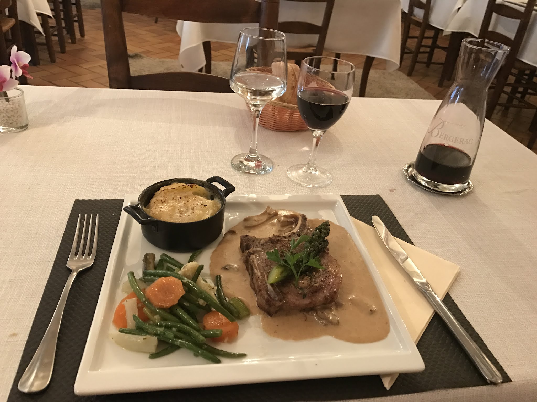 Un sans faute pour ce restaurant : de bons plats, de bonnes saveurs, plats chauds servis dans des assiettes chaudes, des couteaux qui coupent, un serveur attentionné. Bref, une adresse à retenir.