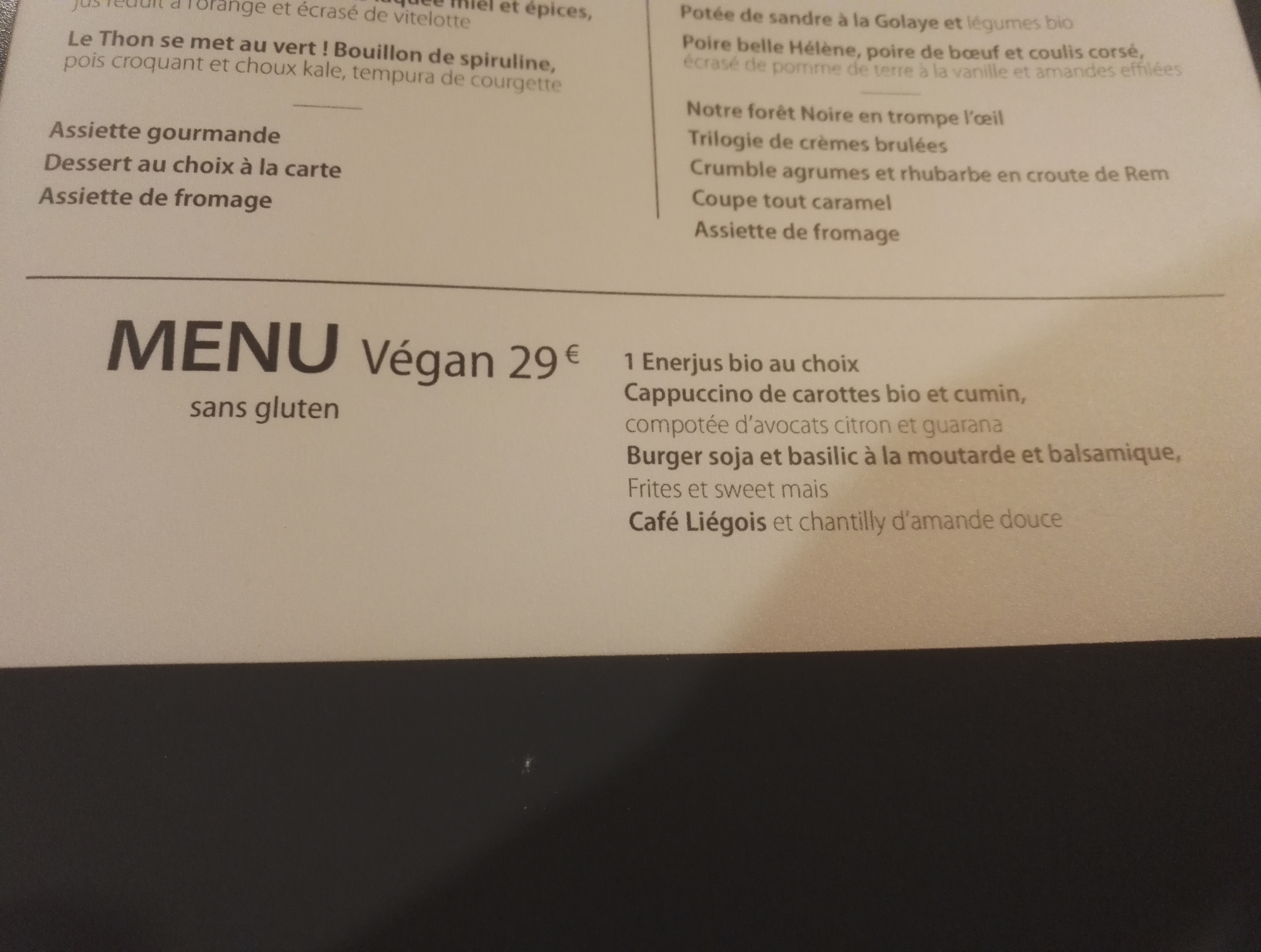 Toujours un plaisir d'aller manger dans ce restaurant. la carte change souvent au fil des saisons personnel agréable et compétent. endroit calme le soir bref, adresse à recommander les yeux fermés