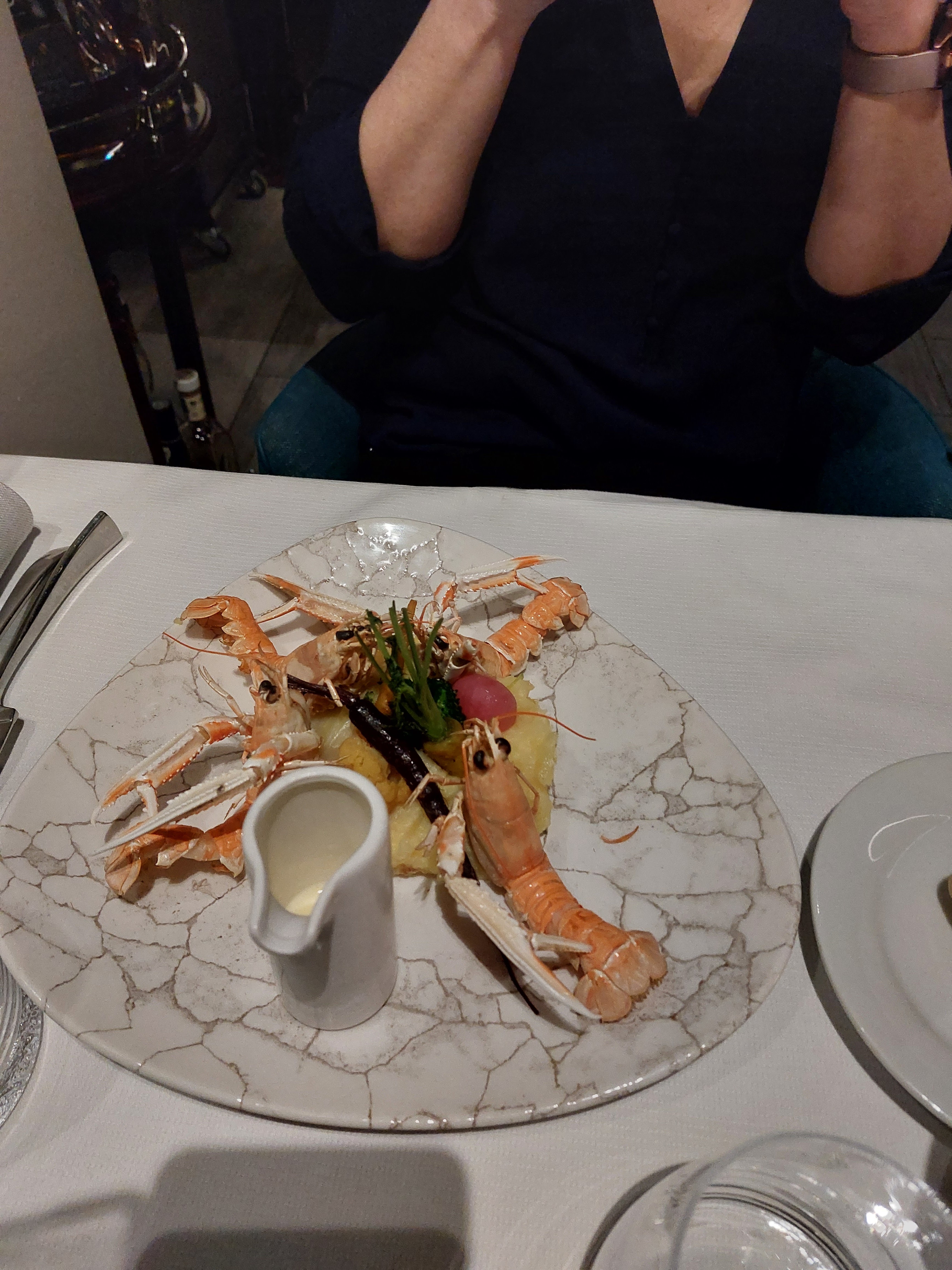 Très bonne table Juste un peu déçu par les quantités Trois coquilles Saint Jacques Pour 25 euros Ou la quantité ou le prix mais Décalage malgré le service irréprochable