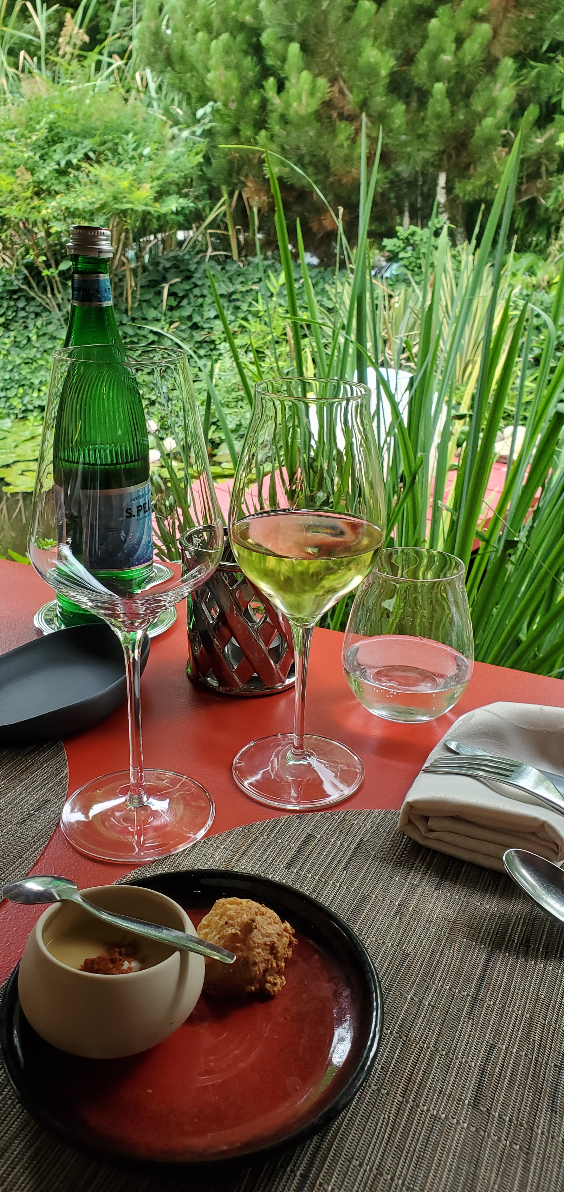 Posté le 20/07/2020 à 14:09"Très bonne surprise, personnel très agréable et aux petits soins, cadre apaisant et magnifique (le jardin zen avec bassin et plantes qui donne une ambiance de fond dès l'entrée), nous avons testés plusieurs entrées, plats, desserts, tous étaient somptueusement bien décorés et surtout un délice pour les papilles. (Produits frais et de qualité). Je recommande complètement si vous souhaitez manger à 99% fait maison et gastronomique. Mes compliments au(x) chef(s)! ☺"