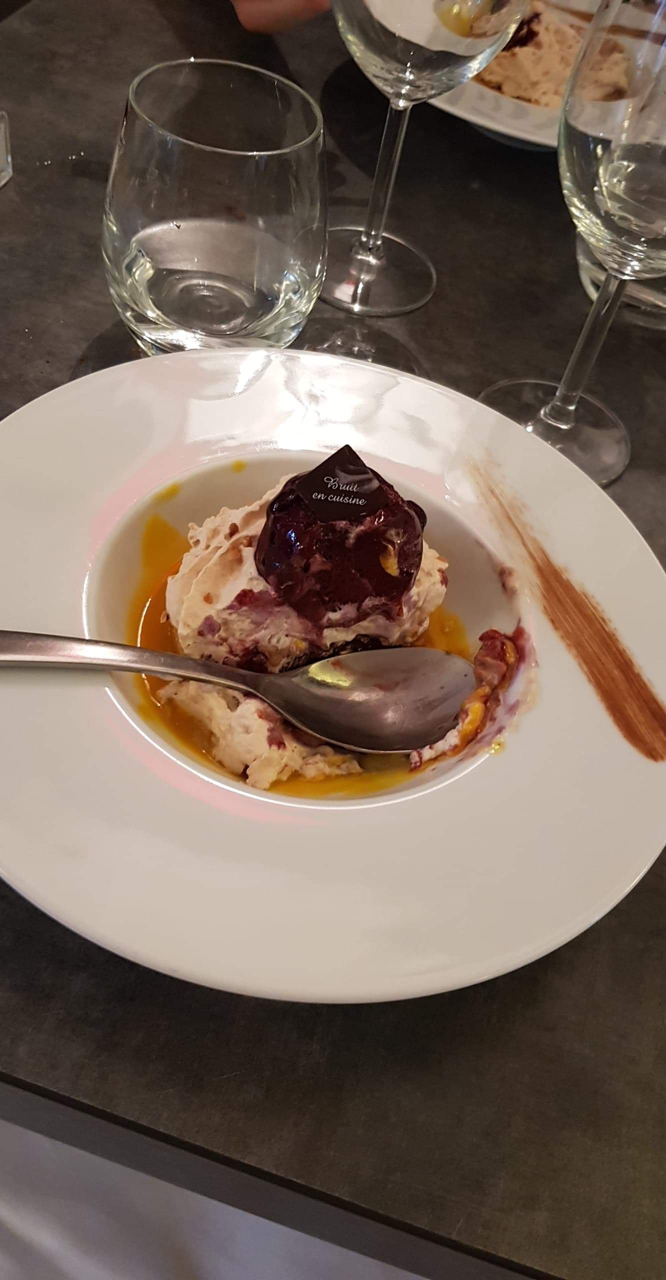 On recommande. Vraiment bien. Service impeccable, cuisine délicieuse. Et pour les gens qui, comme moi, souffrent d'allergies alimentaires, le personnel est aimable et compréhensif. Ce n'est malheureusement pas le cas partout mais là, à Bruit en cuisine, oui. Il y a moyen de s'arranger. À noter que le menu du midi en semaine contient souvent (je n'ose pas affirmer toujours) un choix sans gluten en plat et ça, c'est top. Merci à toute l'équipe.