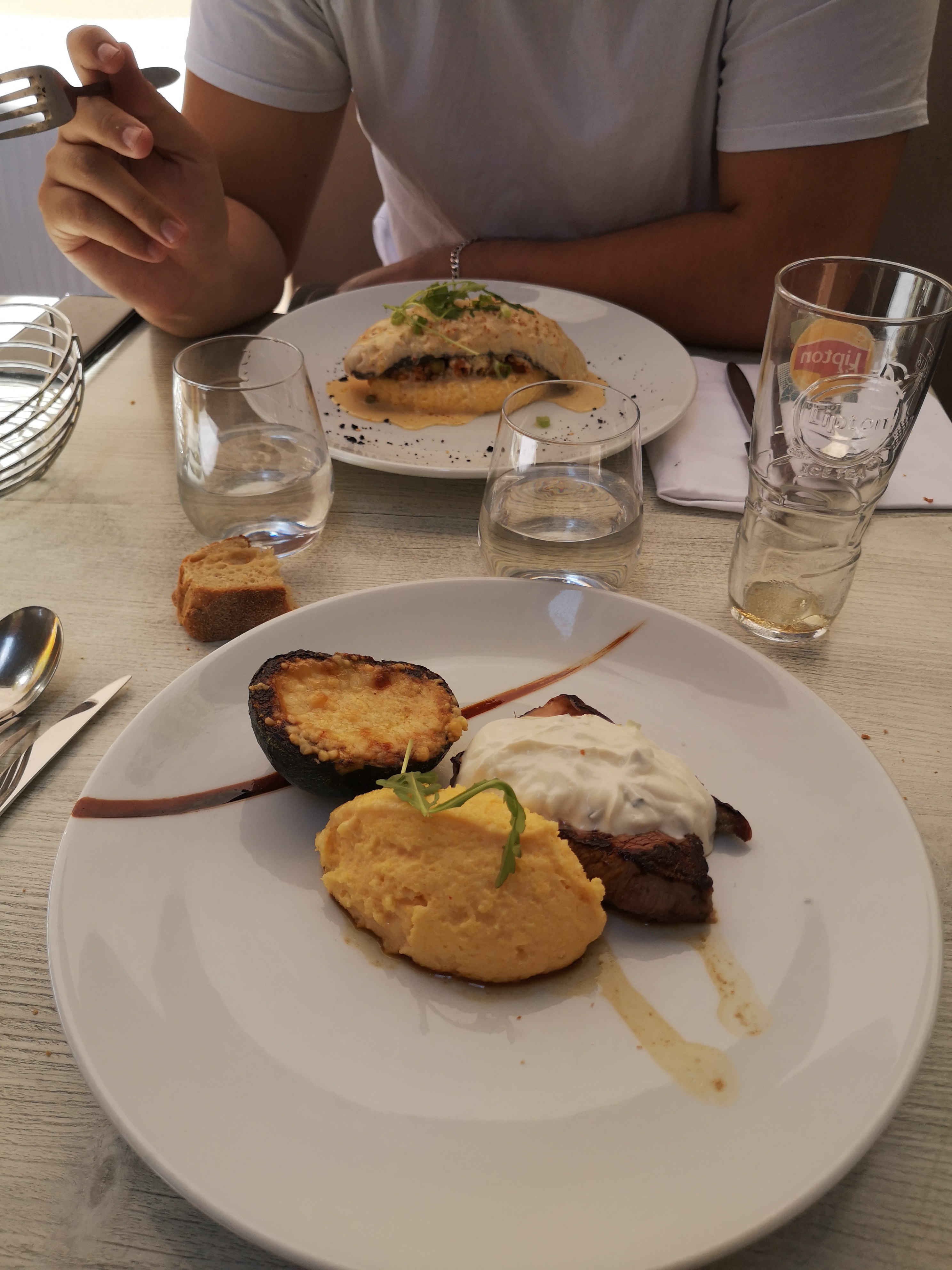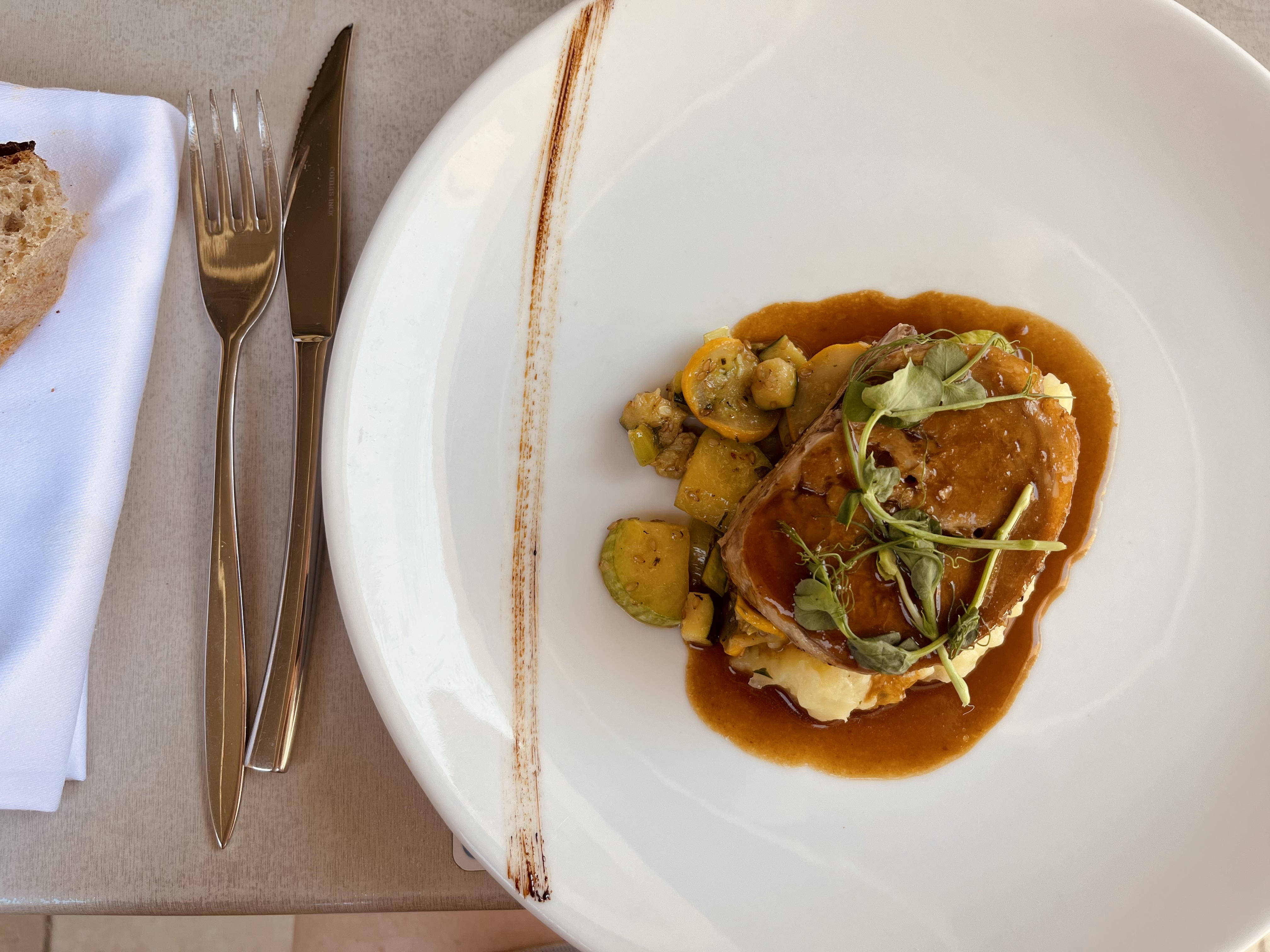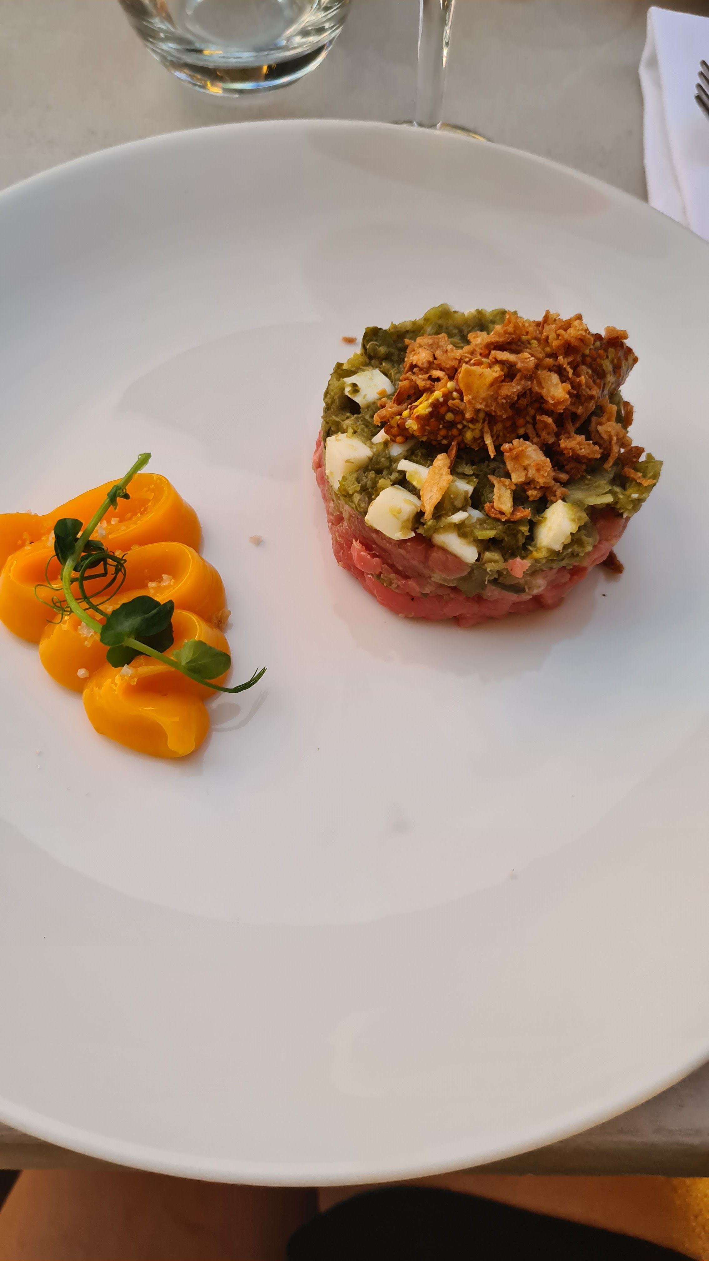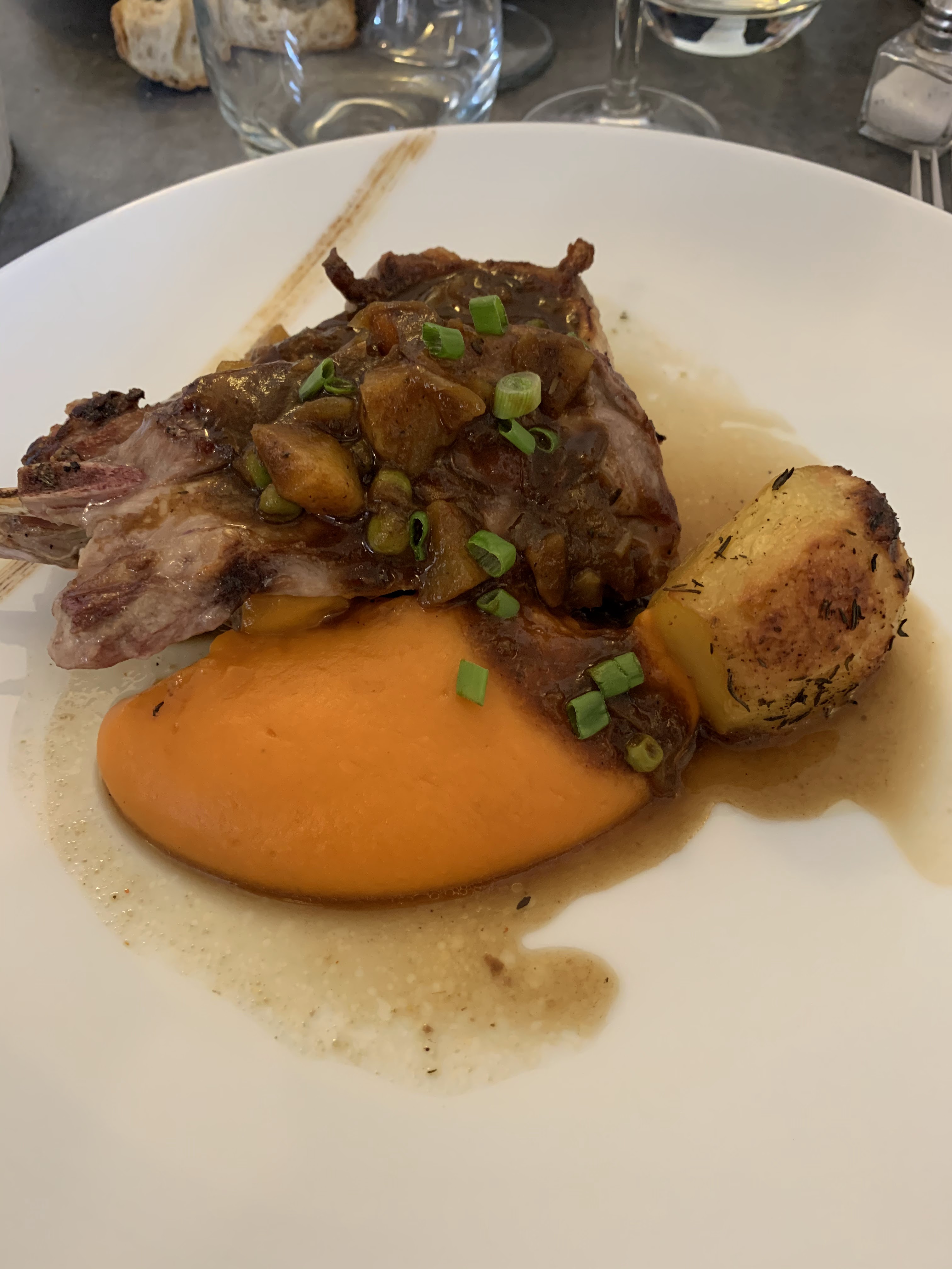 Comme d'habitude le service est top, le cadre et la beauté des assiettes restent inchangés. Par contre, un peu déçue concernant les saveurs. Nous avons pris en entrée foccacia et carpaccio. Seul le carpaccio était savoureux grâce au jus de citron. La mousse chèvre de la foccaccia...insipide dommage. En plat : épaule d agneau et carré de veau. Les cuissons étaient parfaites mais pareil, toujours un peu déçue par les assaisonnements inexistants.
