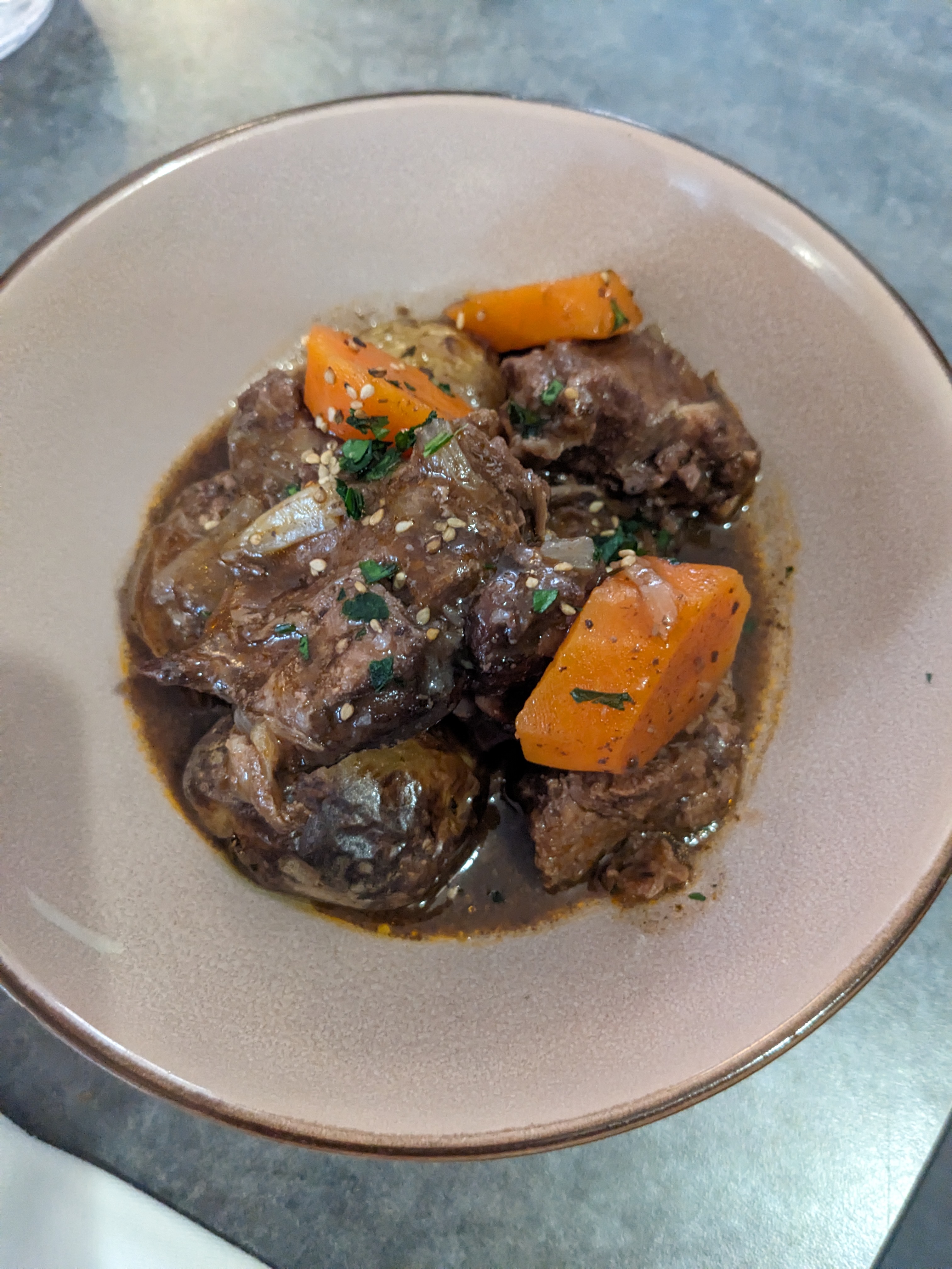 Repas en compagnie de mes parents et de mon mari. Tout le monde a été ravi et repu. Service impeccable, repas délicieux et belle présentation. Merci !
