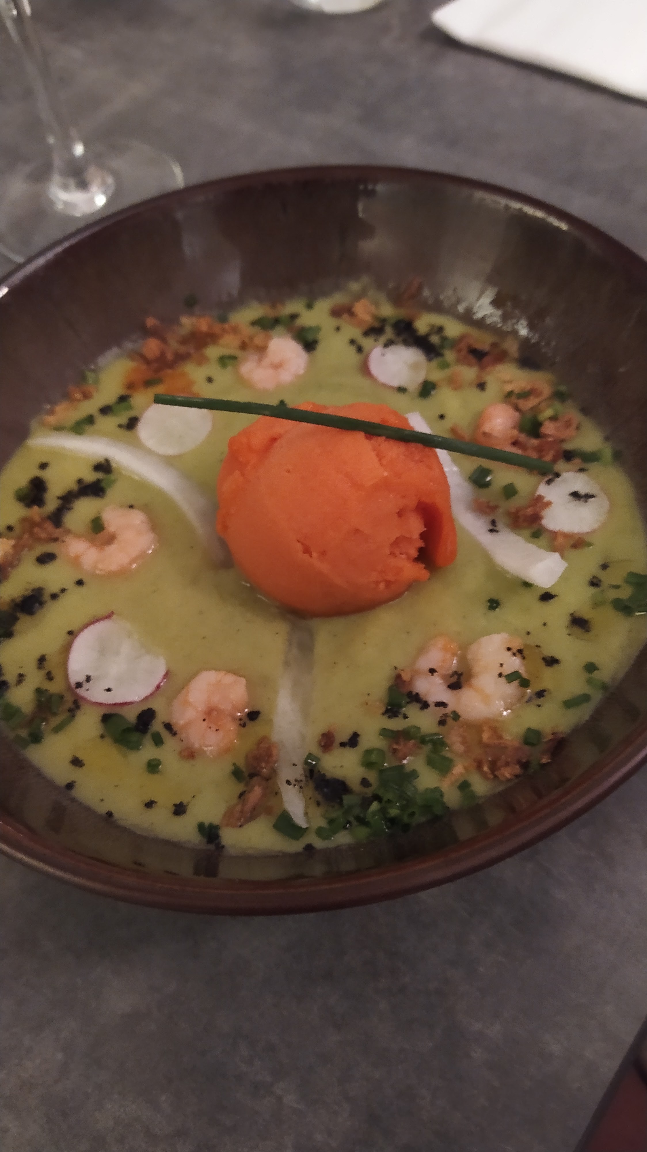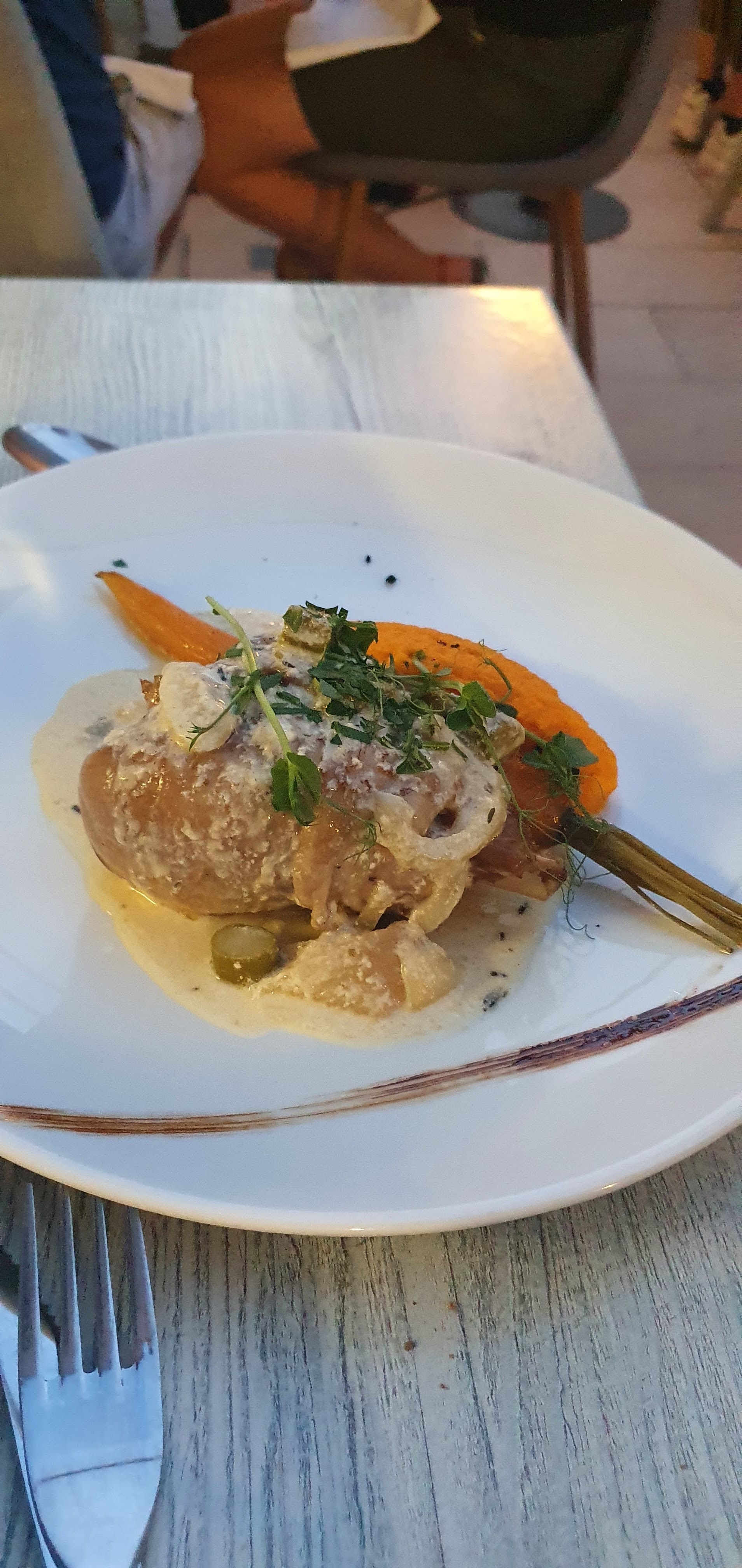 Une équipe jeune, dynamique et chaleureuse vous propose des mets raffinés, travaillés subtilement mais sans excès de gras. Des saveurs originales qui appellent à une nouvelle réservation. Car oui le restaurant est souvent complet, ce qui est plutôt bon signe... Merci de nous avoir permis de clôturer notre soirée des notes si délicates.