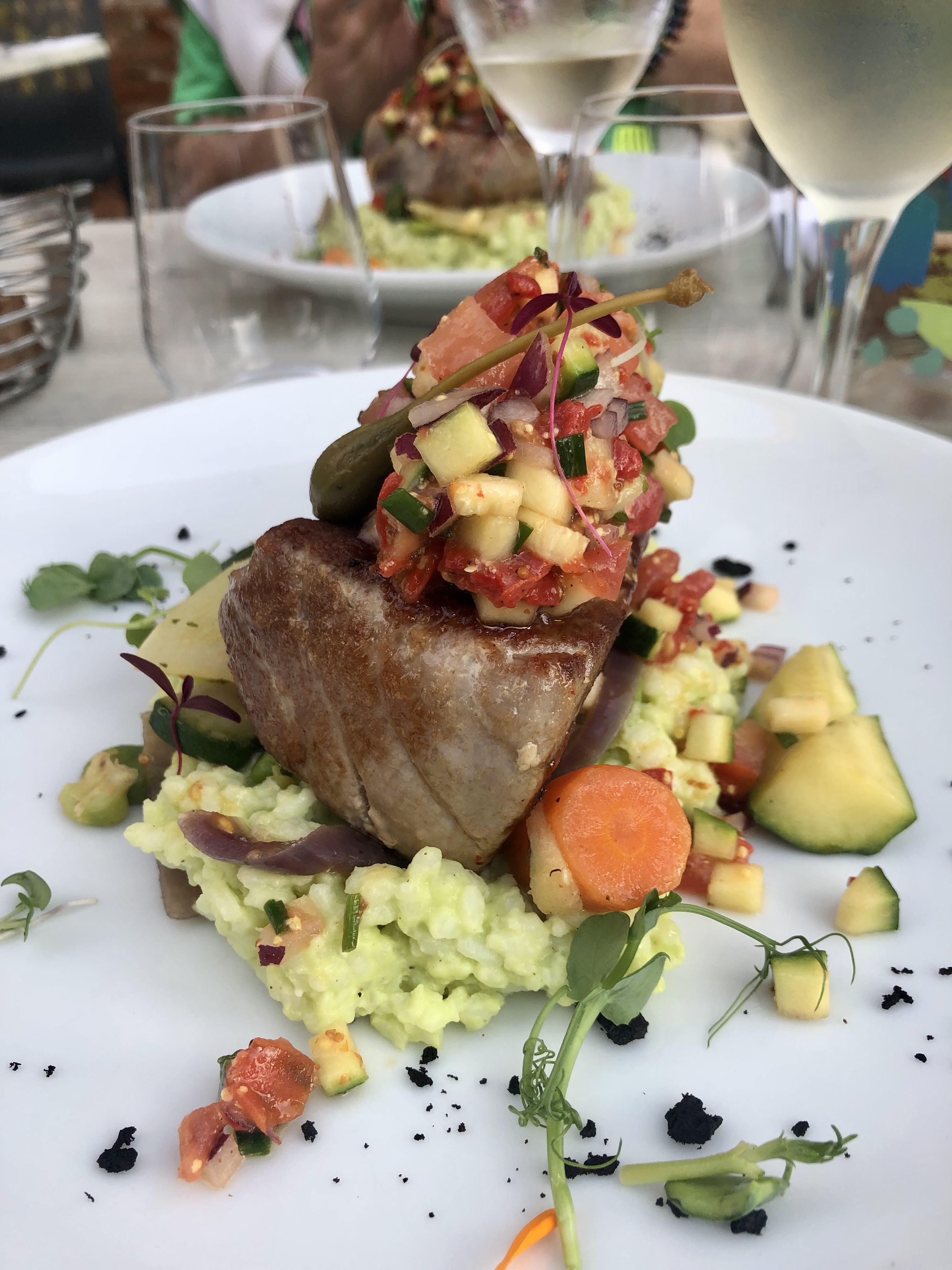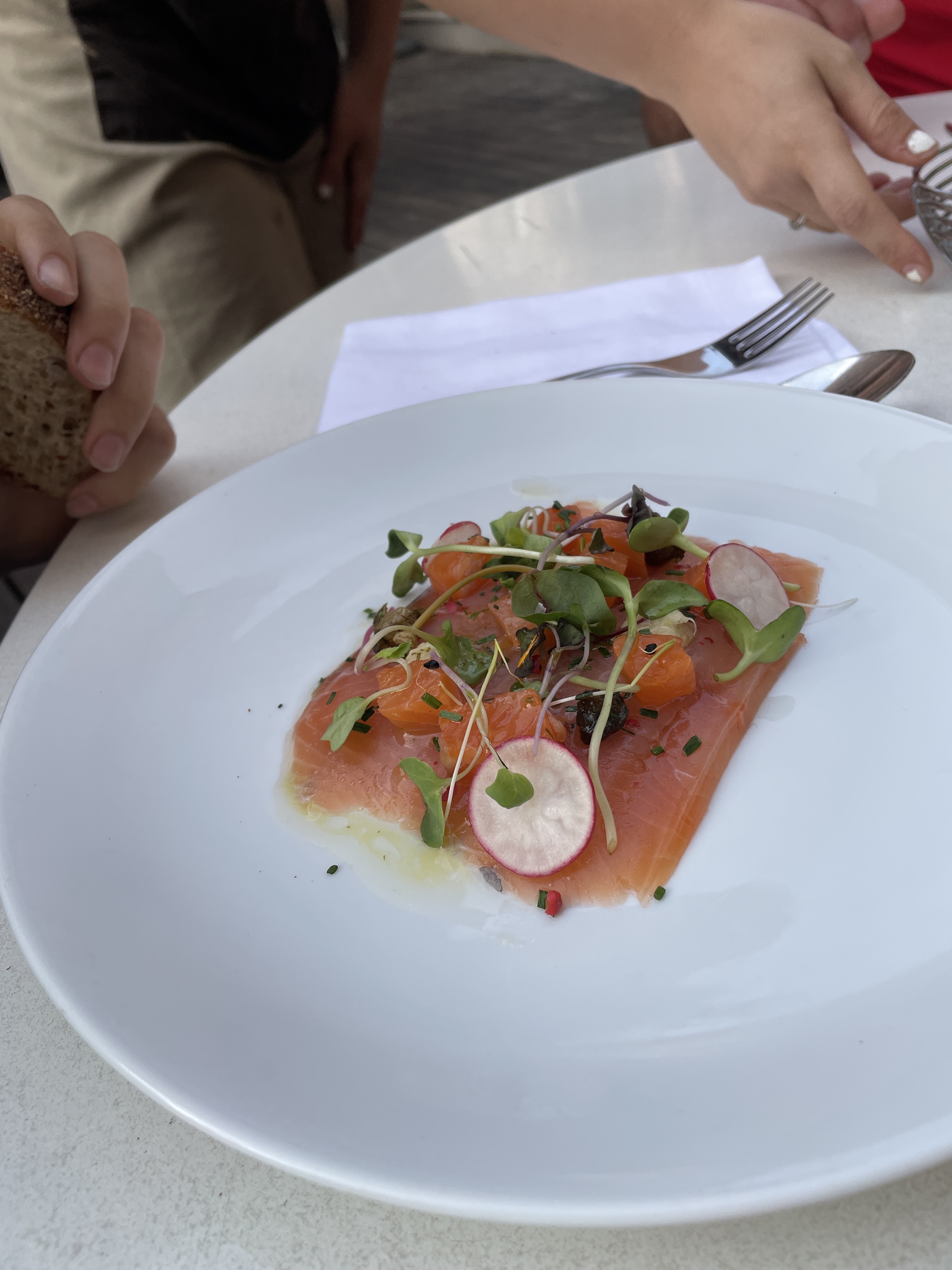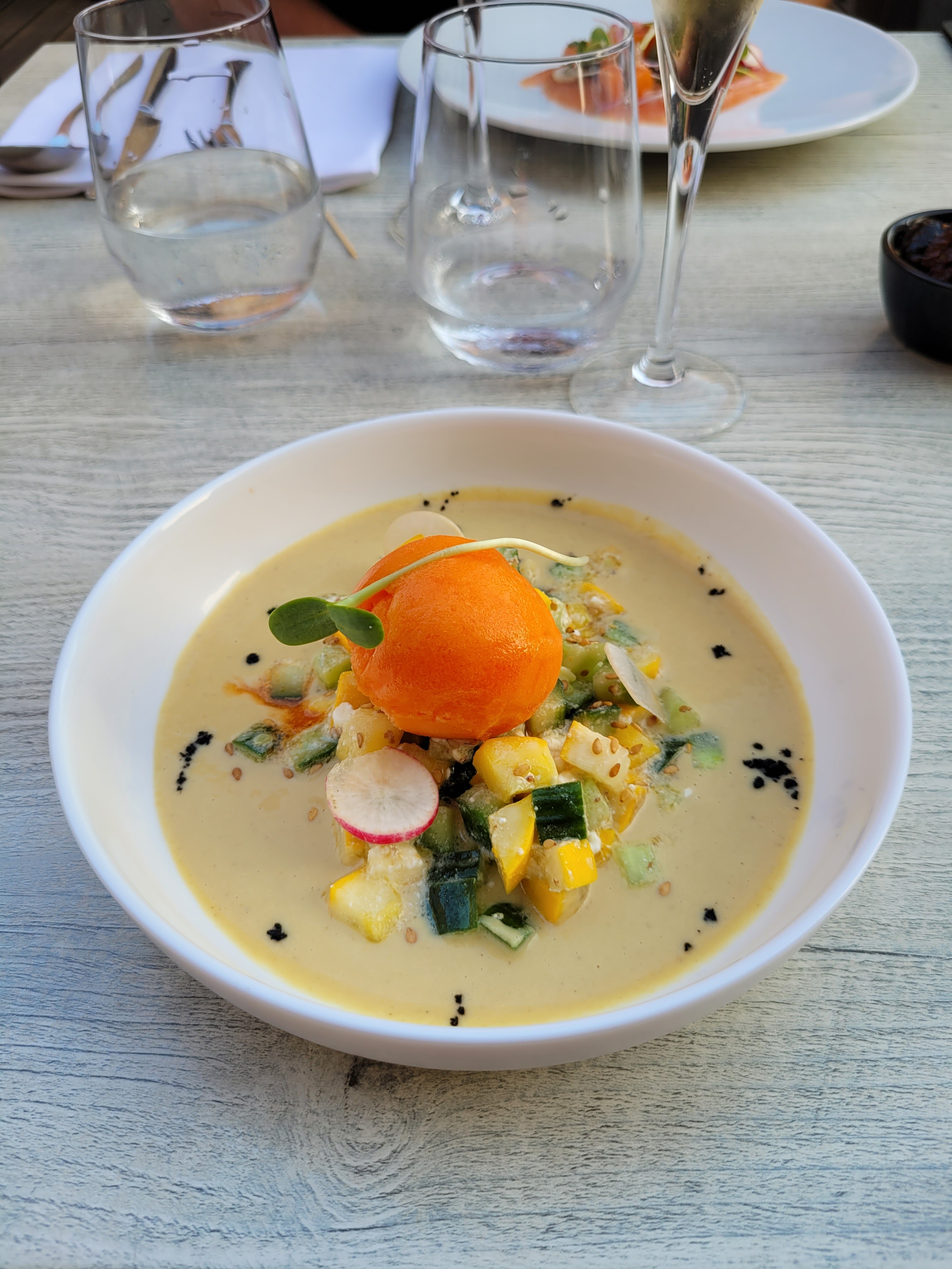 Comme son nom l'indique, en intérieur le restaurant est très (trop) bruillant. Des panneaux de réductions de bruit seraient les bienvenues. L'accueil et le service étaient agréables. Equipe souriante. Les ingrédients des plats sont qualitatifs, la quantité est juste. Petit bémol sur le carpaccio de poisson qui en réalité sont des tranches plutôt épaisses. Le dressage est magnifiquement bien exécuté et les plats changent de l'habitude.