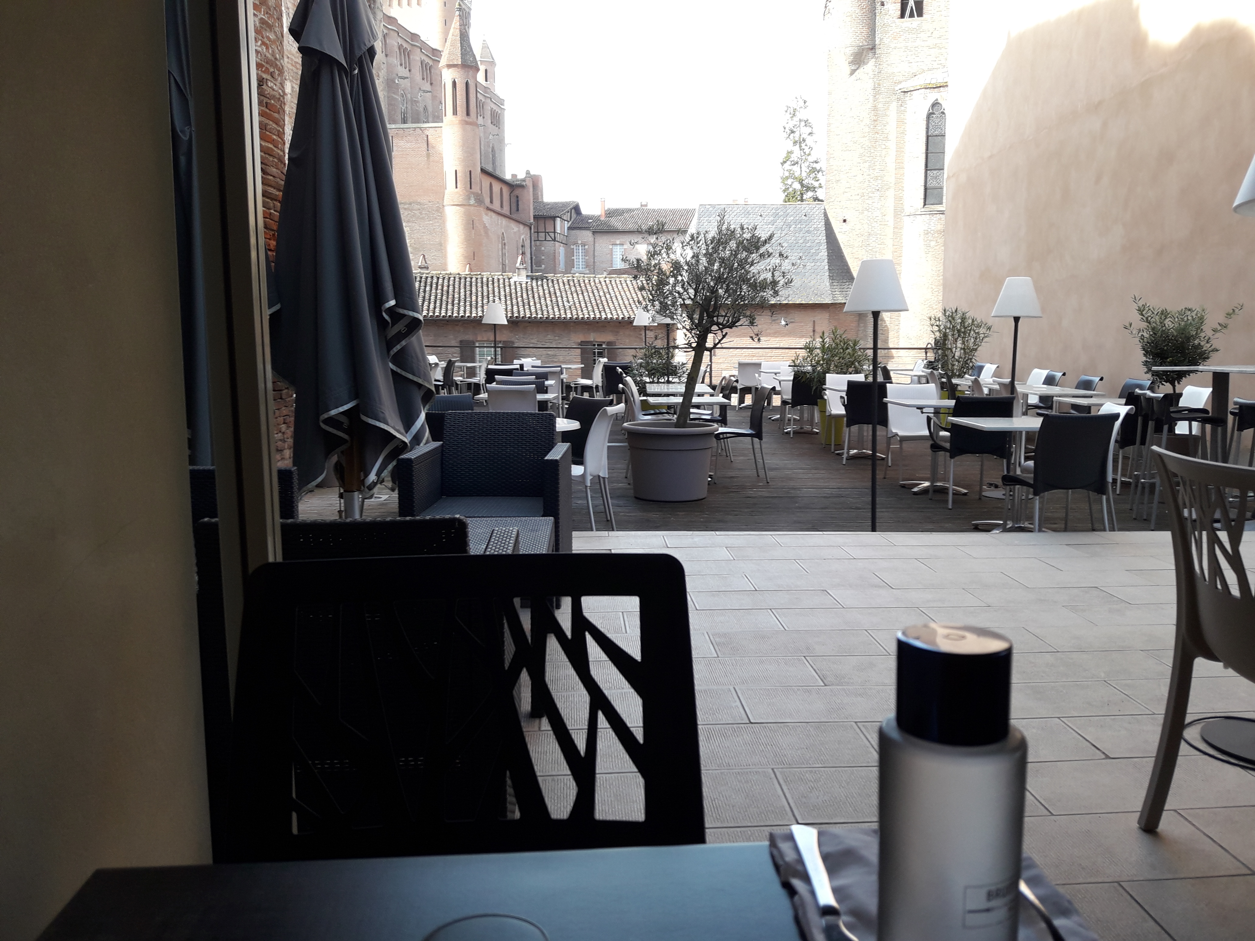Le lieu agréable avec une vue superbe sur la cathédrale d Albi. Repas très bon de qualité. Sauf mon dessert tiramisu verveine citron , je n ai pas trop aimé.. Impératif : pensez à réserver 😉 A decouvrir