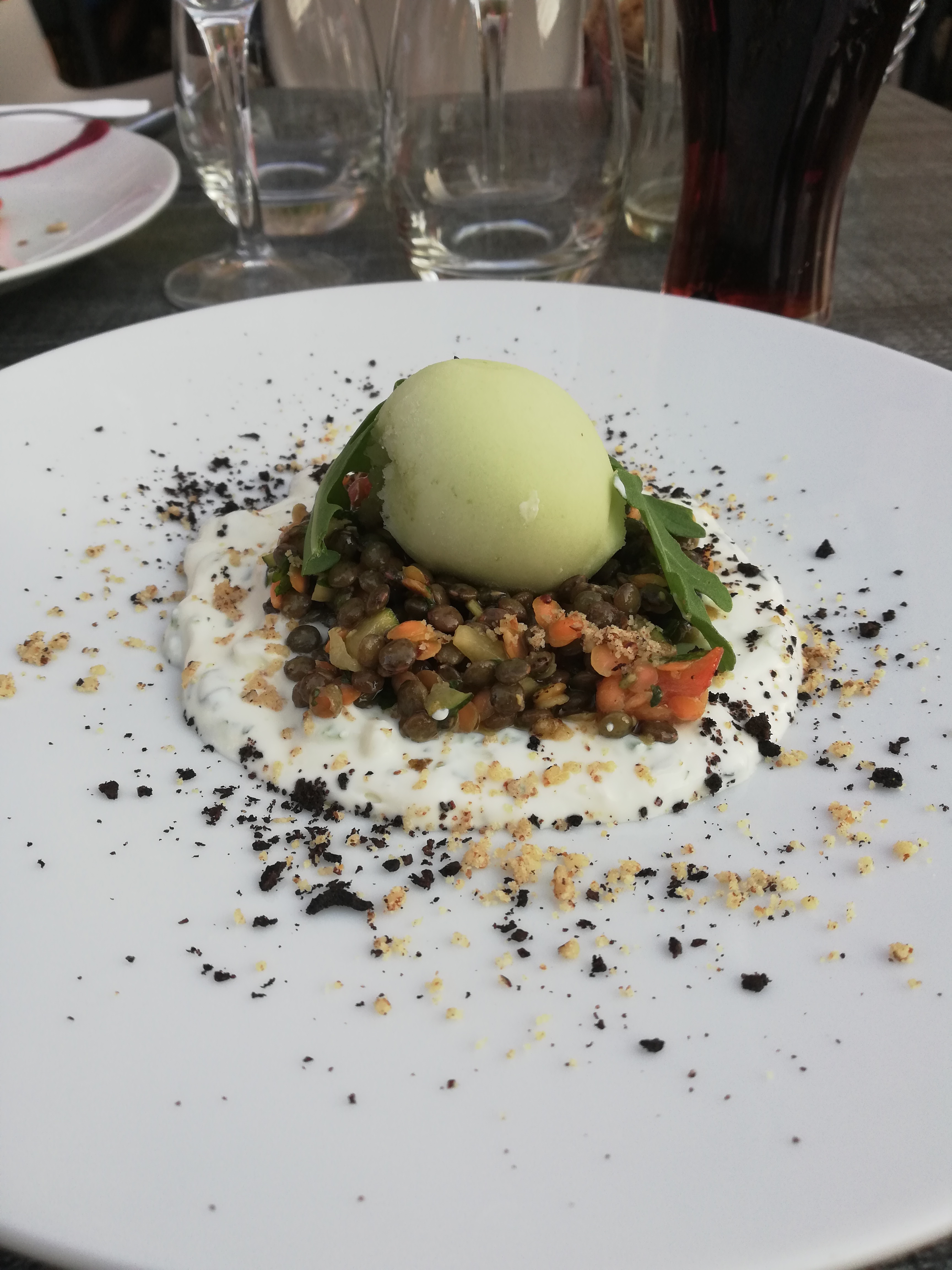Vue de la terrasse magnifique ! Personnel compétent,et risotto au top! Je conseille ce Resto,qu'on m'avait d'ailleurs conseillé !