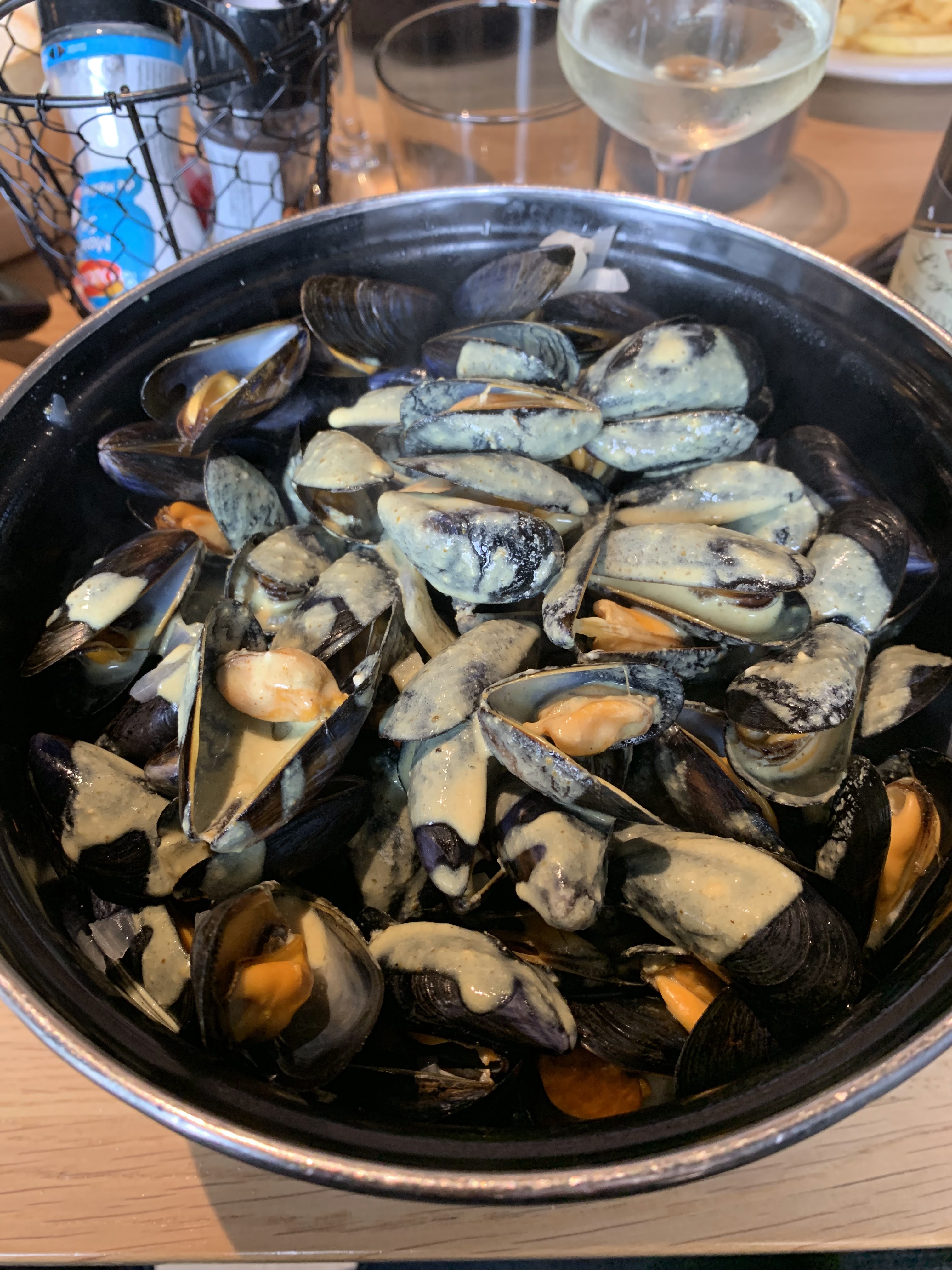 Bon accueil et bonne dégustation de moules à la crème. Seul bémol, il manquait deux ou trois minutes de cuisson pour que toutes les moules soient bien ouvertes. Dessert excellent. Personnel attentif et compétent. Je recommande.