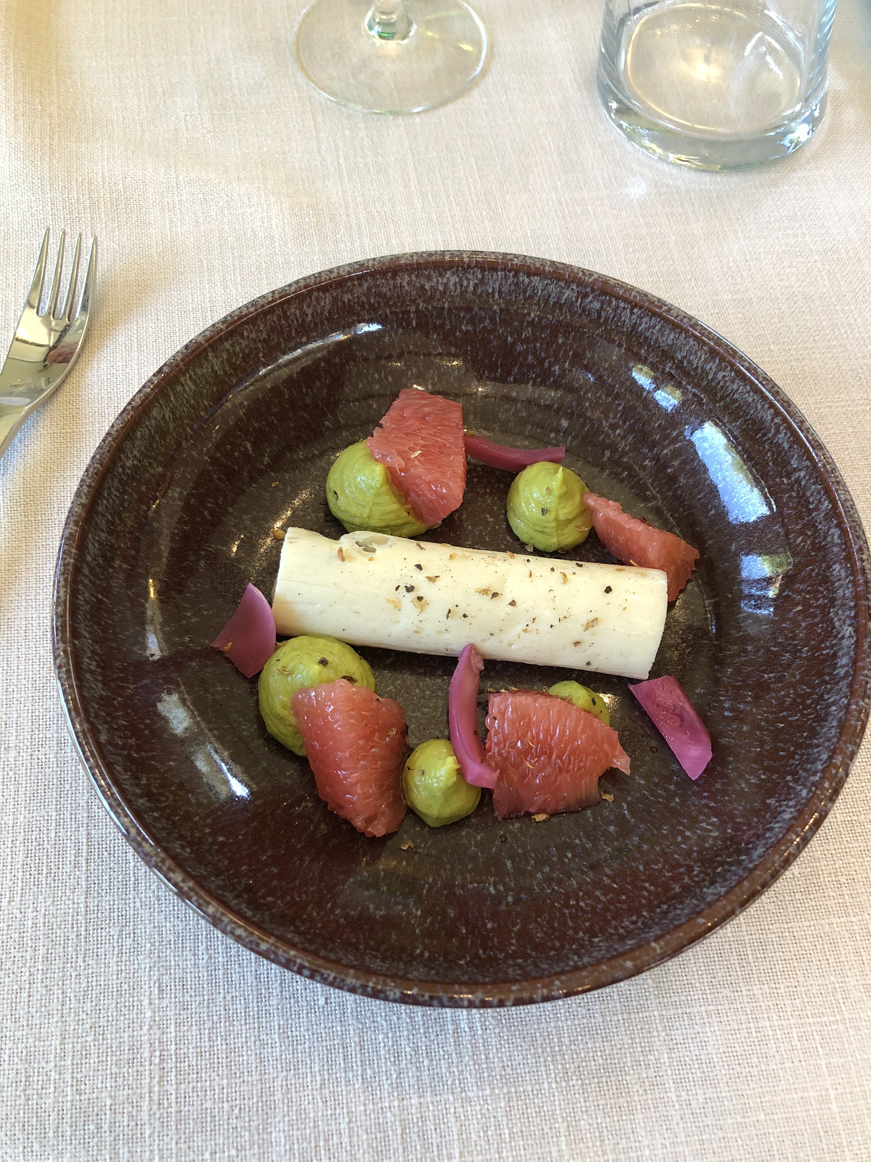Bonjour il est dommage que les asperges vertes ne soient pas cuites car c'est délicieux rissolés avec quelque échalotes ( conseil pour le chef )Par ailleurs le chef se bonifie depuis notre dernière visite .