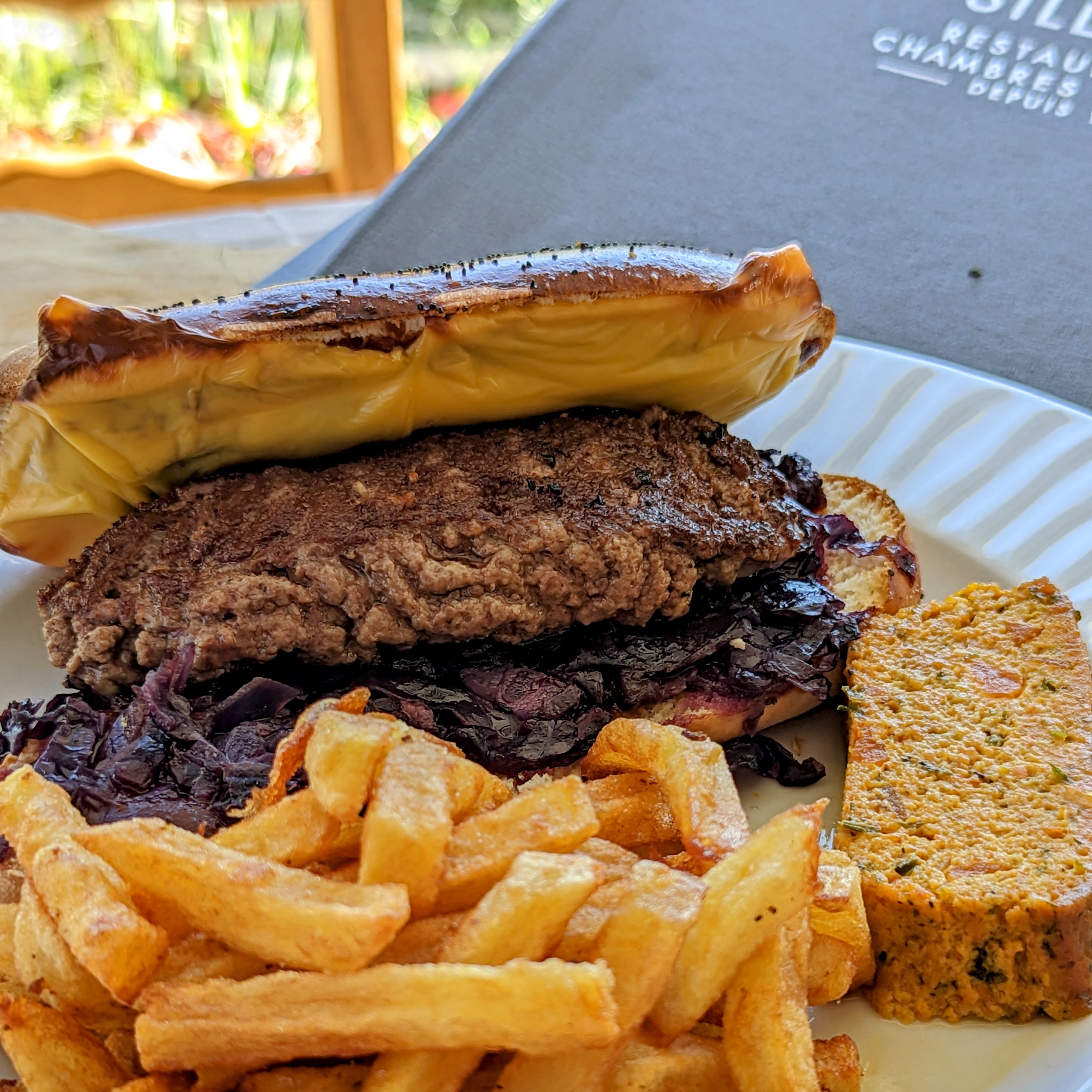 nous avons découvert ce restaurant , dans un joli cadre . Serveurs sympathiques mais très déçus , de la présentation des plat et de la dégustation Escargot rien de fameux Foie gras avec un bout de pain d’épice ,salade jeter dans l’assiette, des carottes râpé , et des morceaux de radis Burger steak haché trop cuite le camembert inexistant Truite trop cuite , sèche et l’assortiment pas au top et pas agréable en bouche Souris d’agneau pas la bonne pièce , enfin j’appelle pas ça une souris d’agneau et trop cuit et l’assortiment insipides pas de goût Vraiment déçus j’ai voulu connaître ce restaurant bas ça sera ma dernière fois Par contre le vin était excellent (Nestuby) La présentation à revoir ça donne vraiment pas envie la salade et jeter Dans l’assiette Je suis vraiment déçus Peut être que c’était pas la bonne soirée pour eux ou le bon jours en revanche le service était correct