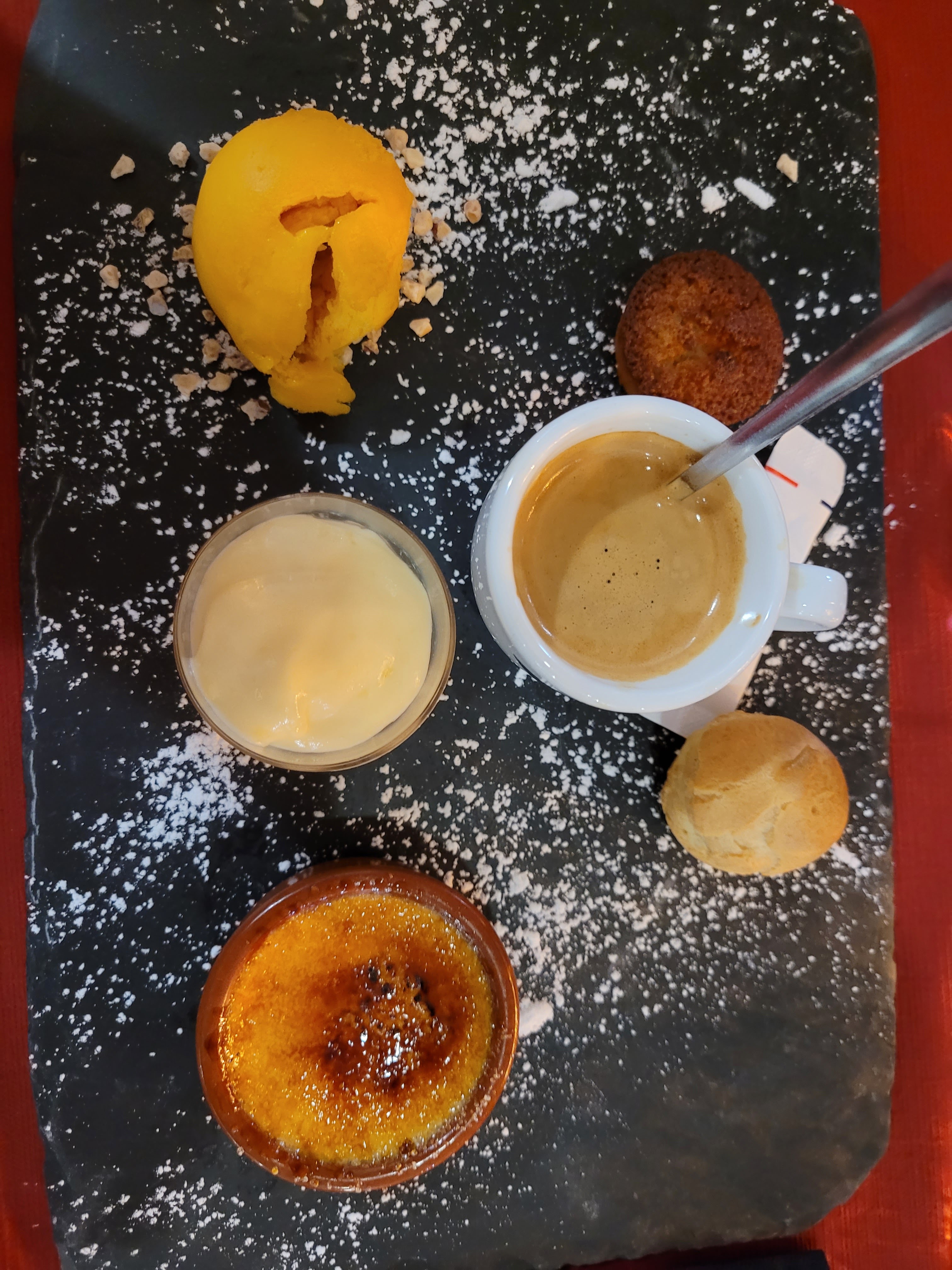 Très bon accueil. Toute l'équipe est aimable et souriante. L'assiette de légumes est très bonne, avec que des légumes frais. La crème brûlée est bonne dommage que le sucre caramélisé ne soit pas chaud. La coupe chouchou est bien copieuse mais délicieuse. L'ambiance est sympa ainsi que la décoration. Gros bemol sur le parking qui est tout petit et mal organisé pour ma part.