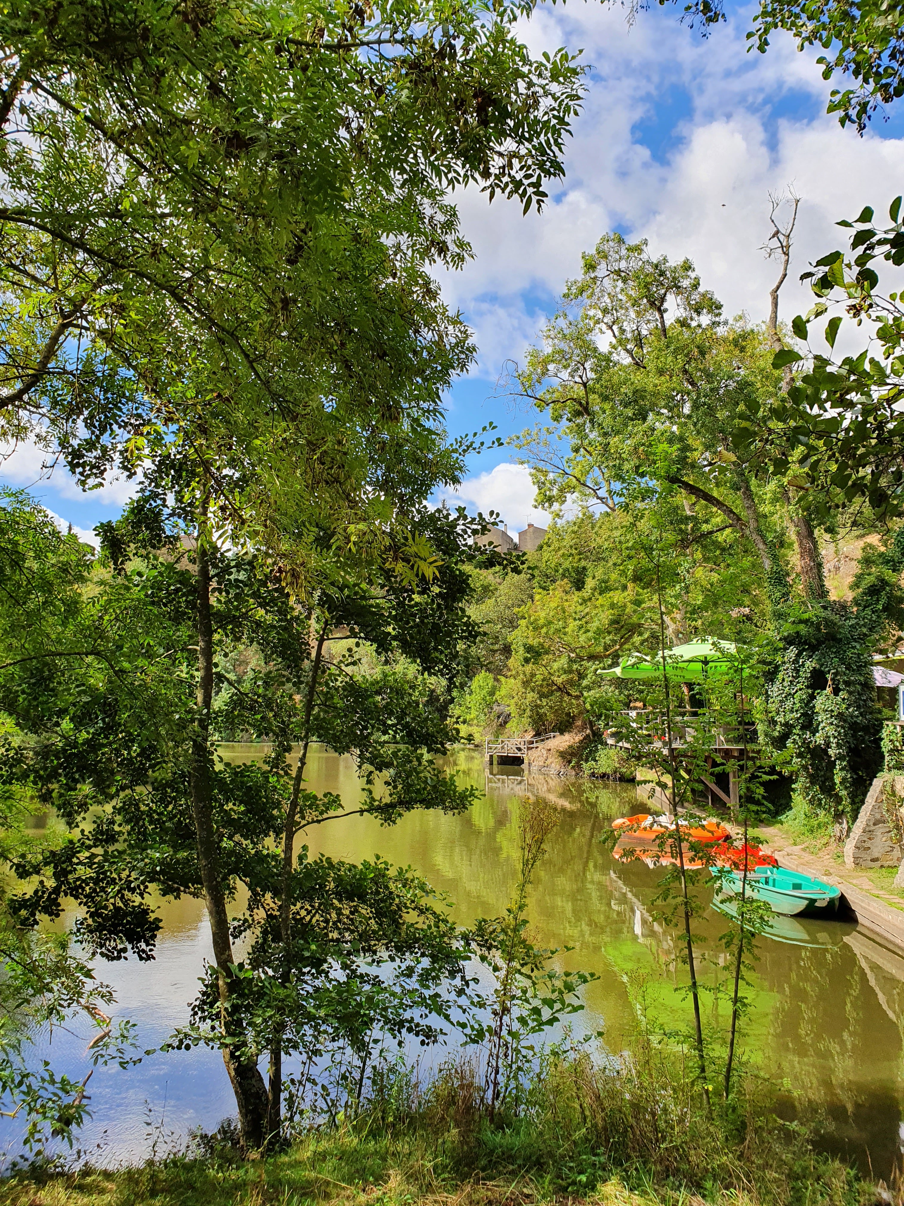 Restaurant quasi introuvable sans gps, une petite route en sens unique, surplombant un lac en contre bas. Un pont donnant l'accès au parking et restaurant, avec immense terrasse ombragée surplombant le lac. Un monde fou, mais un accueil royal pour une arrivée à 13h30. Installés dans la salle au frais, Bière locale, repas gourmand succulent : foie gras, entrecôte salade frites, avec verre de vin du territoire, fromage et café gourmand... pour moins de 40€. Notez l'adresse les amis, si vous êtes dans la région ne manquez pas d'y aller.
