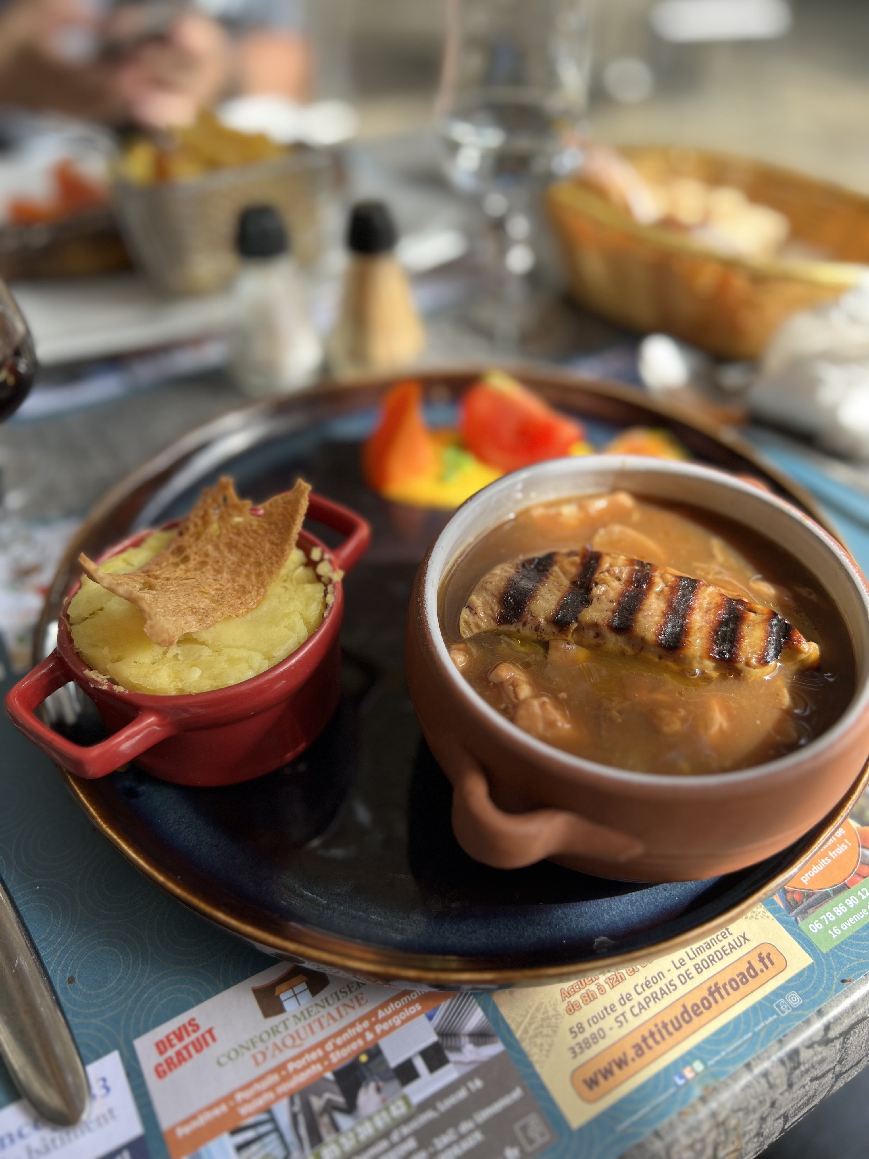 Posté le 08/03/2023 à 12:44"Personnel vraiment agréable, mais déçu des menus affichés sur leur site , ce n' est pas les mêmes quand on y va , magret c est du confit de canard, salade du sud ouest y a que gésiers , salade et une tranche de pâté sur du pain grillé avec dessous carotte râpée 😞. C était bon mais pas le menu affiché sur le site"