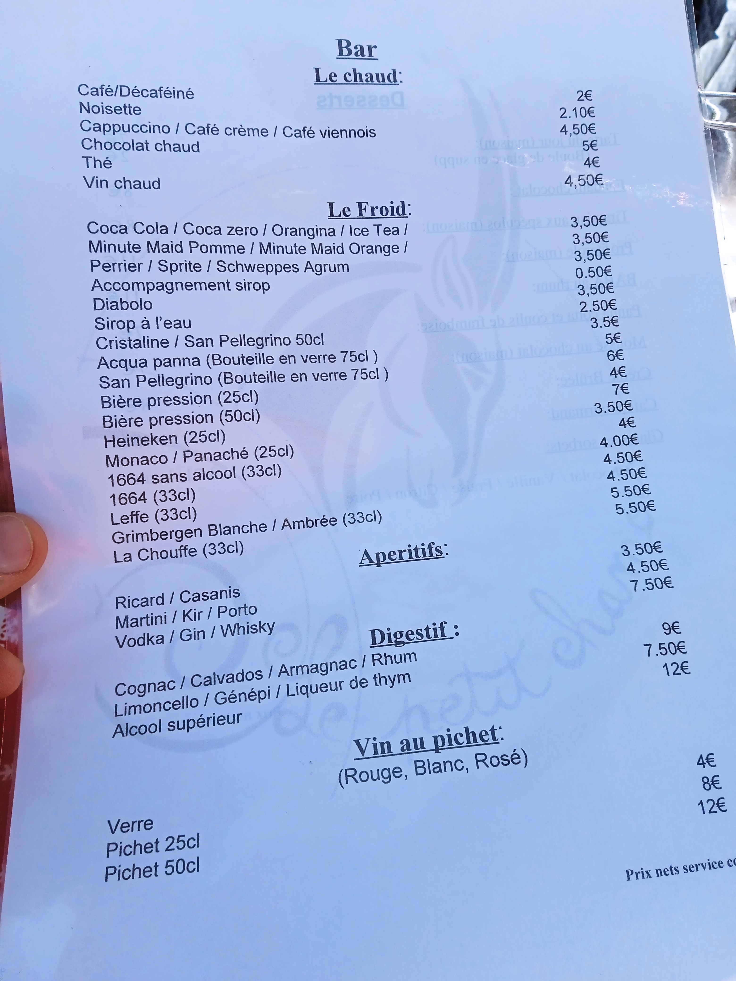Nous sommes allés déjeuner la dernière semaine d'ouverture (saison d'hiver 2023), alors que beaucoup de restaurateurs n'avaient pas joué le jeu et avaient déjà fermé. C'était très bien! Nous avons très bien mangé (salade césar excellente et copieuse, idem pour le plat de pâtes et les cafés gourmands). Malgré l'imminence de la fermeture il restait du choix à la carte. Ils sont très gentils et très pro en plus. J'y retournerai 👍.