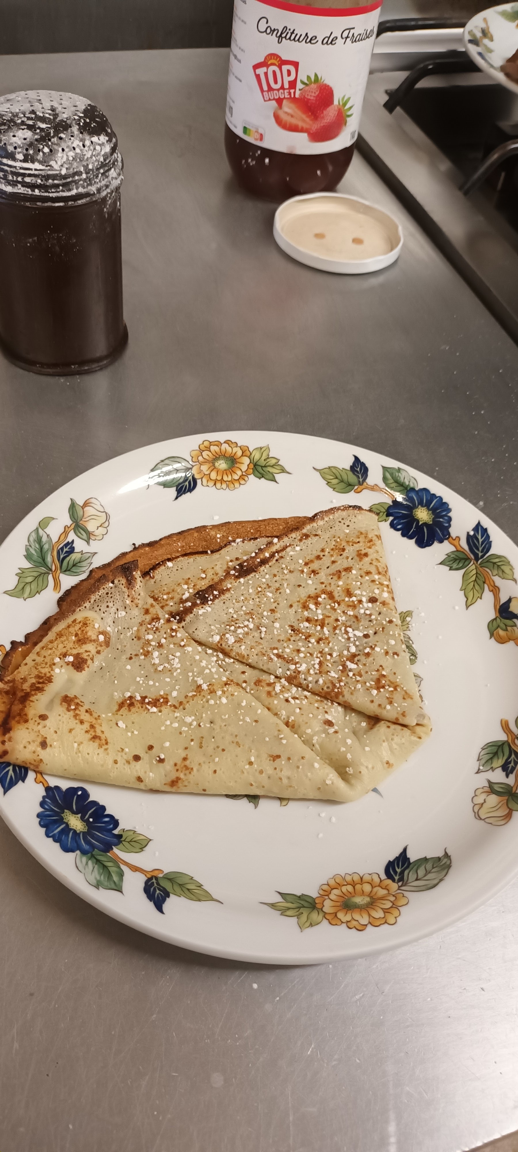 Crepe au beurre sucré réchauffer au micro ondes avec une grosse noix de beurre au milieu !!! Écœurant !!! A revoir !
