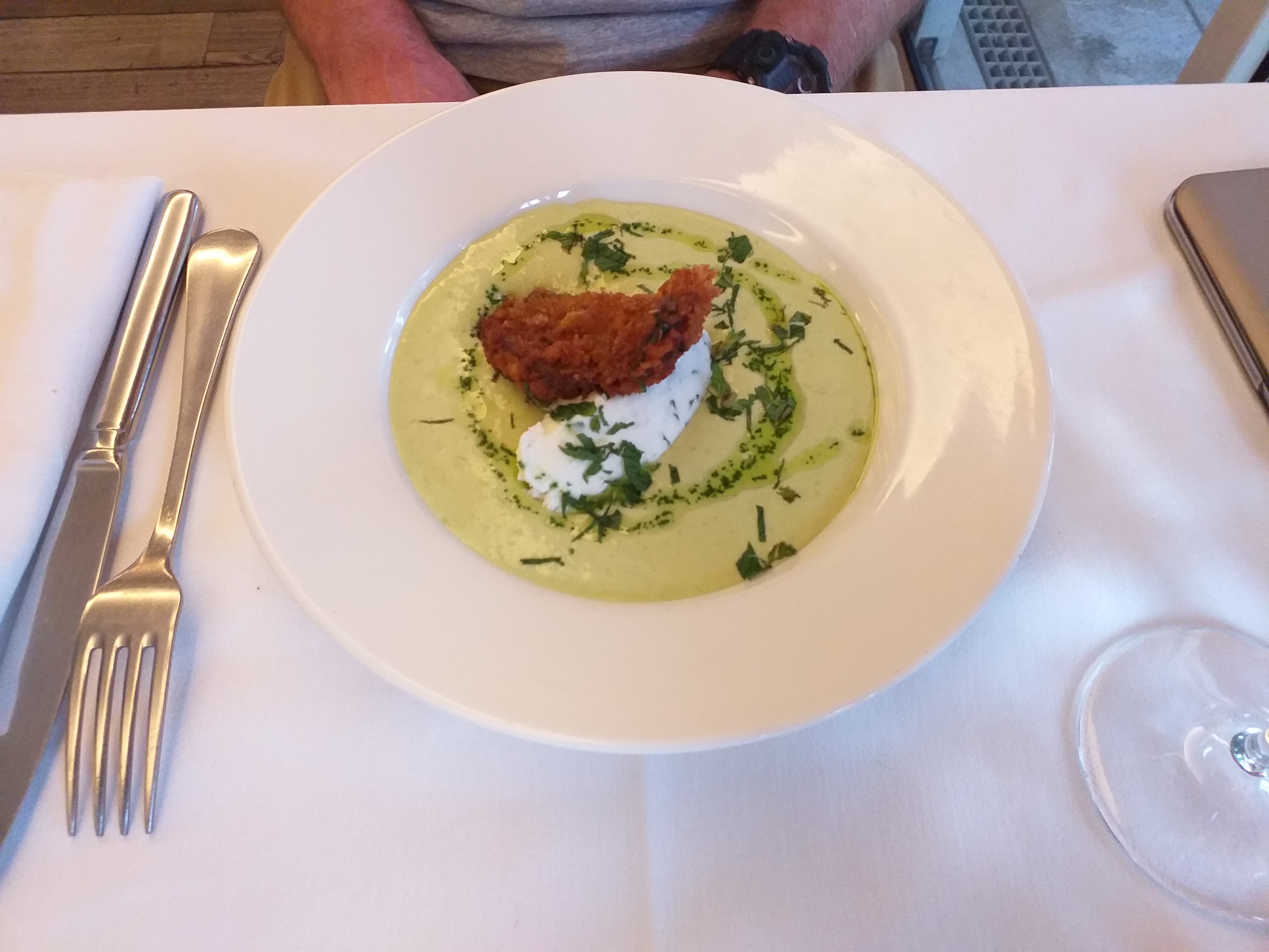Malgré les conditions atmosphériques difficiles pour manger en terrasse nous avons passé un bon moment en découvrant une excellente cuisine avec des plats savoureux et bien équilibrés à un prix justifié. Service impeccable et sympathique . Je recommande cet établissement