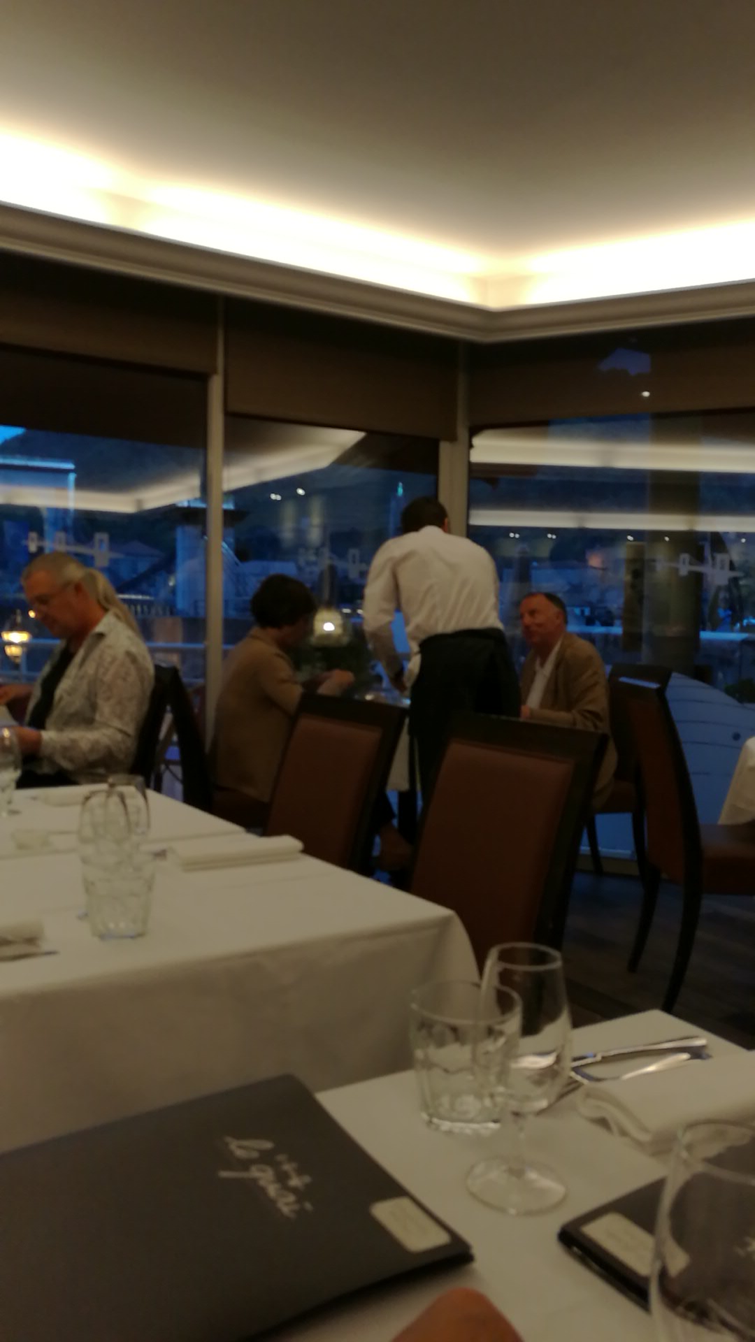 Cadre très agréable et très jolie vue pour ce dîner en terrasse. Personnel discret et agréable. Nous nous sommes régalés de l’entrée au dessert… les plats étaient délicieux et pleins de saveur. Bravo au chef!