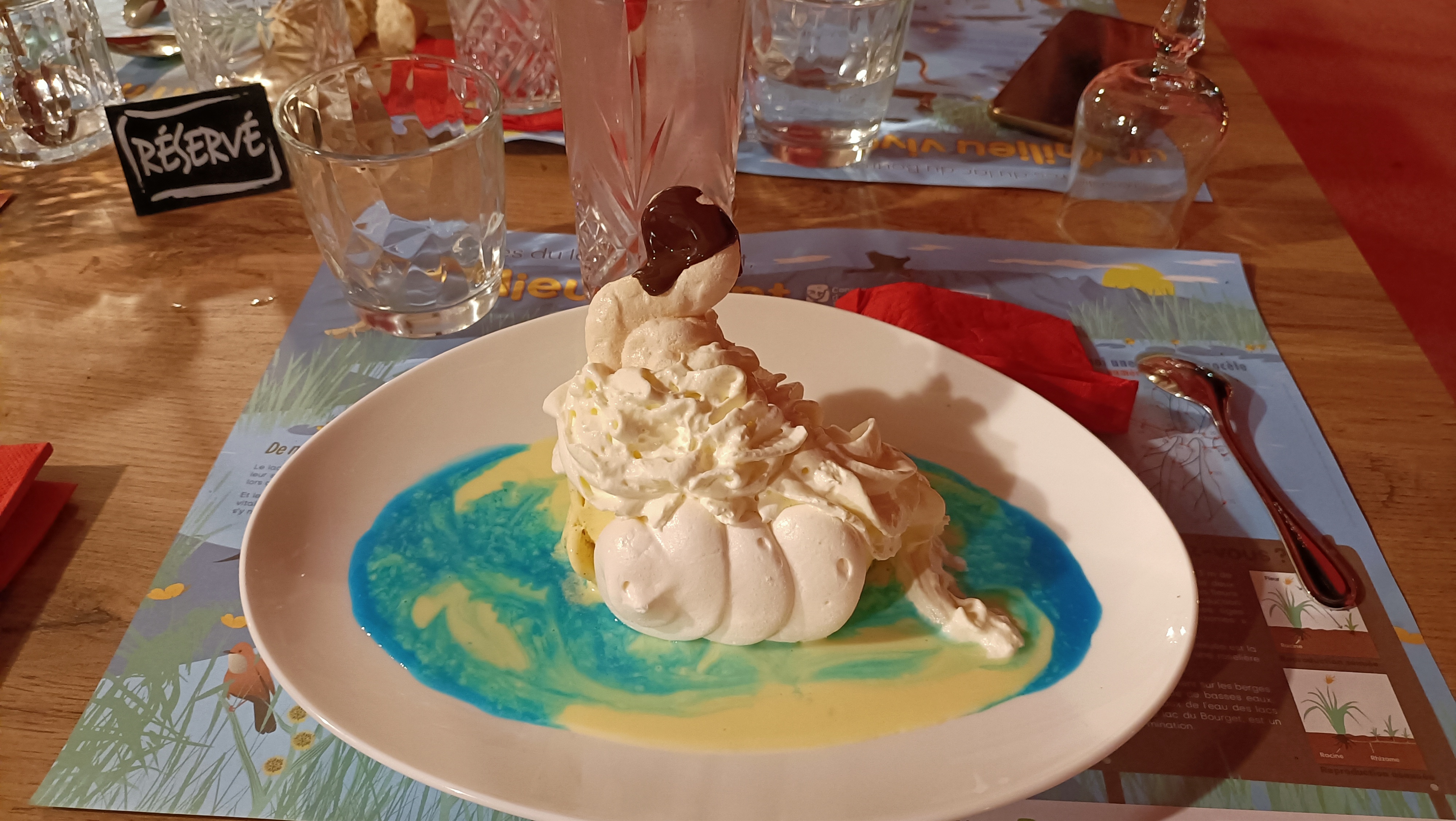 Accueil très sympathique, repas parfait Dessert le cygne du lac un régal et merci pour la petite attention sur mon dessert pour mon anniversaire Je recommande ce restaurant avec une vue magnifique sur le lac du Bourget