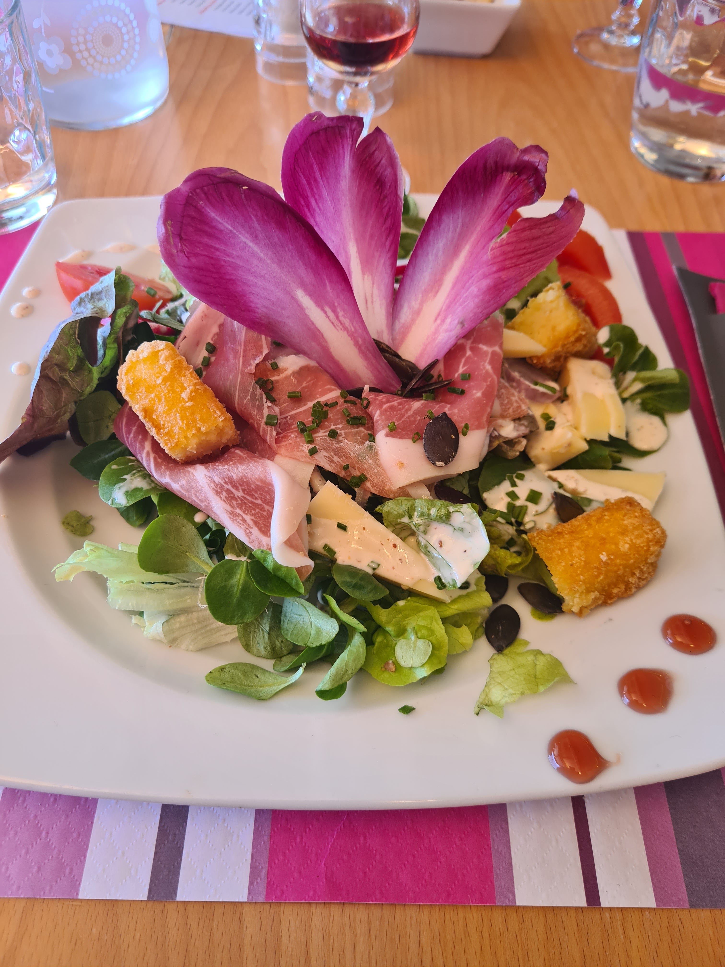 resto dégueulasse, nous avions reserver pour l'anniversaire de ma fille, aucune réservation de faite, gateau offert sorti du congelateur, et en plus ils ont cru que c'était l'anniversaire de ma petite fille , alors que c'était celui de ma fille , donc sur le gateau 3 bougie au lieu de 27, quand à la salade j'avais demander qu il ne me mette pas de noix car allergique, il on du la remporter pour enlever les noix, donc je ne recommande pas ce restaurant. je n'irais plus trjop deçu