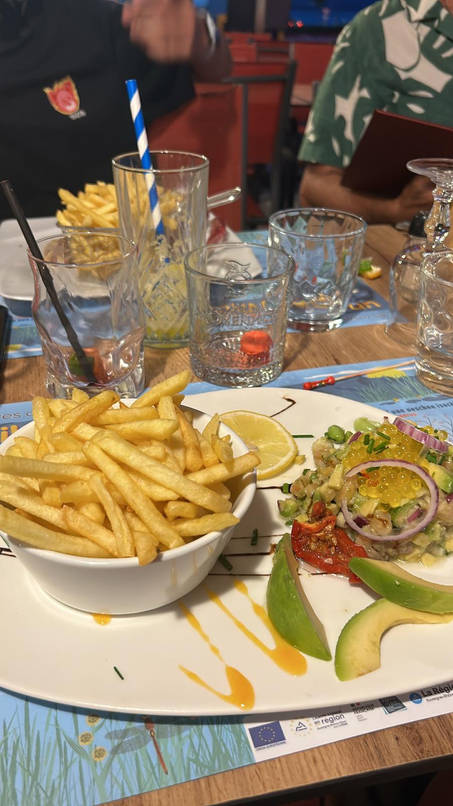 Assiette du pêcheur excellente . présentation superbe. Vue sur le lac et acceuil chaleureux professionnel et convivial. Tout cela pour un prix très raisonnable a recommander. Mention spéciale au serveur letton et à la serveuse qui débutait ce samedi