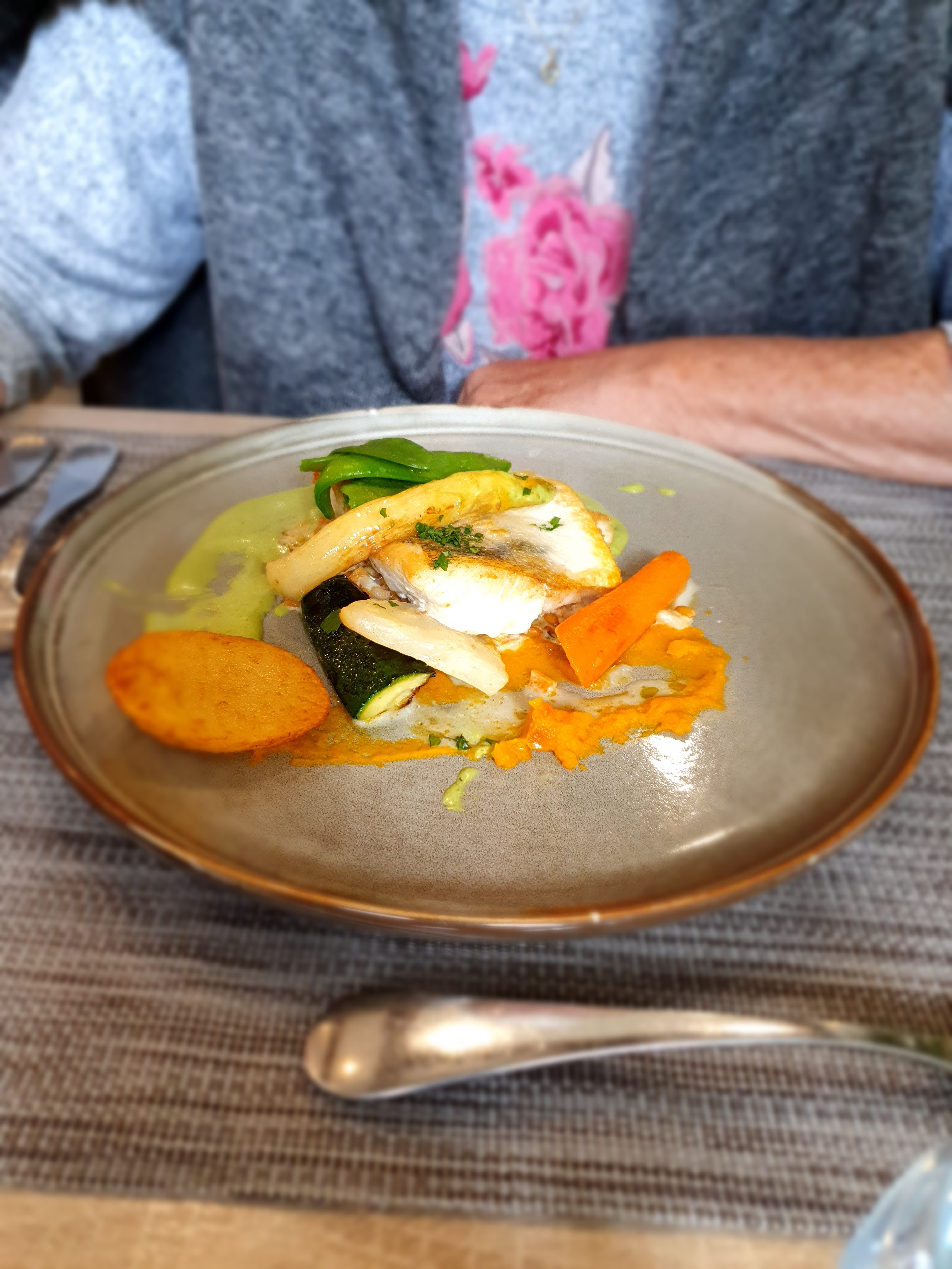 Plutôt bon, l'entrée calamar farcis, manquais beaucoup de sel. Légumes un peu trop croquants Cerf très bon.