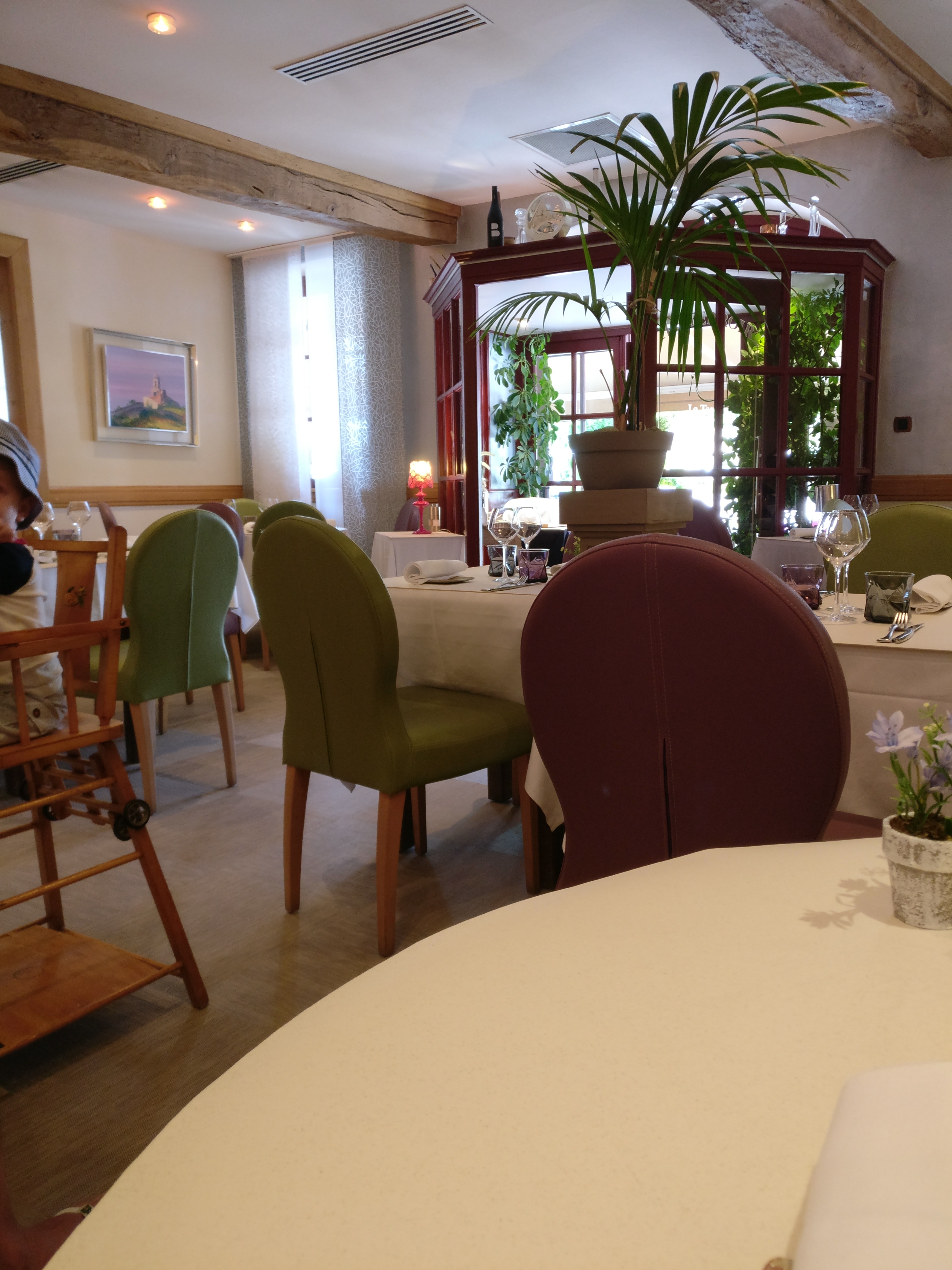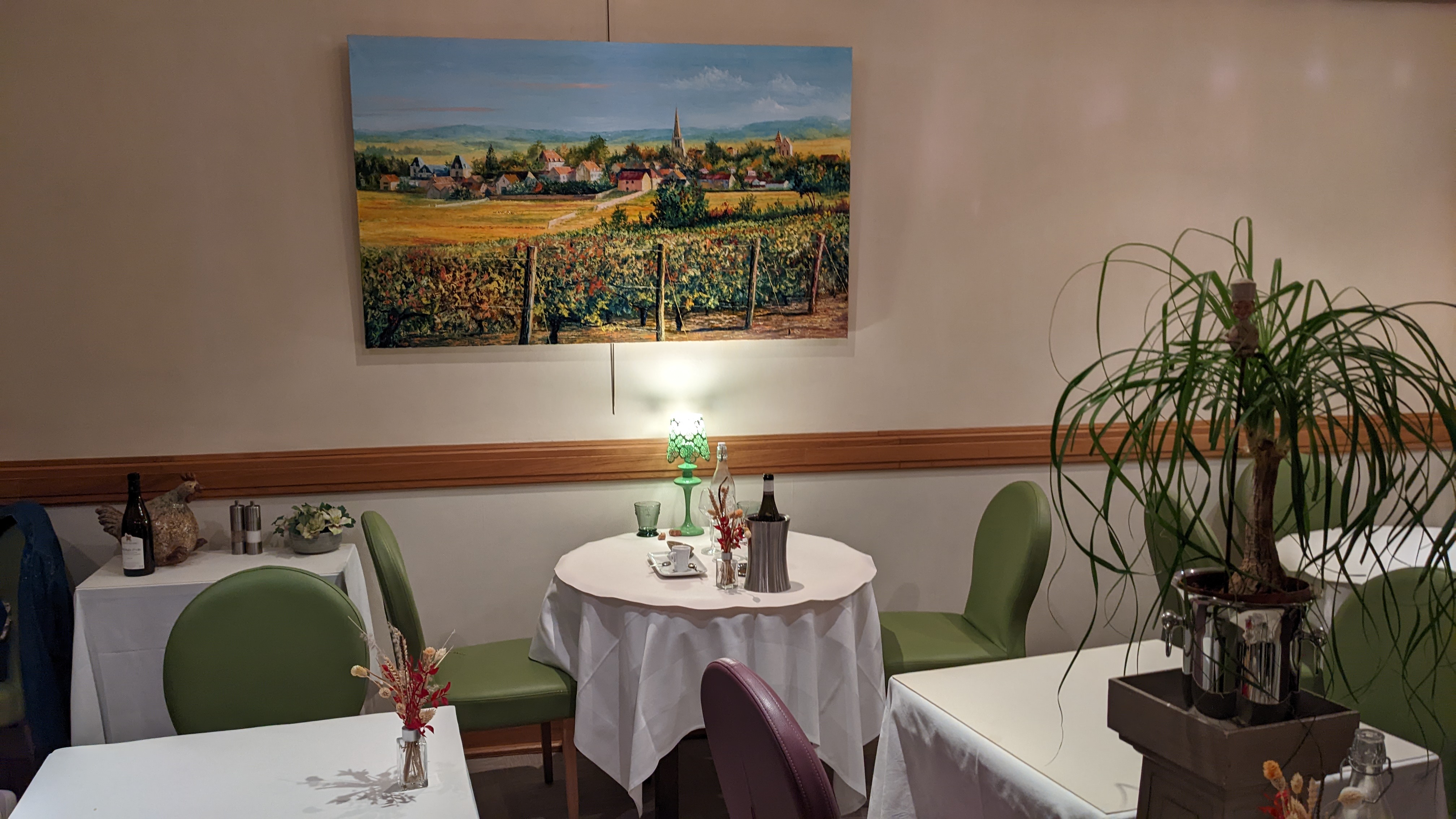 De passage à Santenay un samedi soir. Service survolté, Patronne ? qui ne cesse de se plaindre d'avoir des tables de 2 personnes plus difficiles à gérer, ça n'est pourtant pas la St Valentin. Qui nous saoule avec Mr Machin à la table à côté dont elle connaît bien les habitudes, et Mme Truc, table idem. La même Patronne qui donne des ordres en terrasse à son serveur. Lequel serveur, qui dit à la criée quand je lui tends ma CB, et en plus, c'est Madame qui paye. Pour la modique somme de 90 € pour 2 personnes . Non reposant un samedi soir pour qui veut se détendre.