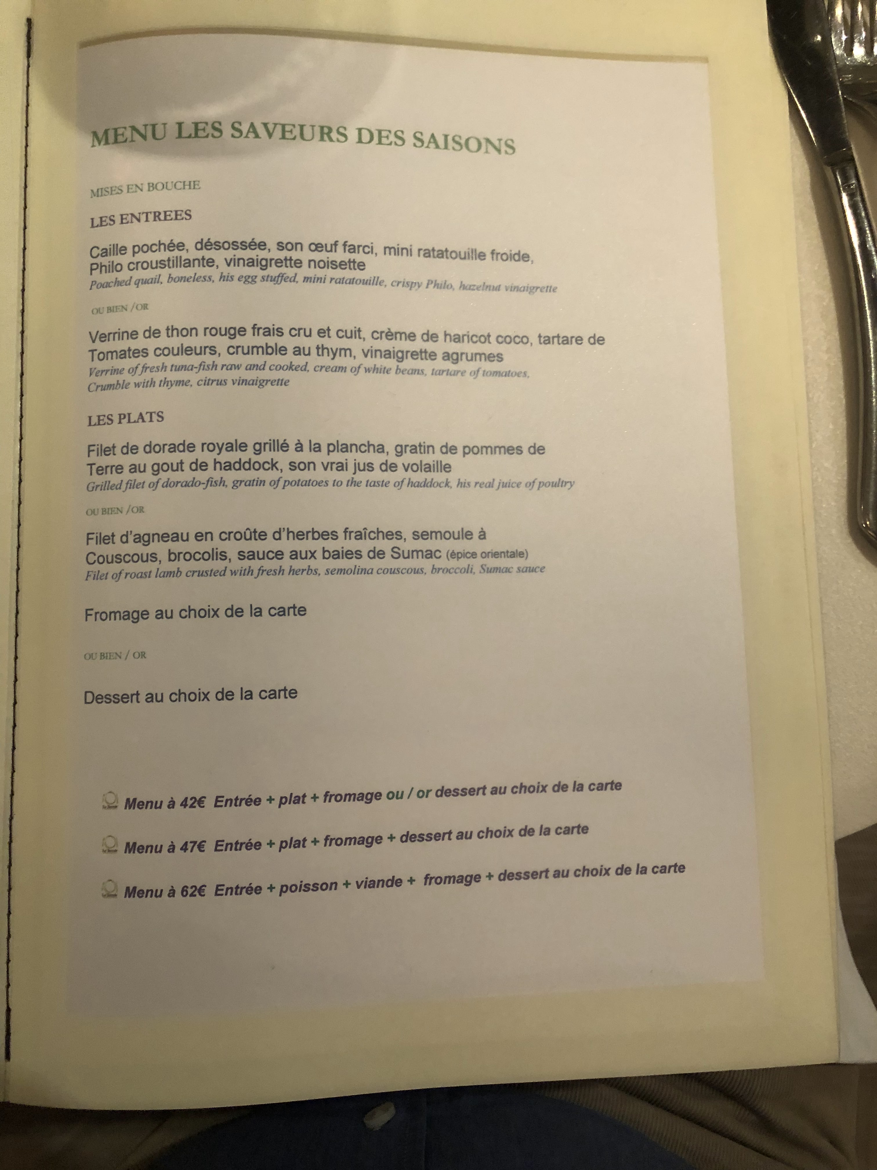 Bon repas mais les menus sont tout de même un peu cher.